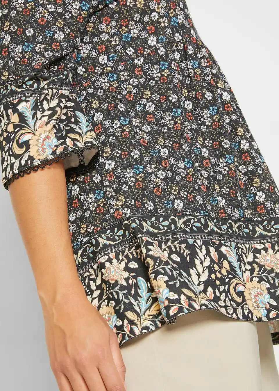 Figura-laskava Shirt-Tunika s modernim uzorkom. Svaki komad je unikatan