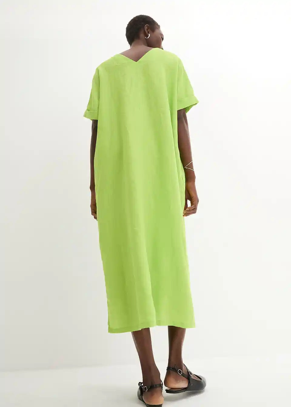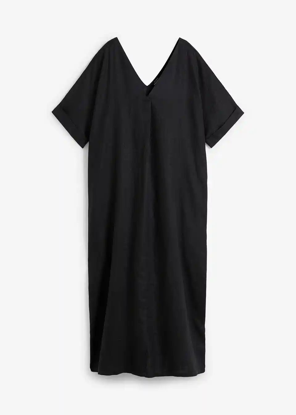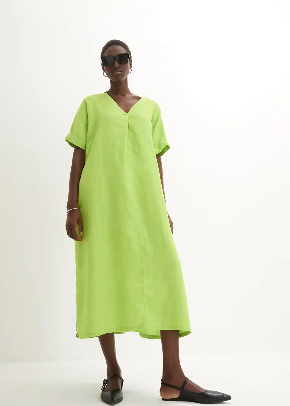 moderna lanena haljina širokog kroja i dubokog V-izreza