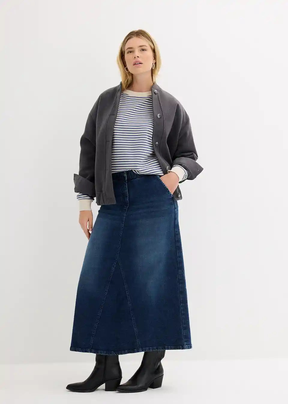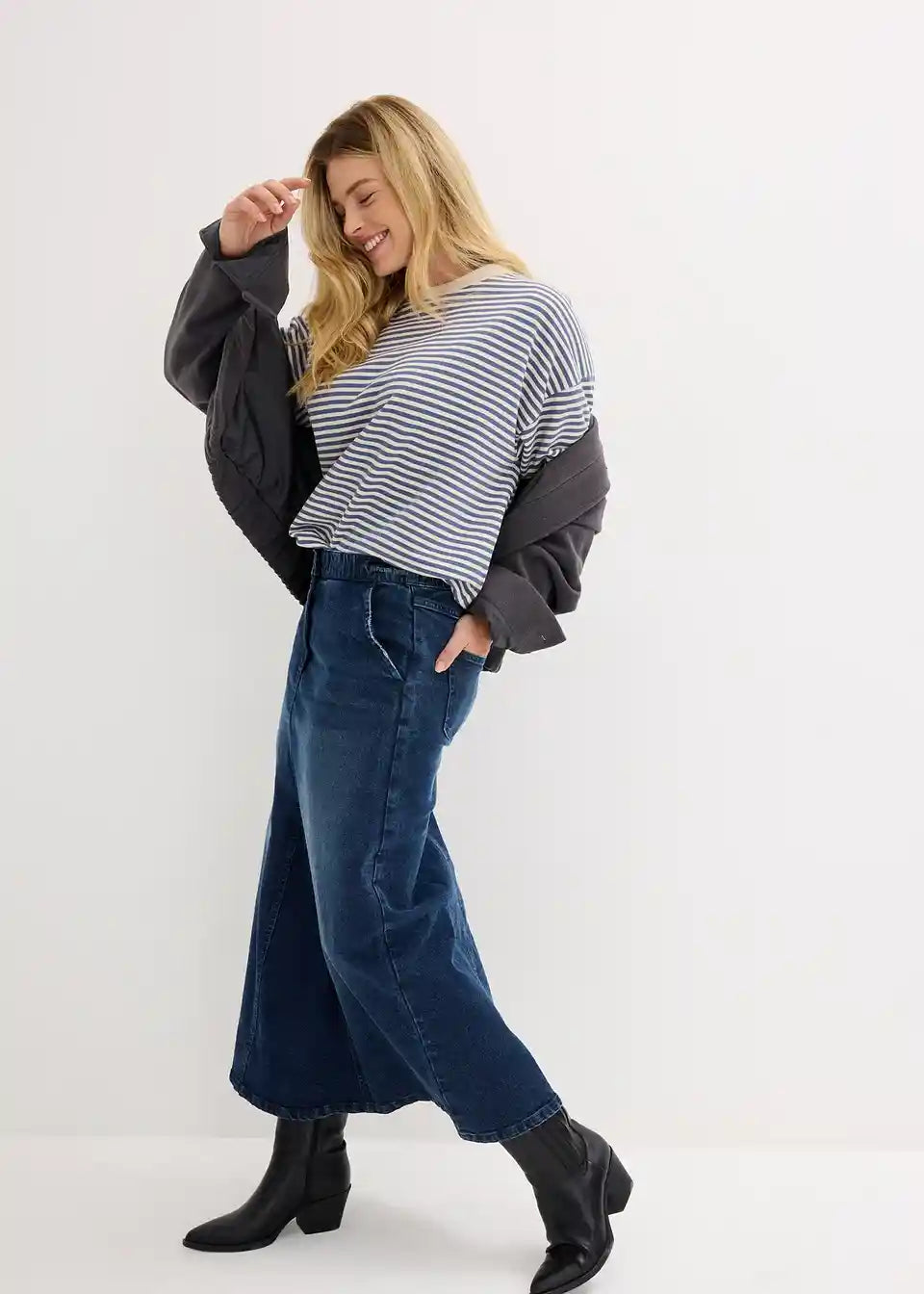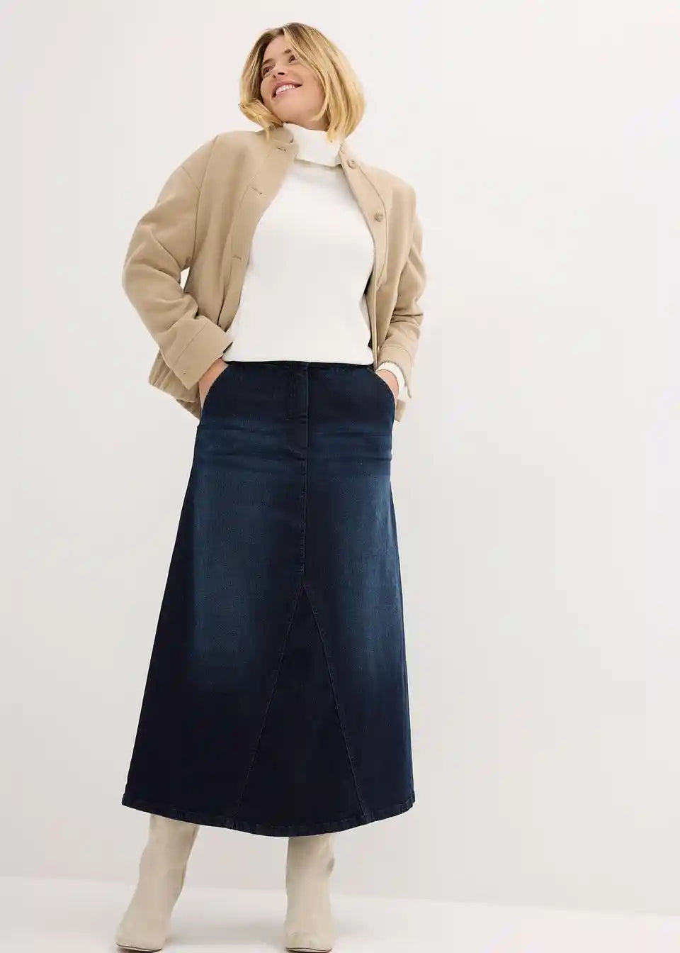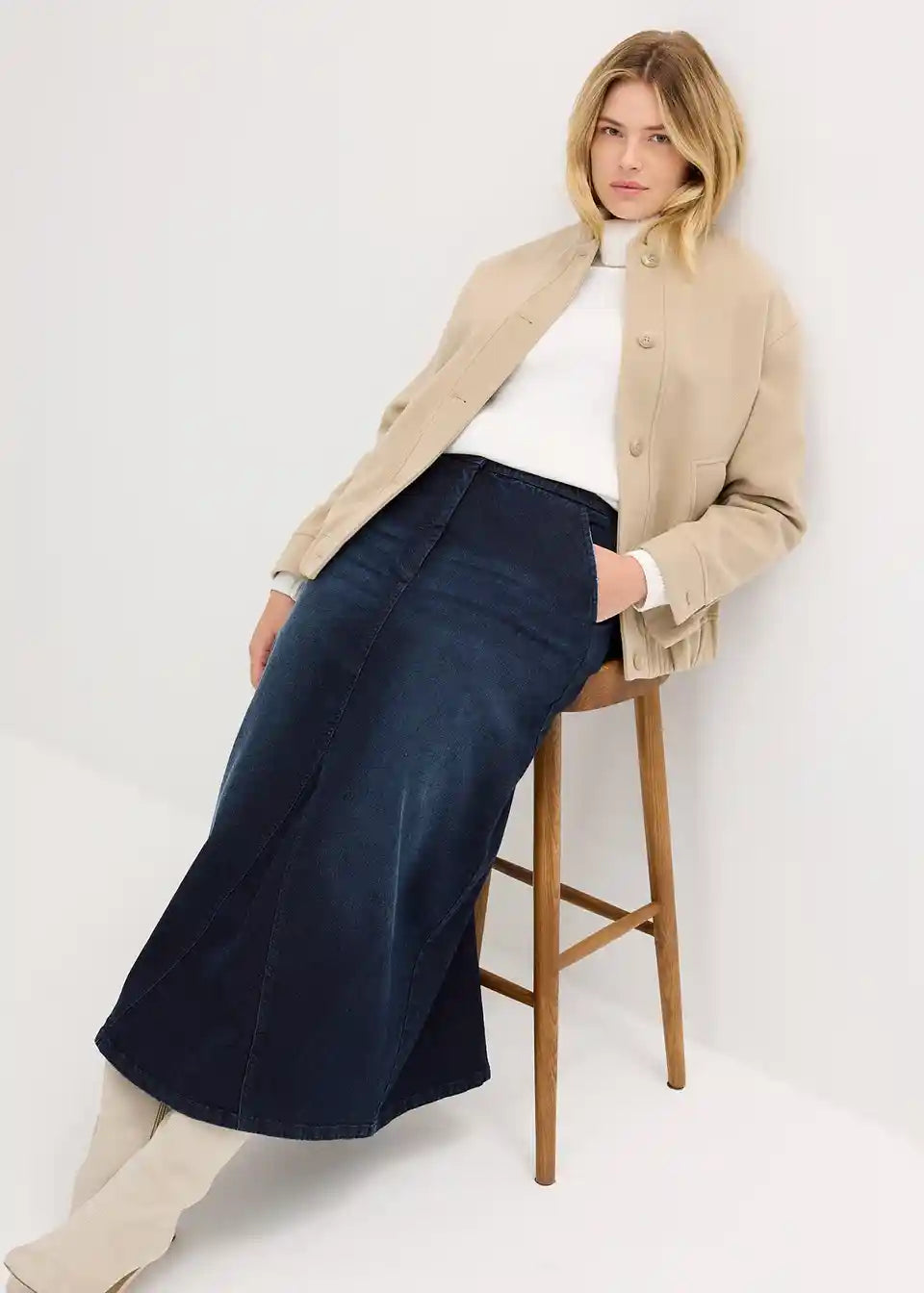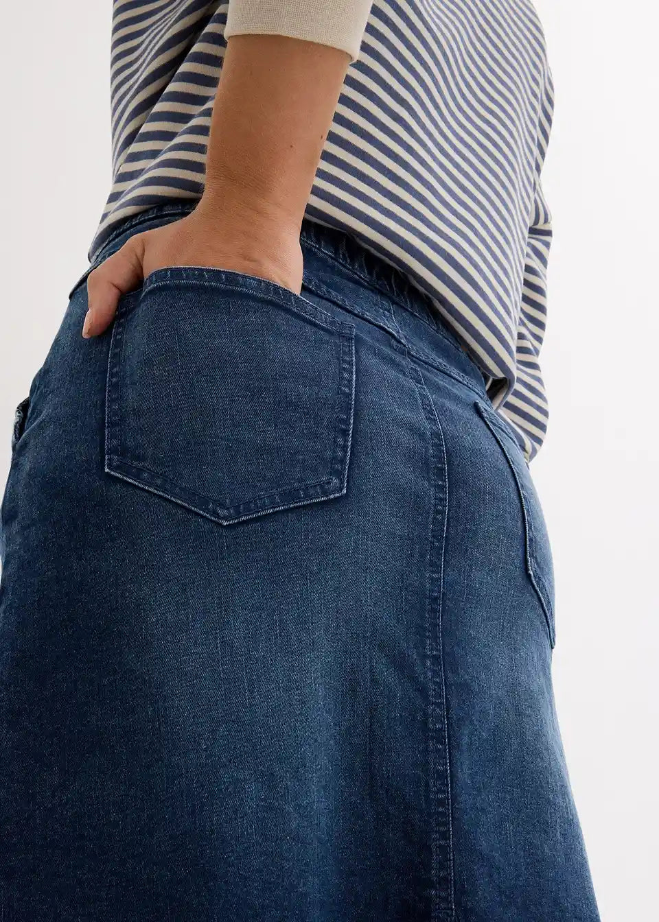 Široka traper suknja lijepo pada preko bokova