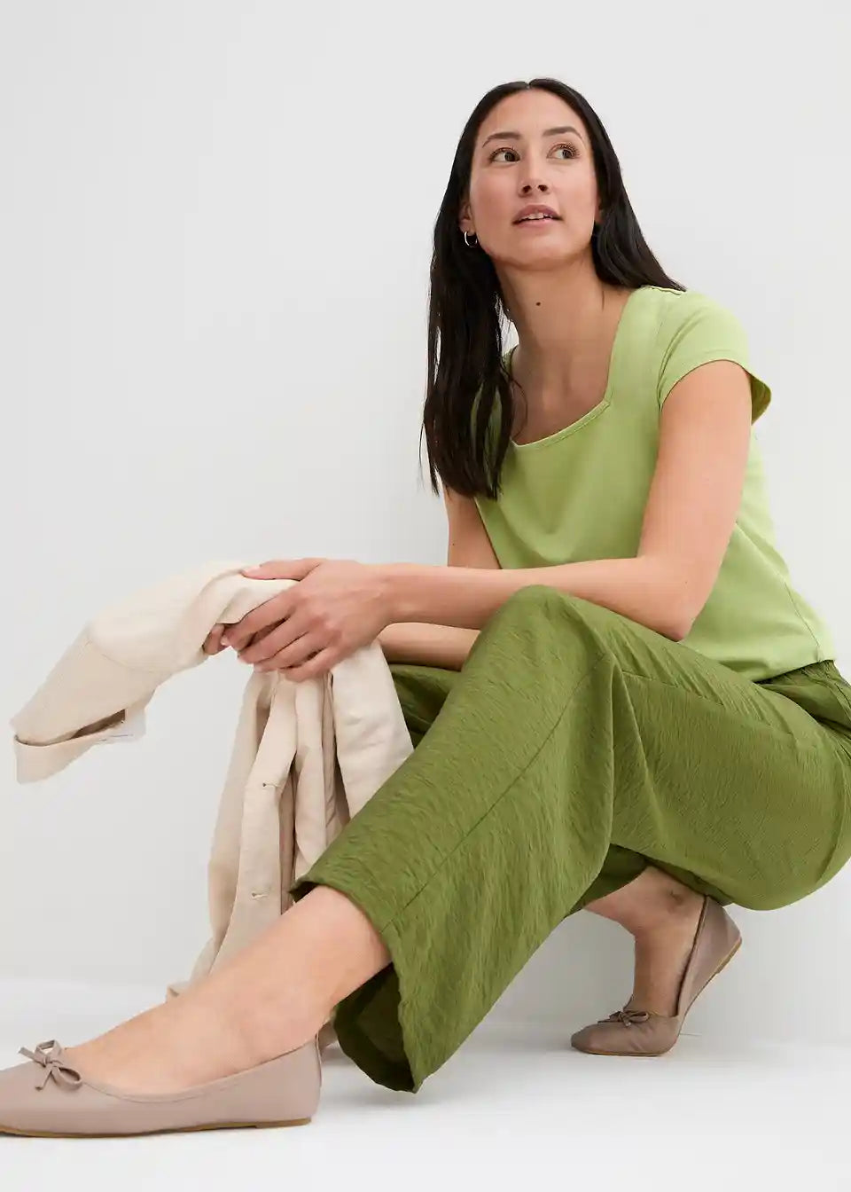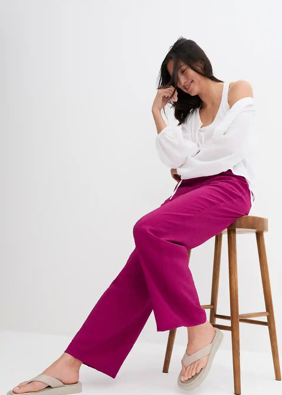 Široke hlače s rastezljivim strukom od materijala s udjelom viskoze