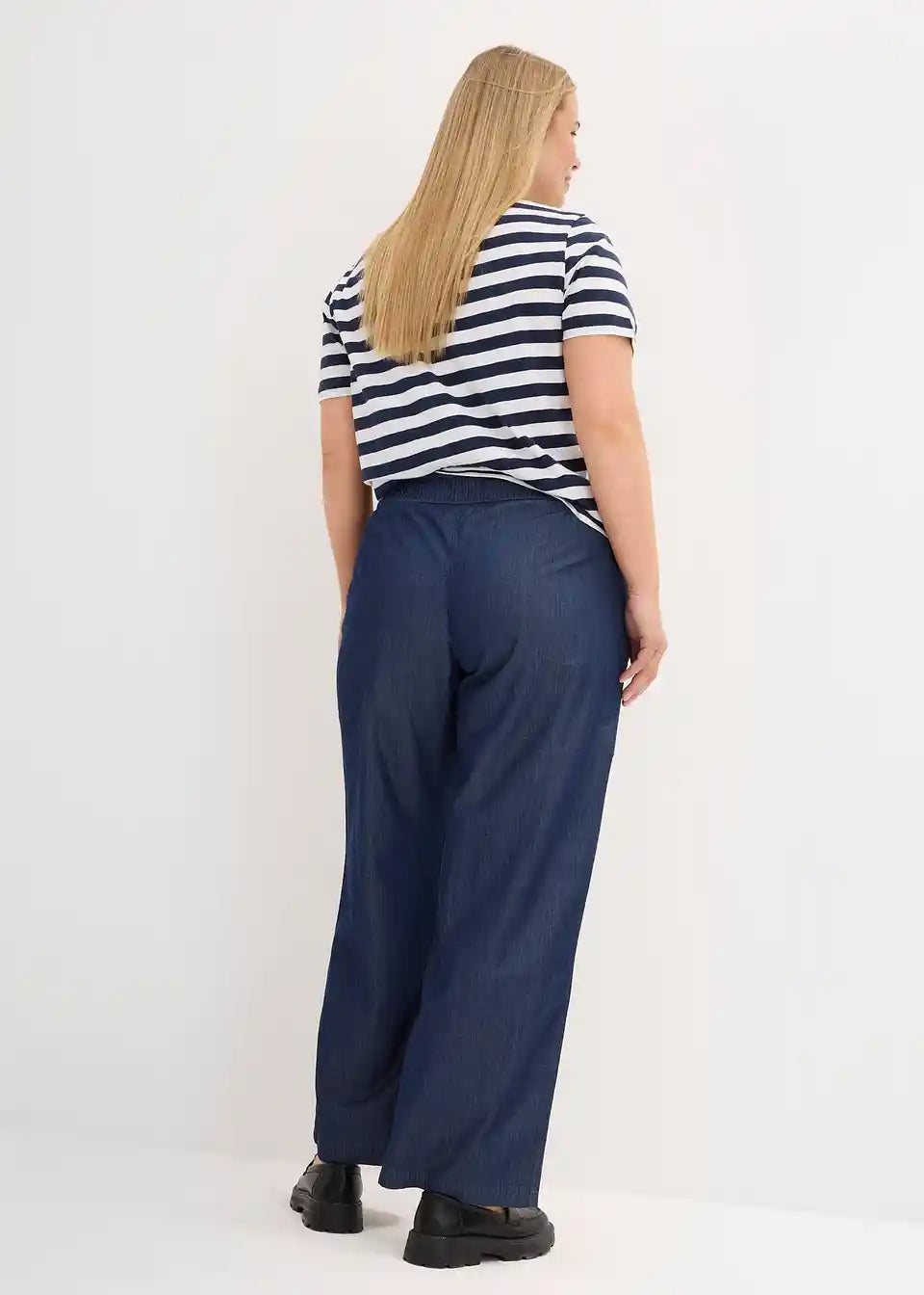 Lagane traperice s udobnim pojasom i duljinom do gležnjeva u palazzo stilu