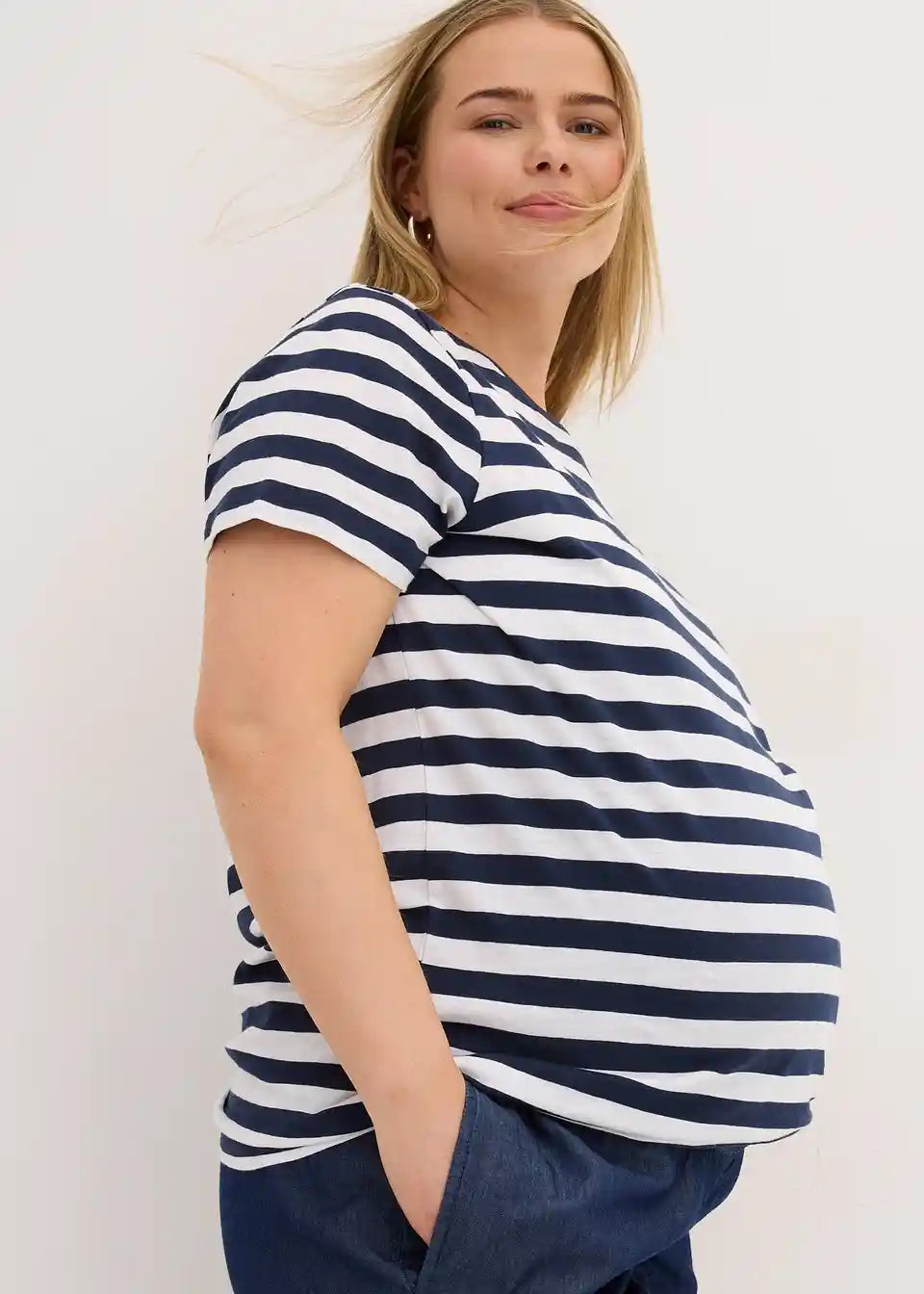 Udobne trudničke traperice od čiste organske pamuka u palazzo stilu sa širokim, ravnim nogavicama. Ležeran kroj omogućuje veliku slobodu pokreta i posebno je ugodan za nošenje u toplijim danima. Široki pridodani rebrasti pojas od pamuka s malo elastana osigurava optimalno pristajanje na trbuhu. Struk hlača ima elastičnu gumicu. S praktičnim džepovima u bočnom šavu.