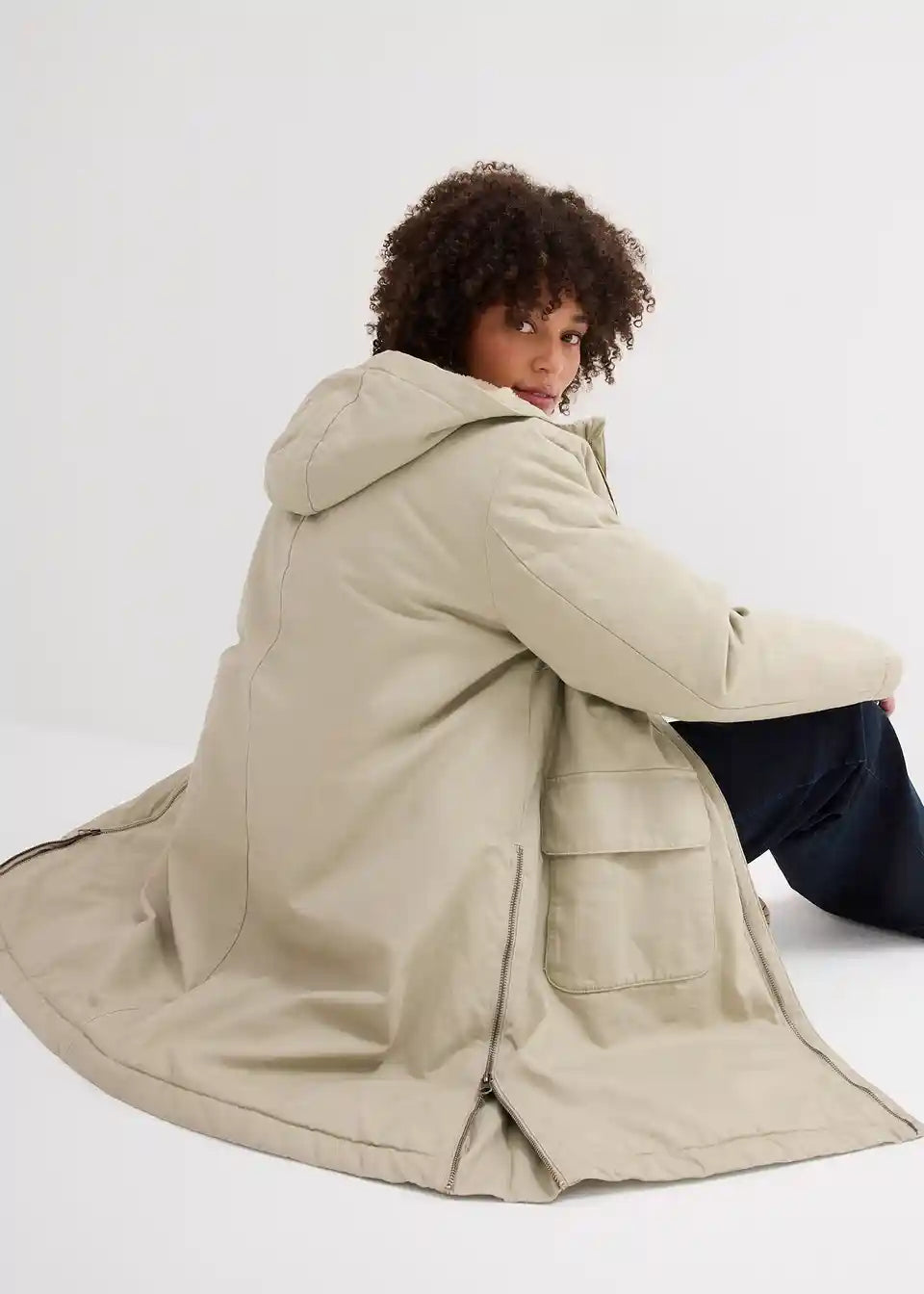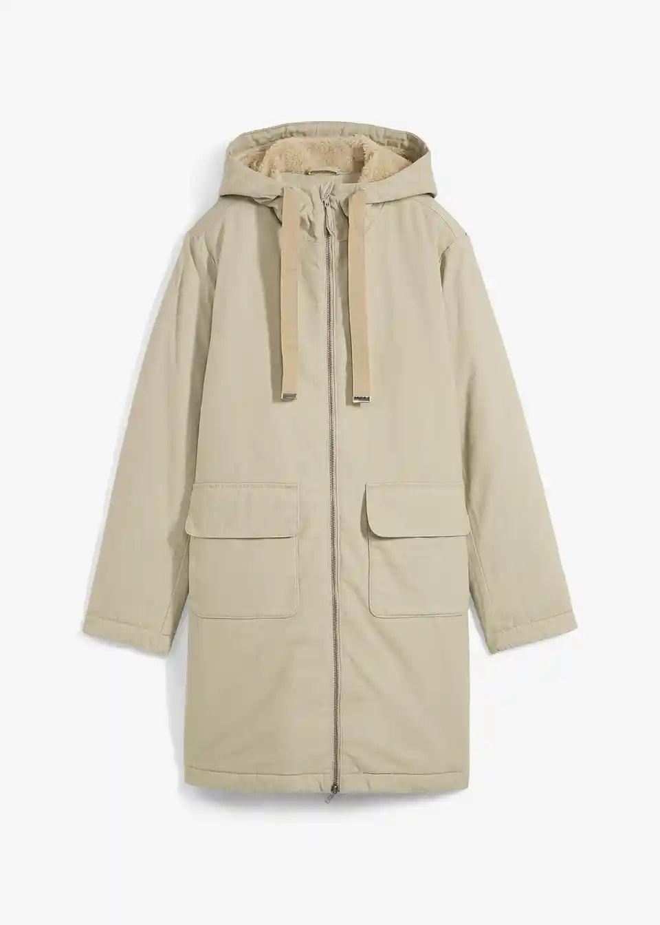 Stilni zimski parka s kapuljačom od tkanine teddy