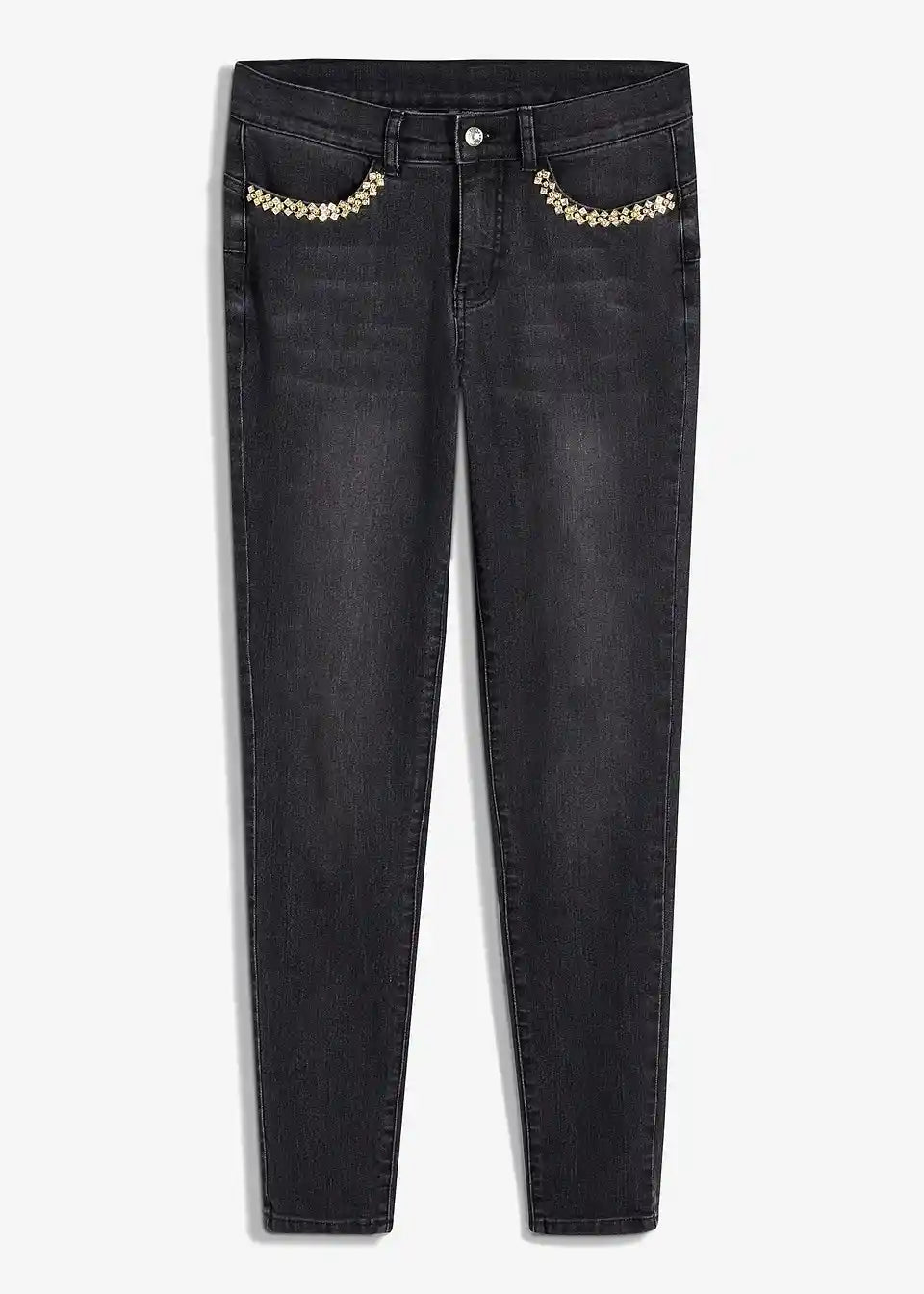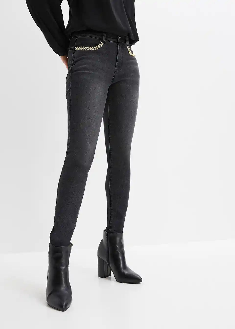 Moderne rastezljive traperice s prekrasnim pranjem i modernim ukrasnim detaljima.
