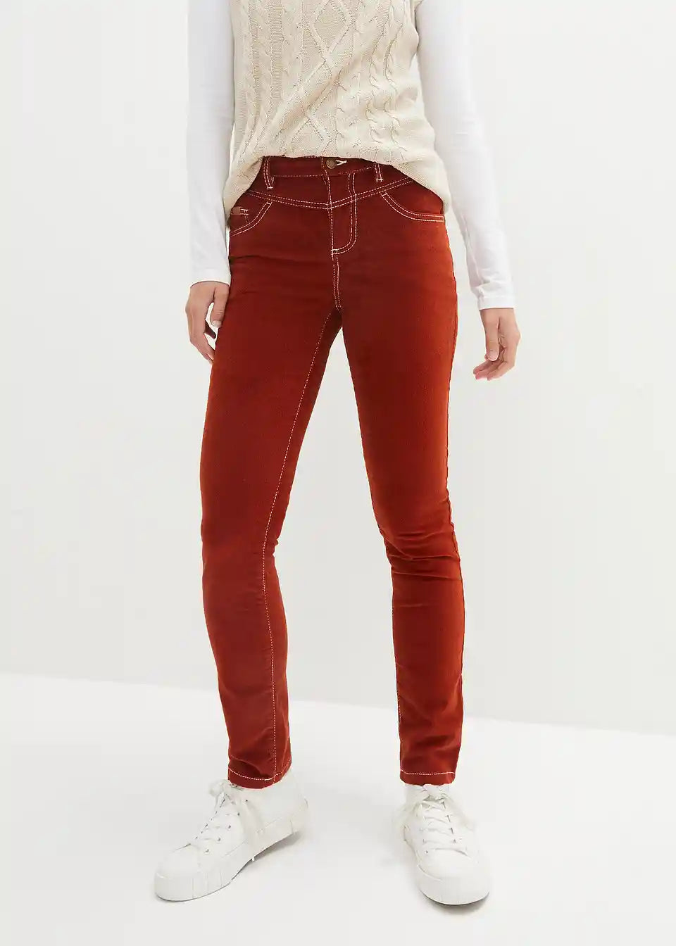 Prekrasne Slim Fit Stretch-kord hlače s kontrastnim šavovima