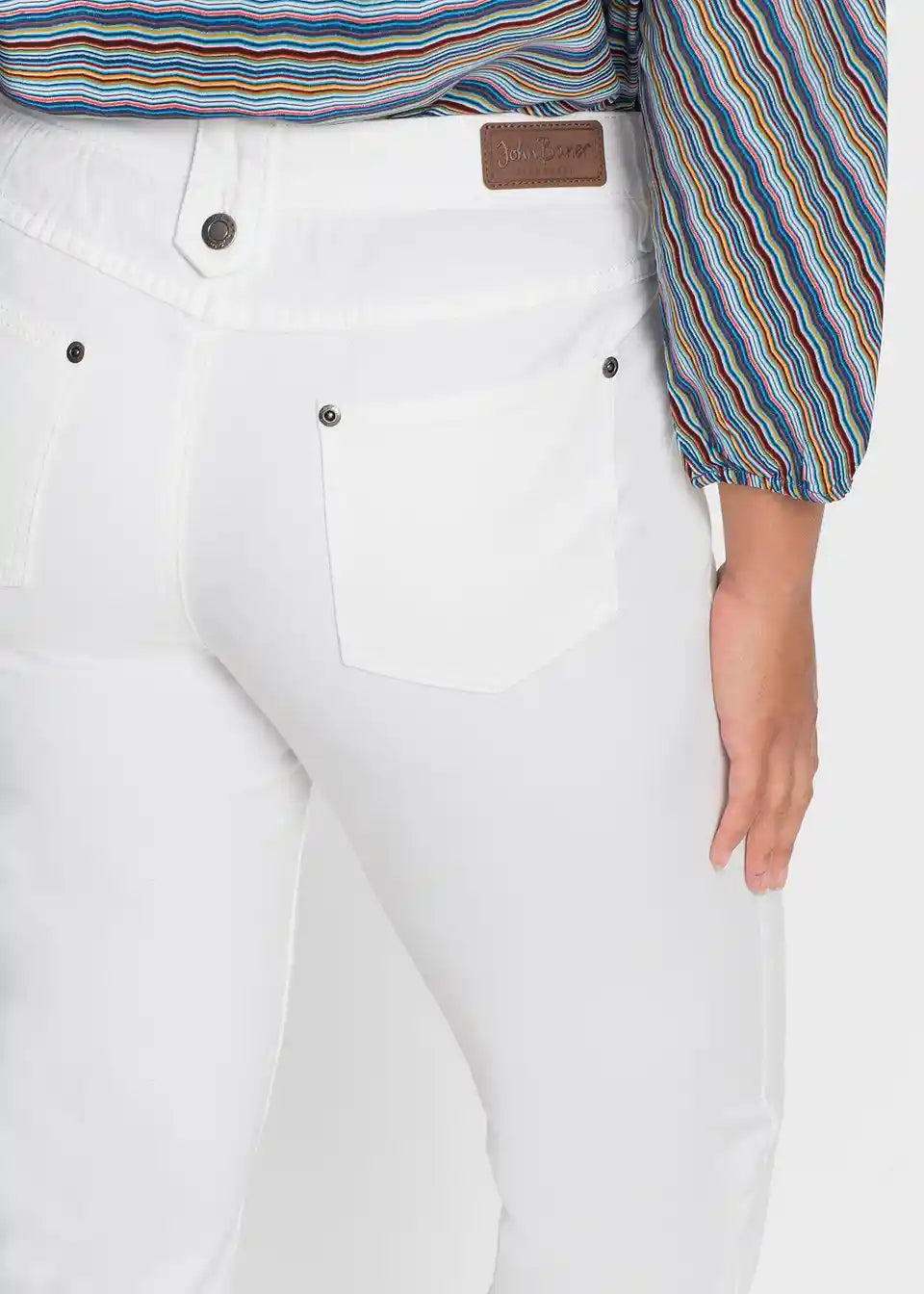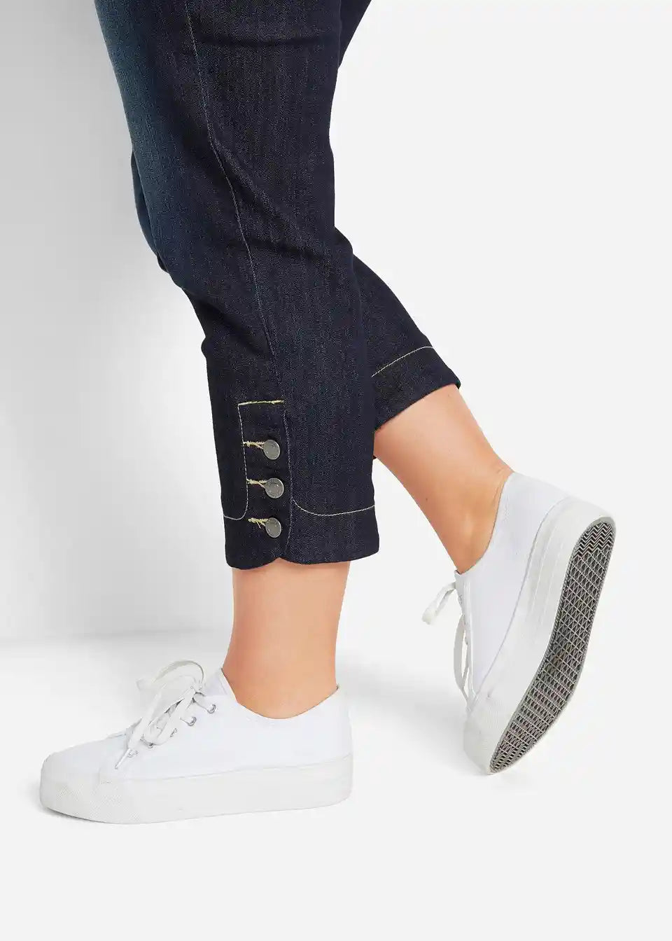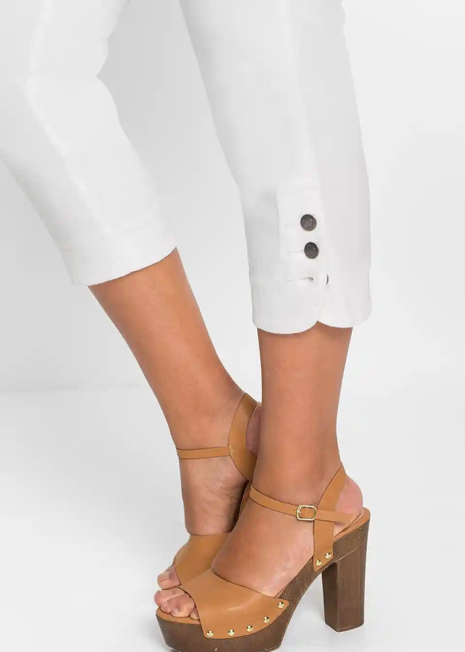 U ovim udobnim rastezljivim trapericama u 3/4 dužini ležerne dame izgledaju odlično. Slim Fit traperice iz aktualne kolekcije brenda John Baner krojene su u stilu s 4 džepa i zatvaraju se gumbom i patentnim zatvaračem. Elegantni gumbi na bočnim prorezima i vrlo uski kroj naglašavaju moderan stil rastezljivih traperica SLIM s gumbima.