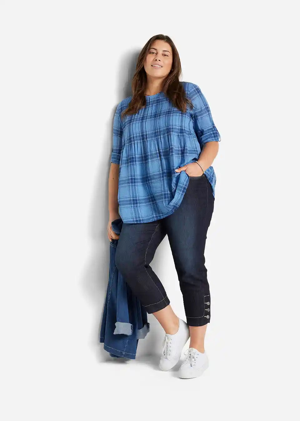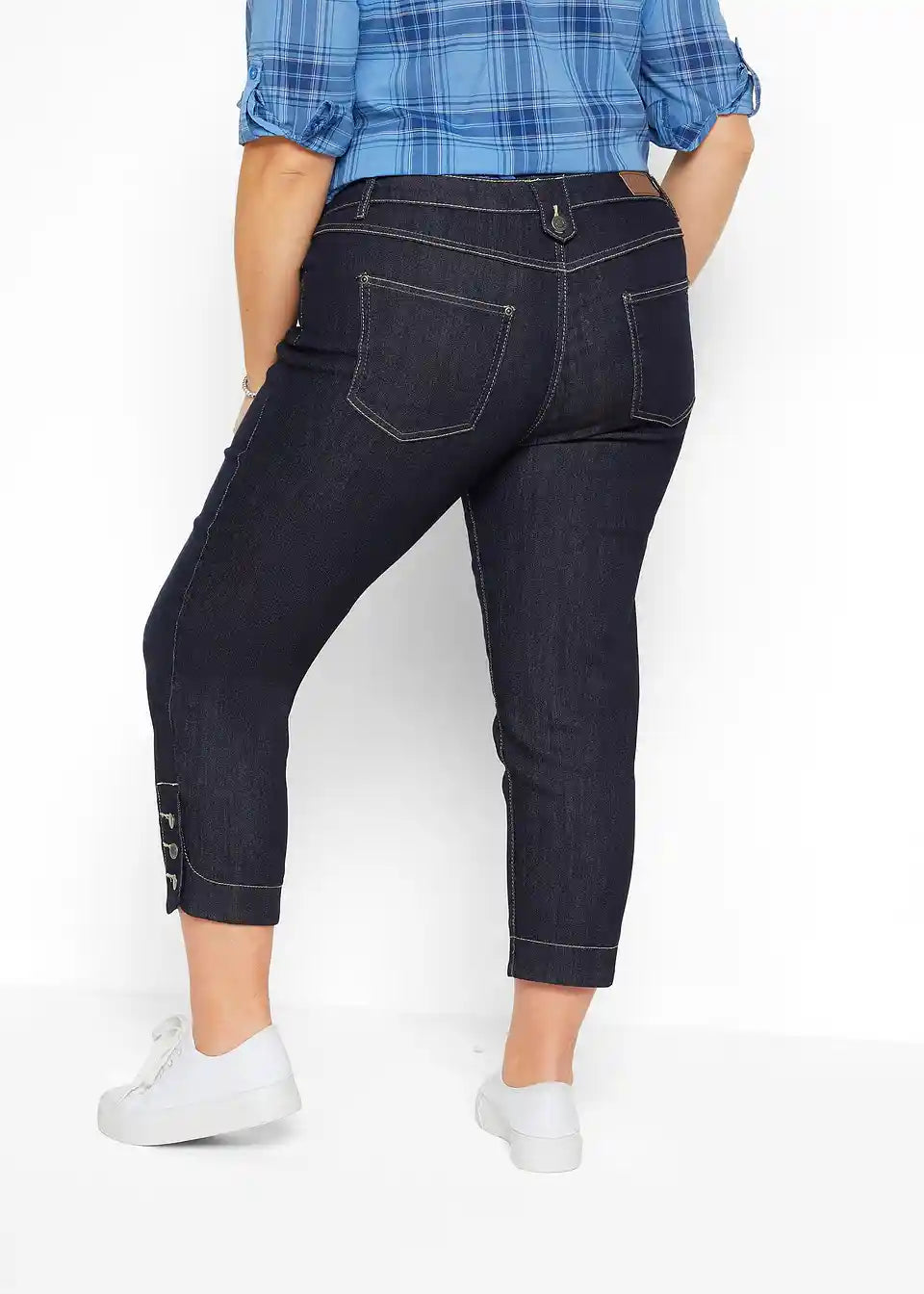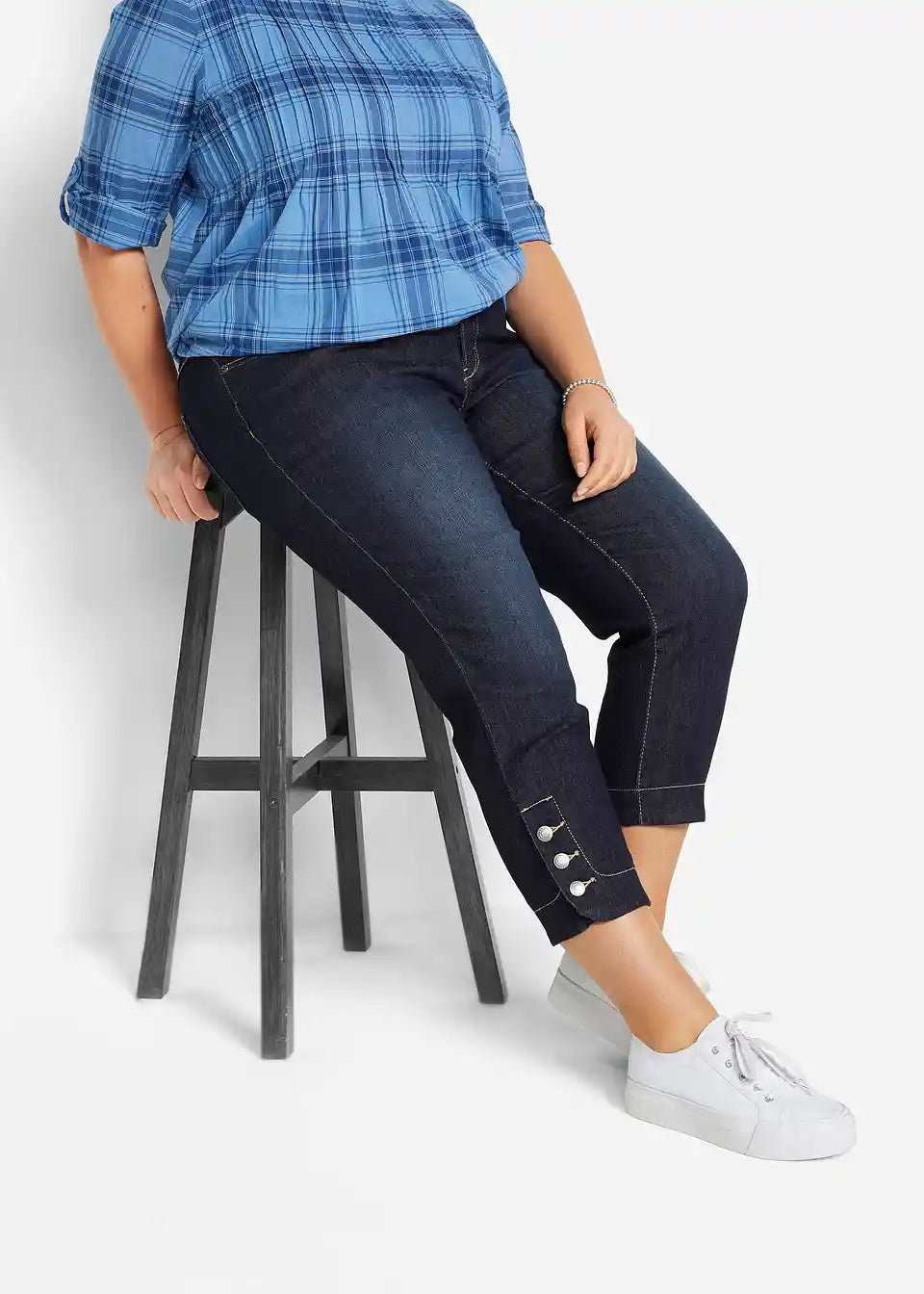 U ovim udobnim rastezljivim trapericama u 3/4 dužini ležerne dame izgledaju odlično. Slim Fit traperice iz aktualne kolekcije brenda John Baner krojene su u stilu s 4 džepa i zatvaraju se gumbom i patentnim zatvaračem. Elegantni gumbi na bočnim prorezima i vrlo uski kroj naglašavaju moderan stil rastezljivih traperica SLIM s gumbima.