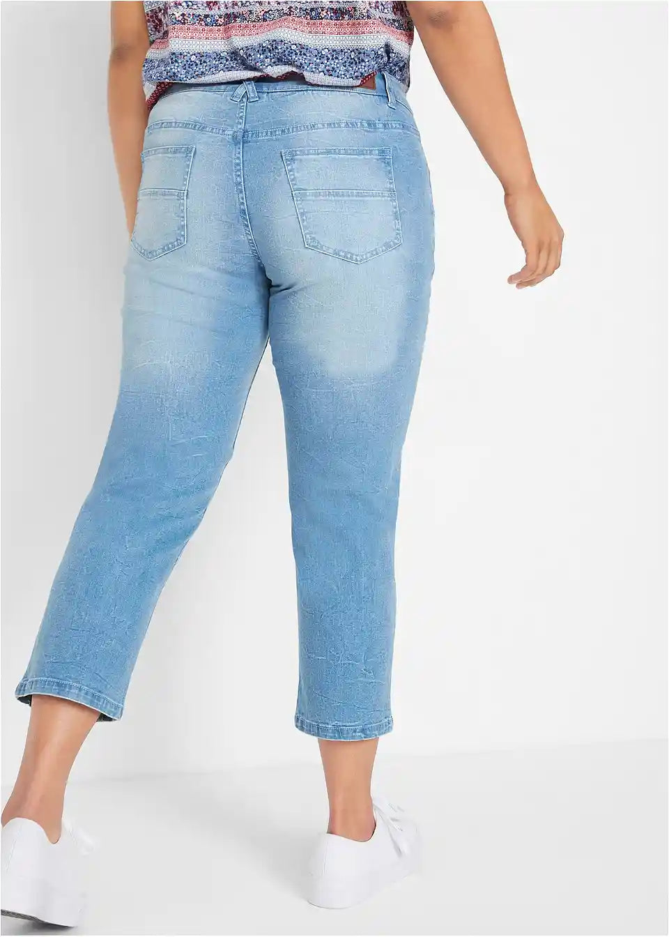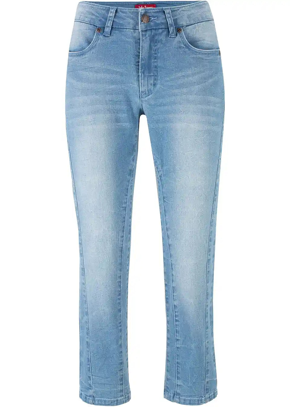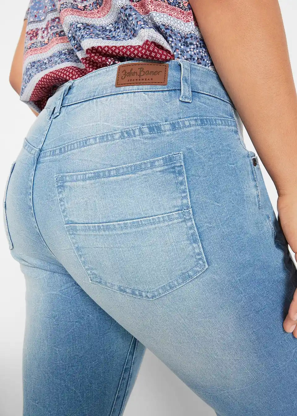 Posebno mekani materijal karakterizira ove 7/8 Soft traperice marke John Baner. Hlače dobivaju atraktivan izgled zahvaljujući posebnom efektu gužvanog izgleda. Imaju po dva džepa sprijeda i straga. Pomaknuti šavovi zaokružuju atraktivan dizajn. Soft traperice dužine 7/8 oduševljavaju u kombinaciji s lepršavom bluzom i mokasinama ili s T-shirtom i tenisicama.