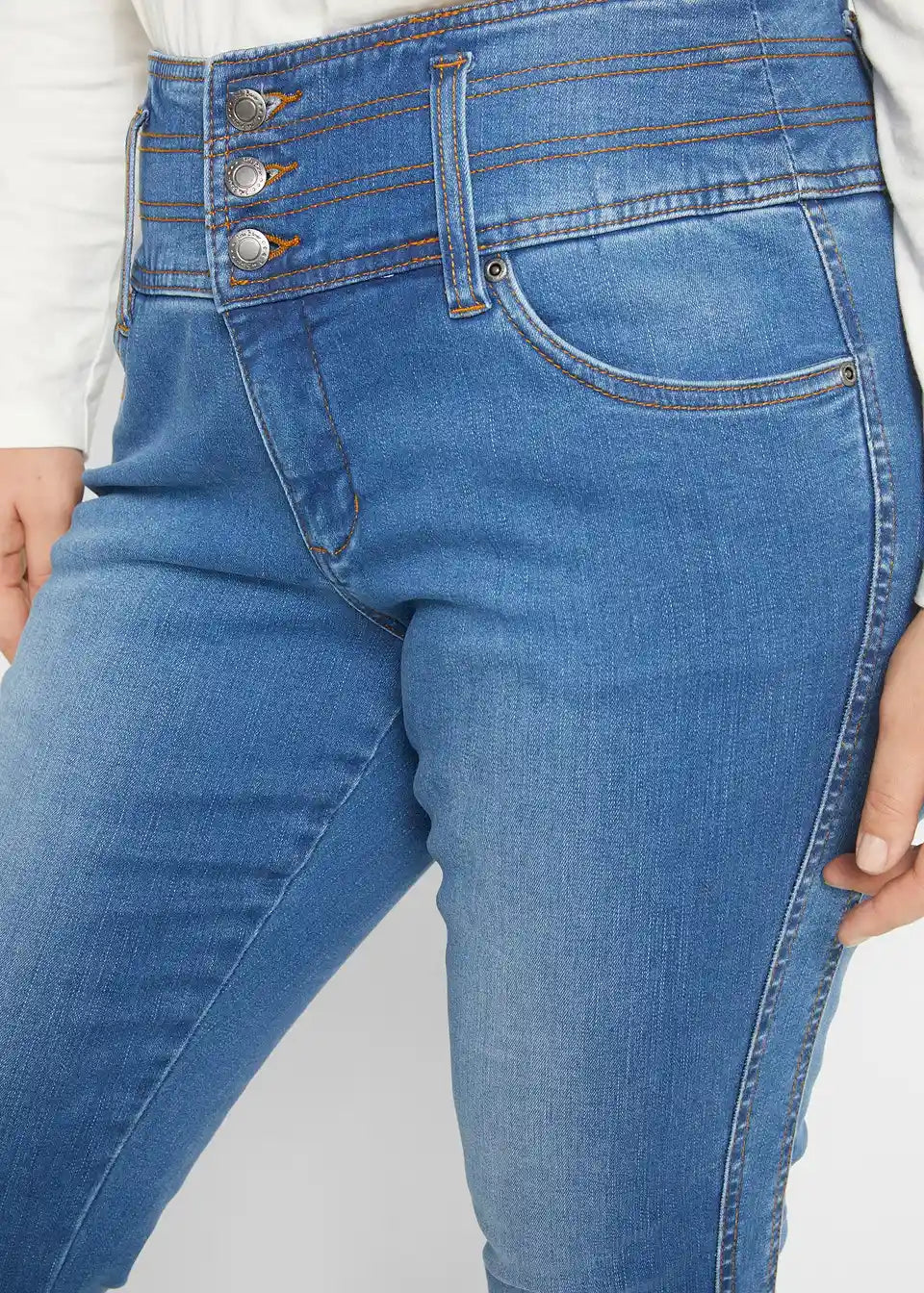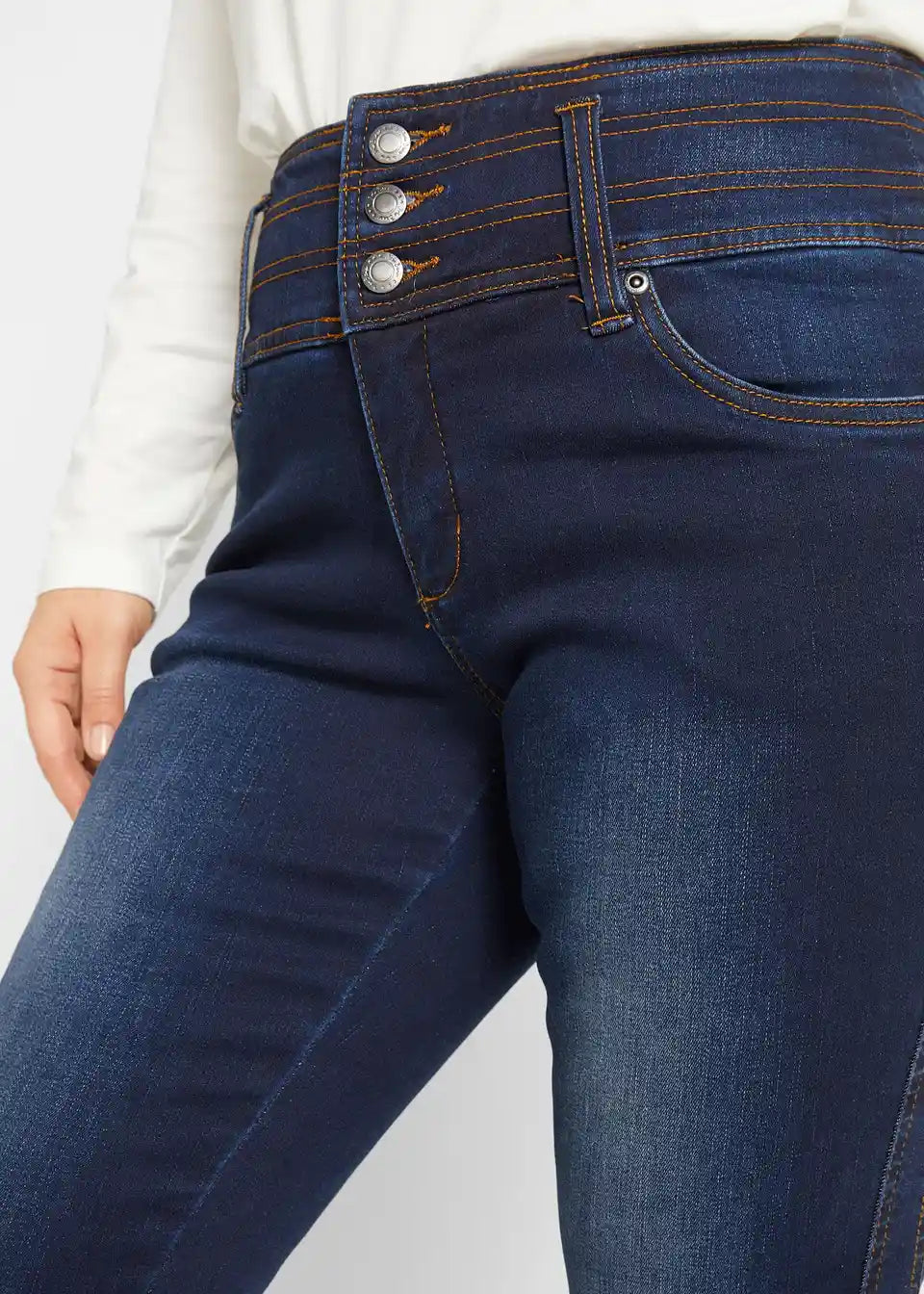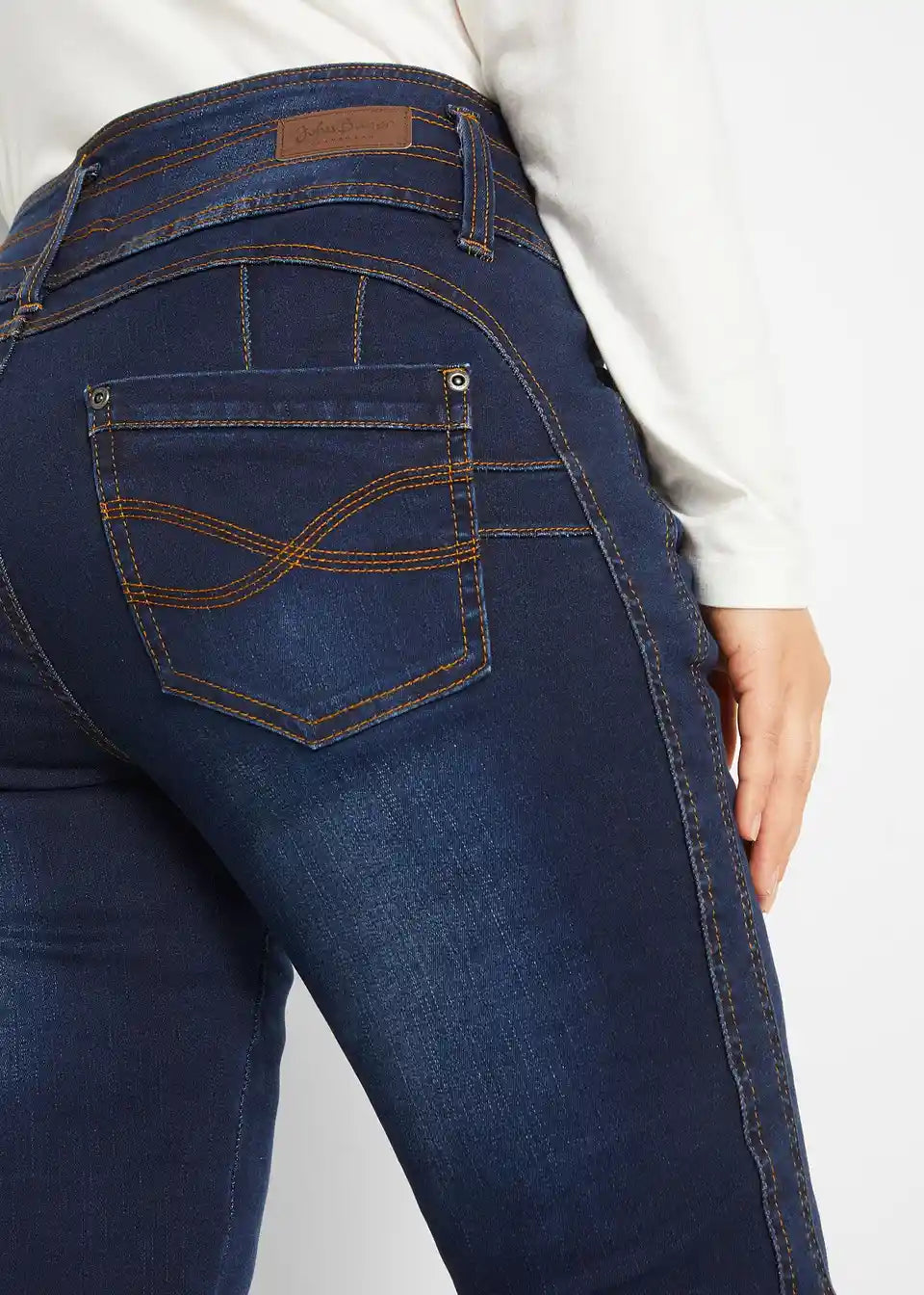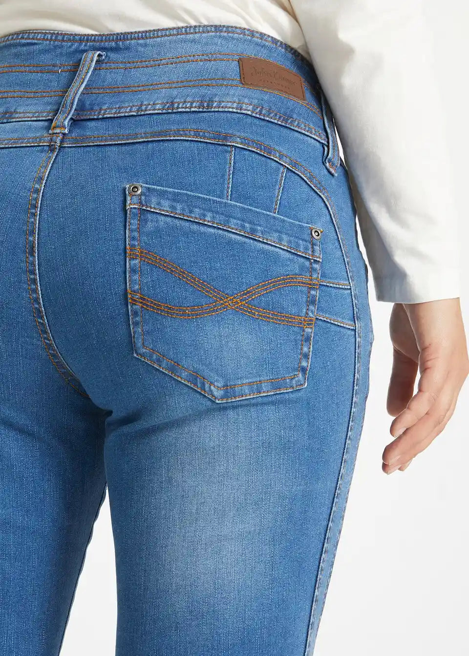Ove traperice Slim Fit od John Baner savršeno naglašavaju žensku siluetu. Zahvaljujući svom shaping stretch materijalu i profinjenim detaljima kroja: široki pojas čini trbuh ravnijim, pomaknuti šav vizualno produžuje noge, a šavovi na stražnjoj strani lagano podižu stražnjicu. Ležerne shaping stretch traperice "Trbuh-noge-stražnjica", Slim, zatvaraju se s tri gumba i patentnim zatvaračem.