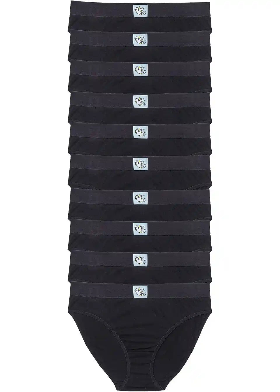 Udoban slip od čistog pamuka idealno je donje rublje za svaki dan. Atraktivan prišiveni logo ukrašava pojas ovog lijepog osnovnog rublja od bpc-a. Čak je i umetak od pamuka. Četiri kombinacije boja dostupne su u povoljnom pakiranju po deset komada. Postoji pakiranje s 10 bijelih i jedno s 10 crnih slipova. Za raznolikost tu su veselo šareni setovi.