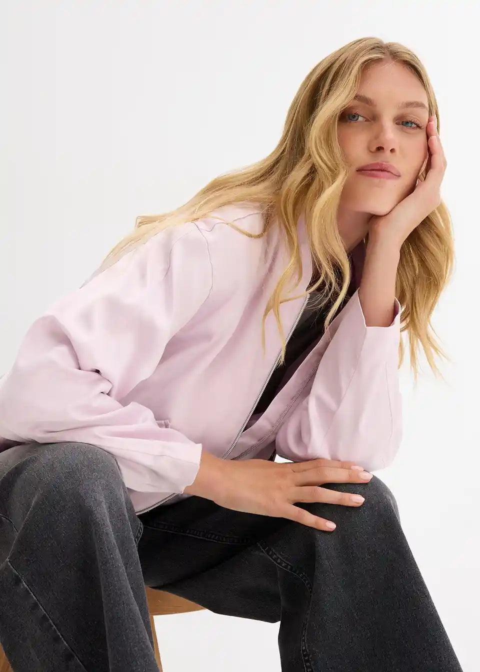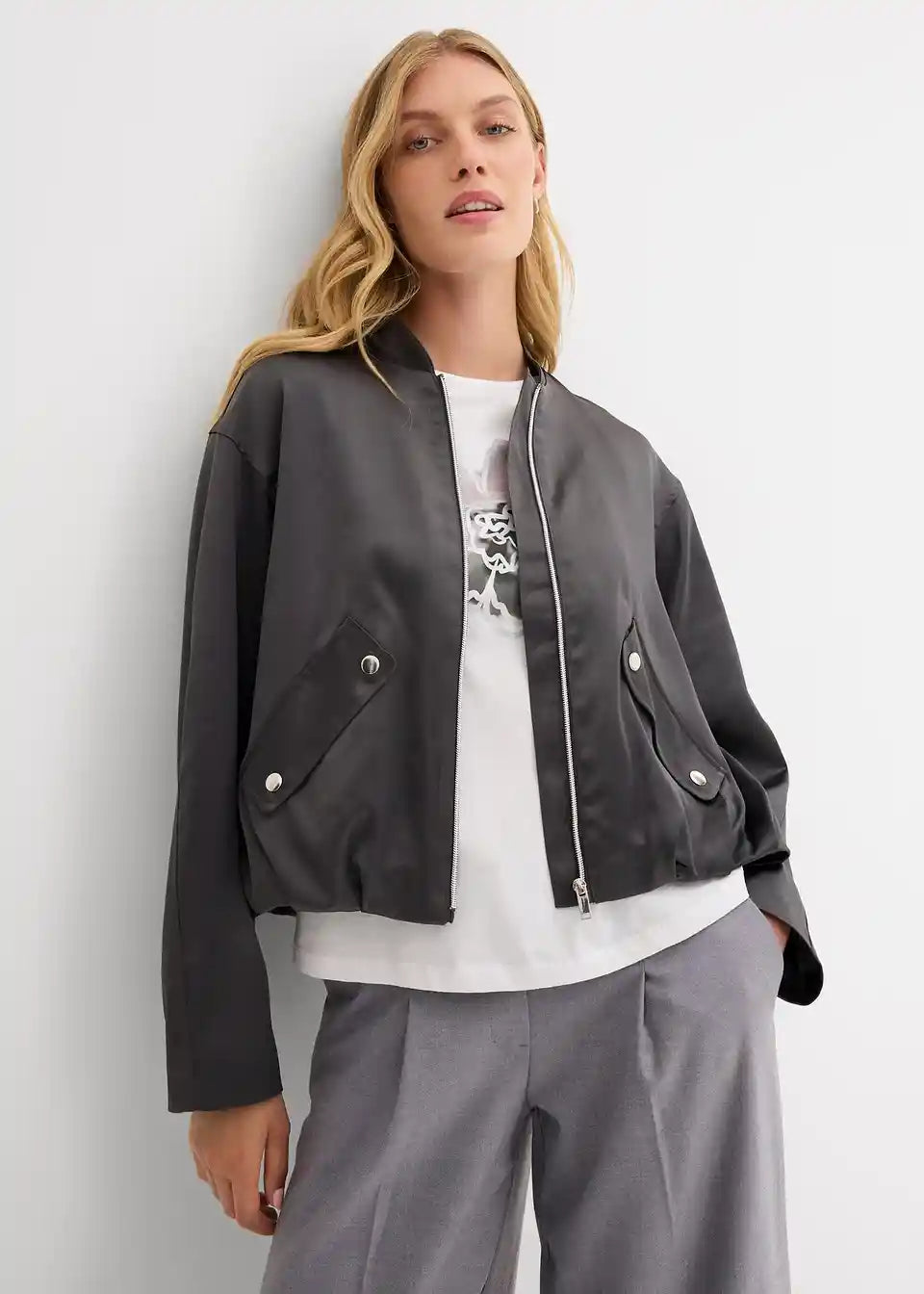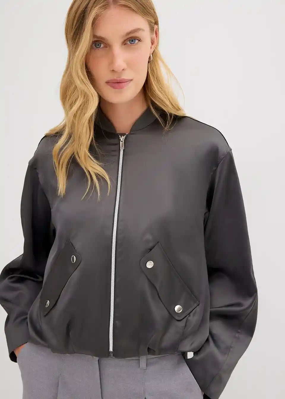 Blouson-jakna s kosim ušivenim džepovima sprijeda i balon-rubom