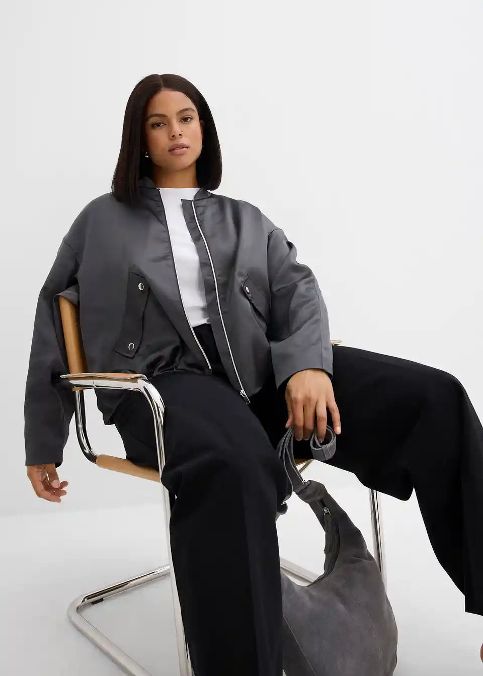 Blouson-jakna s kosim preklopnim džepovima sprijeda i balon-rubom