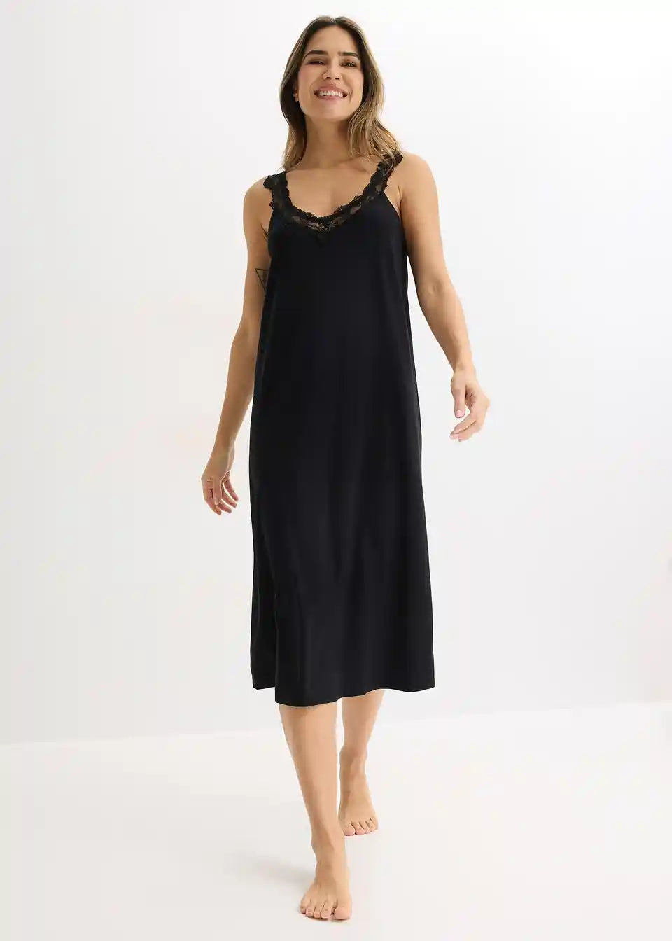 Spavaćica s dubokim V-izrezom s ženstvenom čipkom