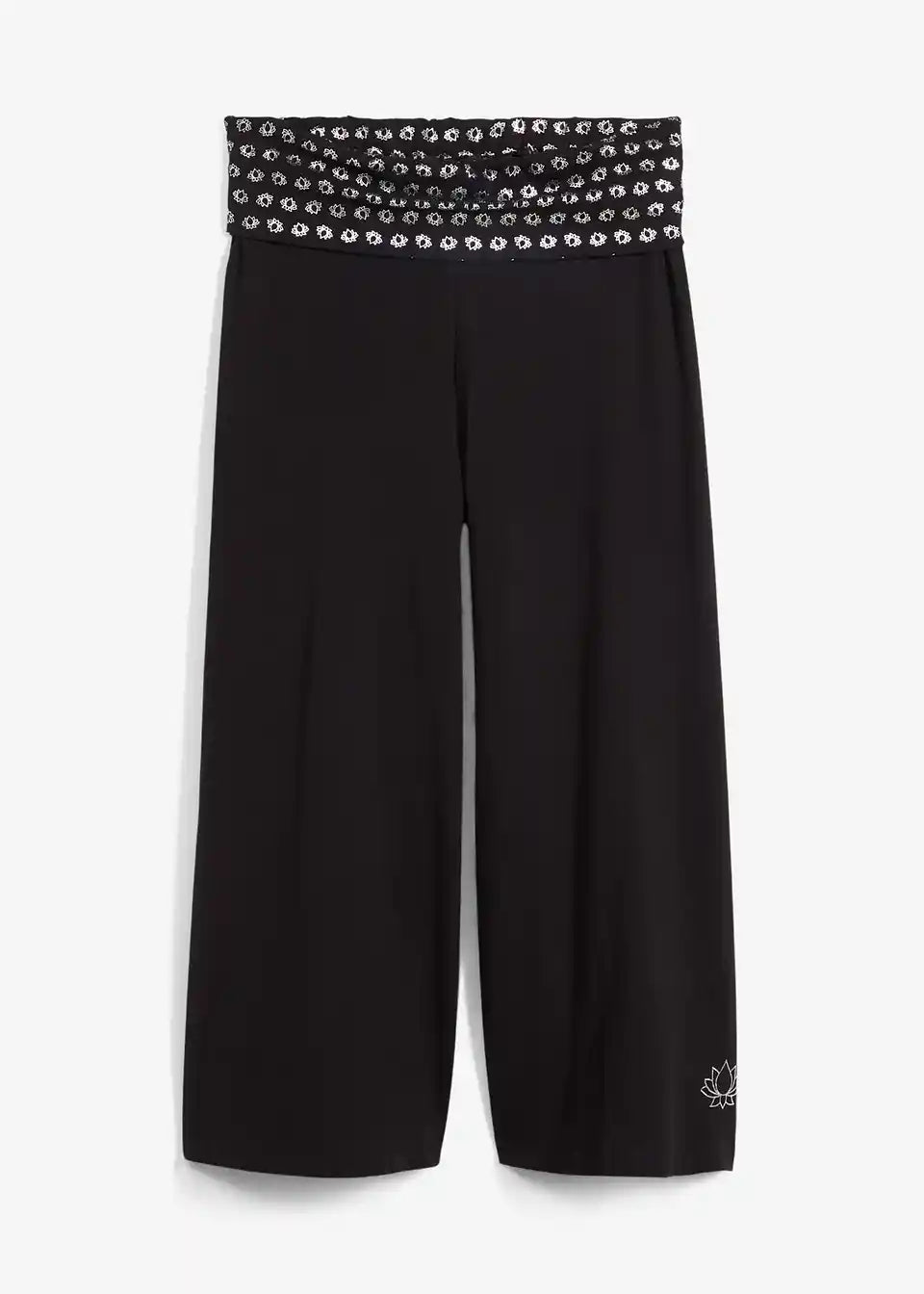 Yoga pamučne hlače Culotte s uzorkovanim udobnim pojasom, dužina do listova