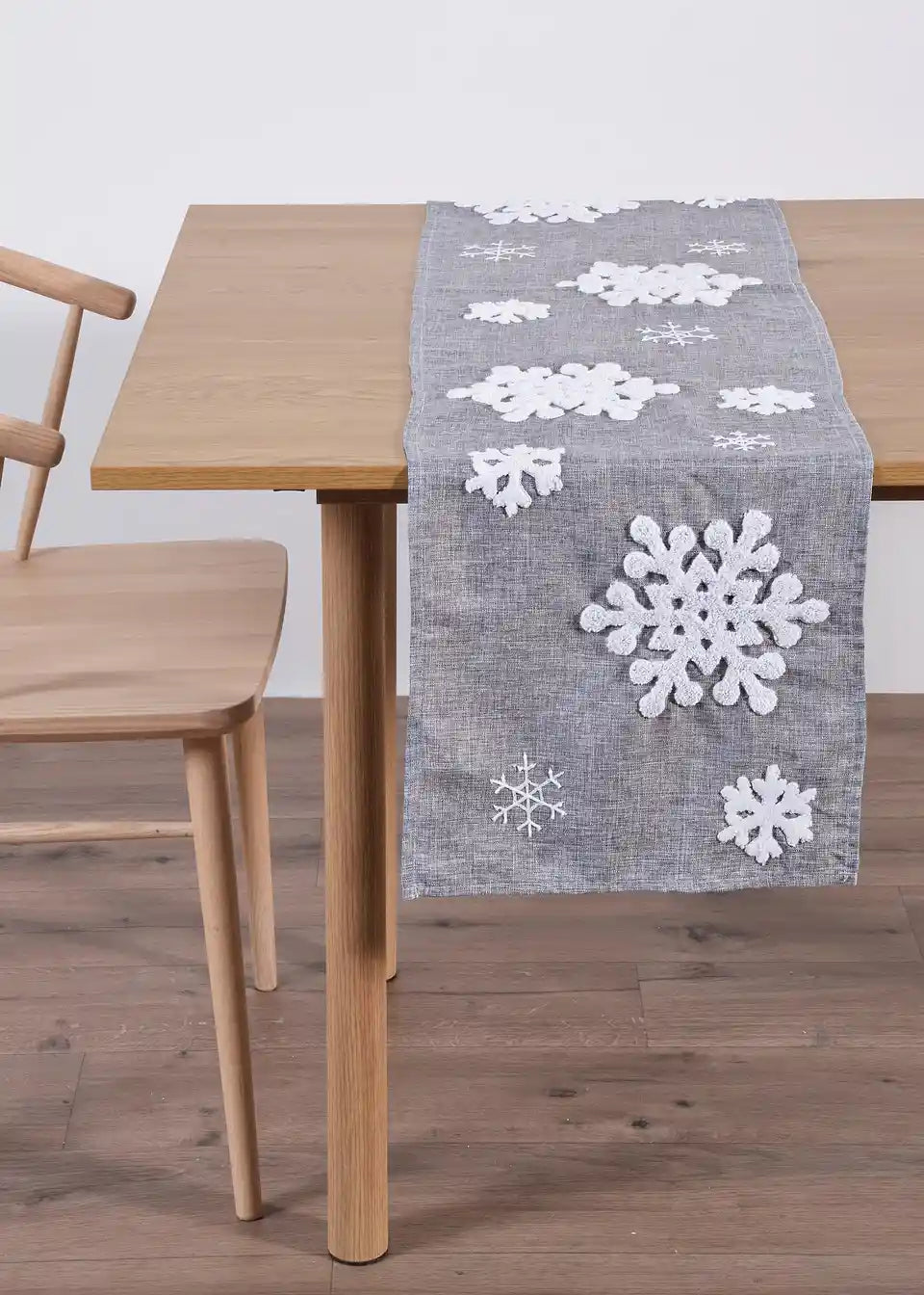 Elegantni stolnjak od 100% poliestera s mekanim vezom pahulja. Uz ovaj stolnjak jednostavan za održavanje uvest ćete ugodnu zimsku atmosferu i stvoriti čaroban izgled na svom stolu.