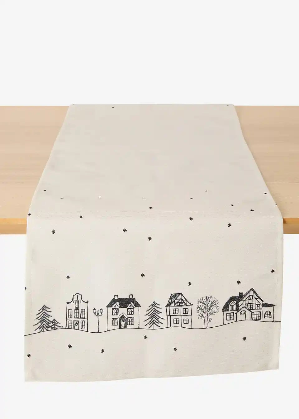 Unesite ugodnu atmosferu za svoj stol s ovim šarmantnim stolnjakom! Ljupki zimski motiv sa stiliziranim kućama, jelkama i nježnim snježnim pahuljama trenutno daje vašem domu svečani, ali decentan izgled. A najbolje od svega: vodootporna tkanina čini ga posebno jednostavnim za održavanje i praktičnim za svakodnevnu upotrebu!