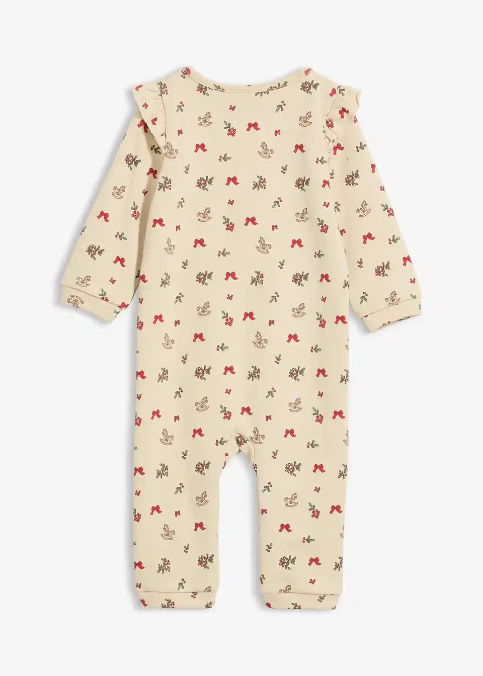Ovaj božićni baby overall nije samo praktičan, već je i posebno sladak. Izrađen od čistog organskog pamuka, mekan je i ugodan na koži. Mala krilca na stražnjoj strani i svečani motiv čine ga pravim pogledom tijekom zime. Gumbi sprijeda omogućuju lako oblačenje i svlačenje, dok drukeri na preponama olakšavaju prematanje. Pažljivo dizajniran dječji jumpsuit – idealan za Božić, obiteljska okupljanja ili ugodne dane kod kuće.