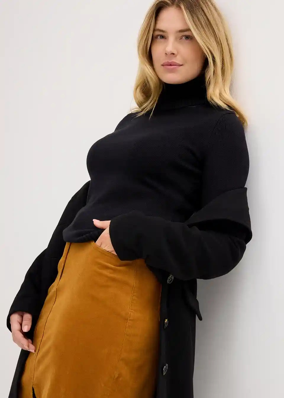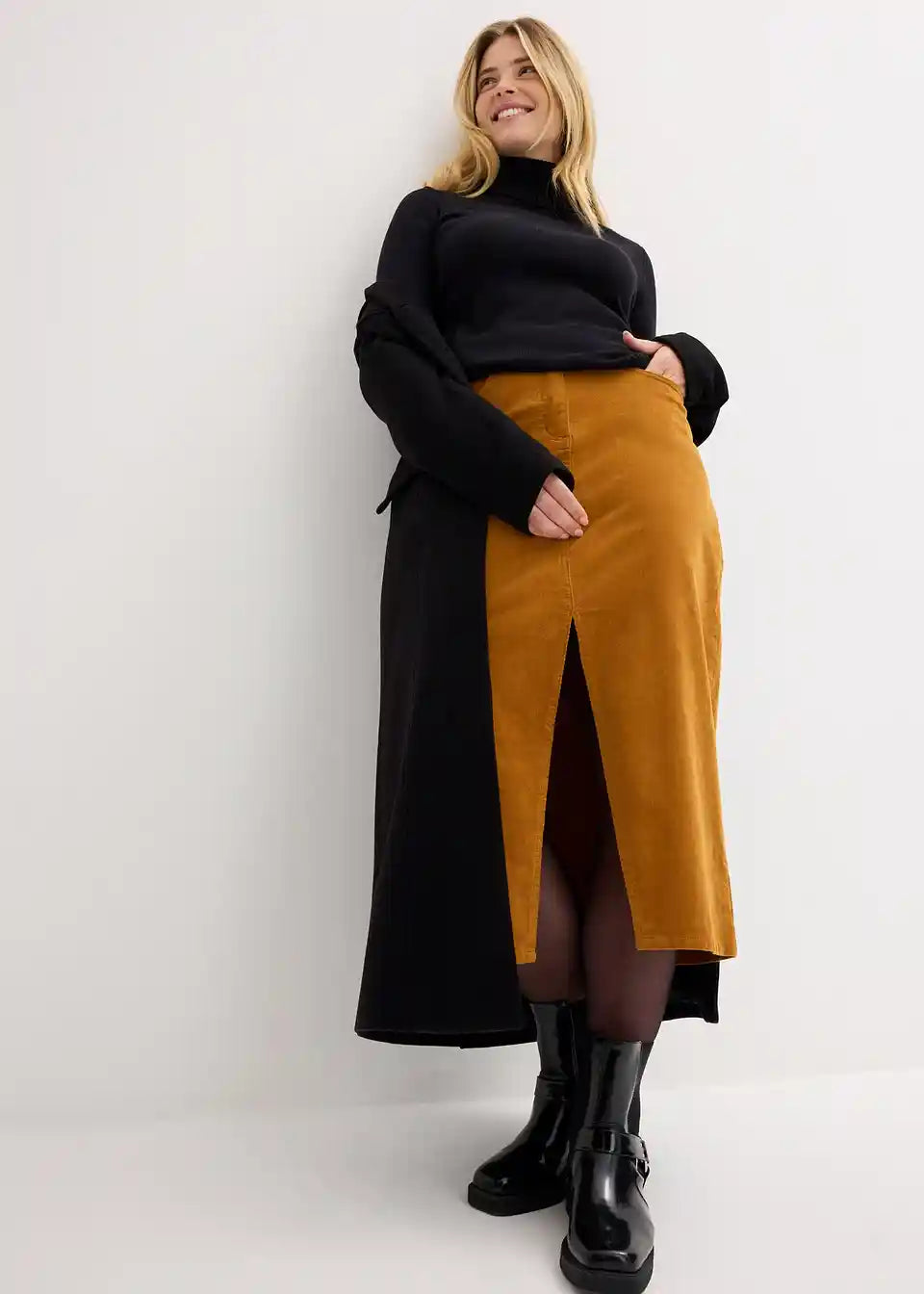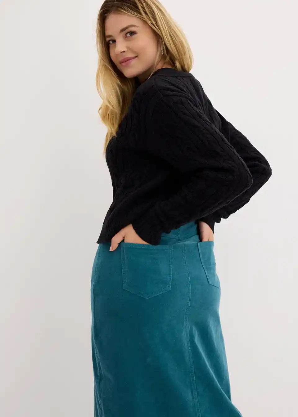 Stretch suknja od samta s organskim pamukom i prorezom