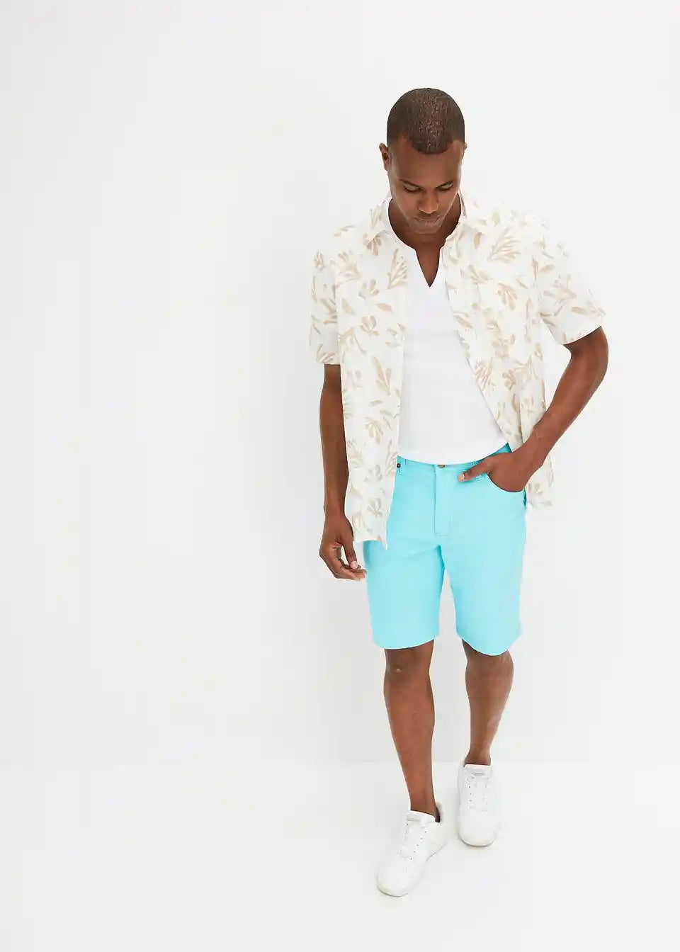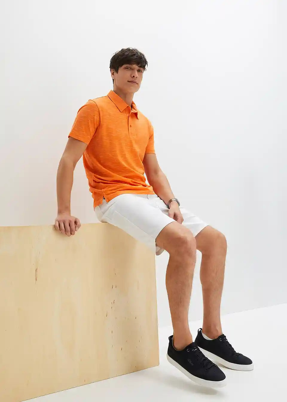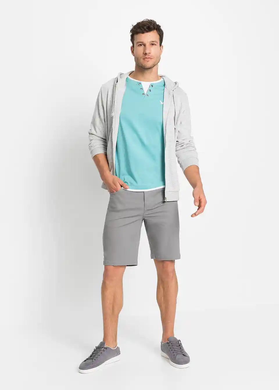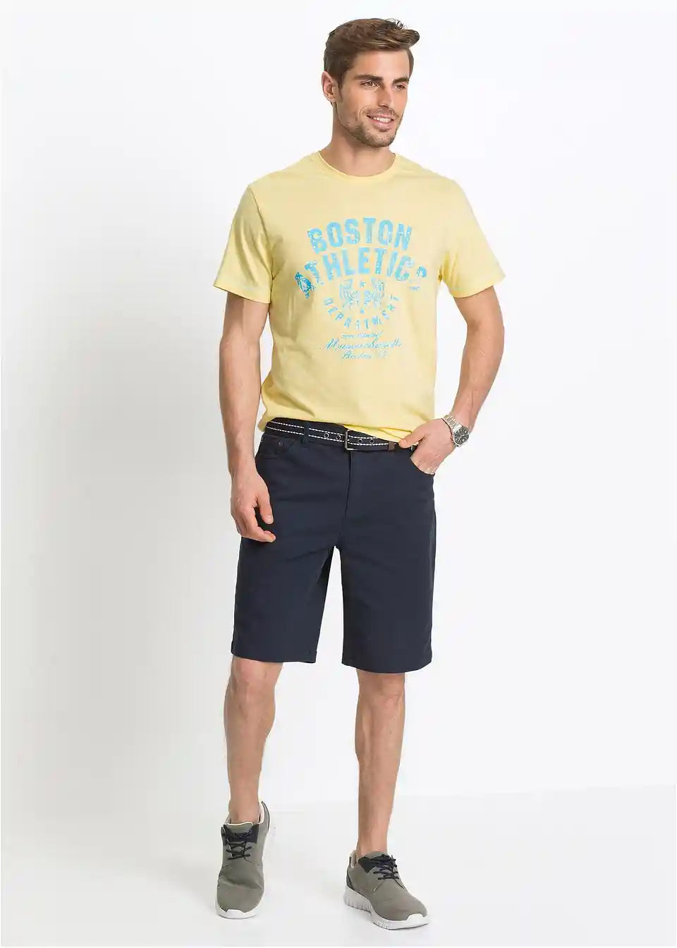 Ova muška Stretch-Bermuda Classic Fit impresionira čistim linijama. Elastični udio u materijalu pruža veliku udobnost i slobodu kretanja. Pet džepova i podignuti pojas s kopčanjem na patentni zatvarač upotpunjuju ovaj privlačan model od bpc-a. T-Shirt i tenisice daju Stretch-Bermudi ležeran izgled, dok joj kratka košulja i laneni sako daju moderan izgled.