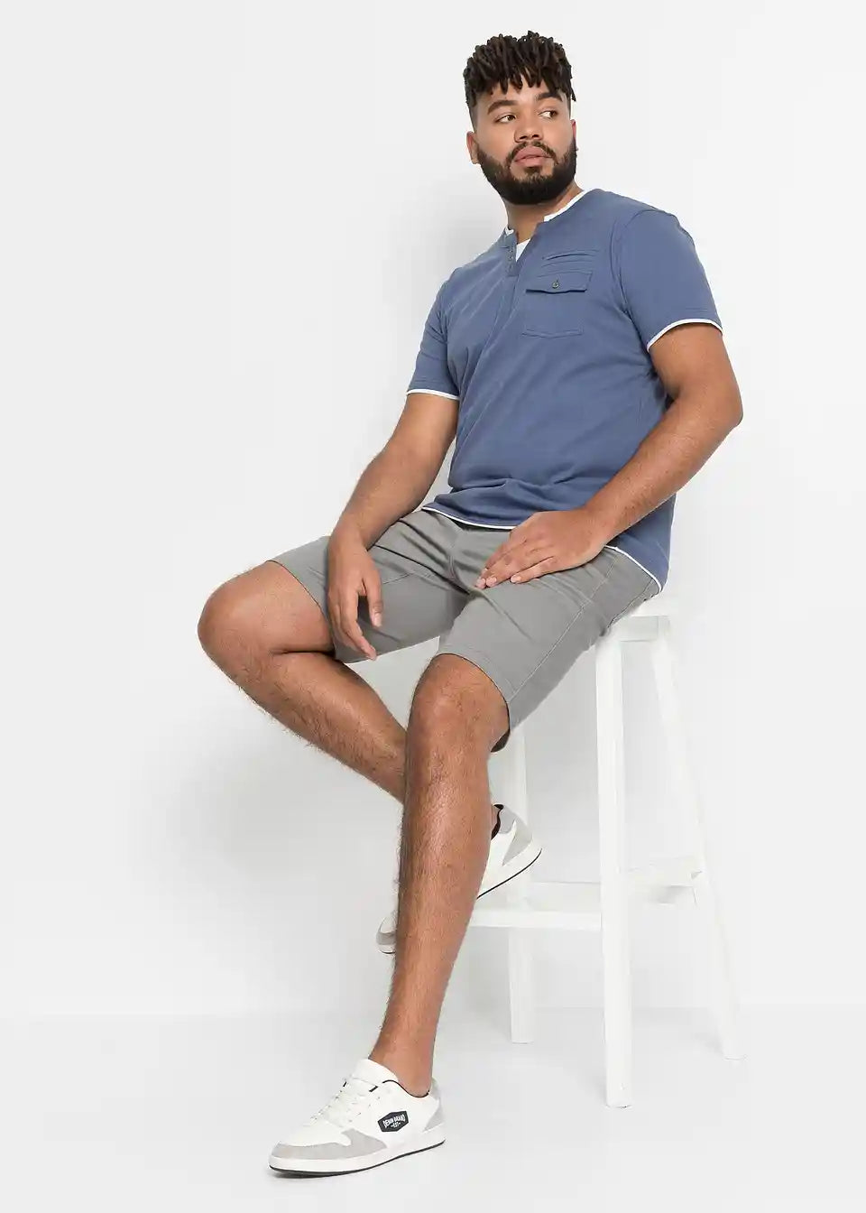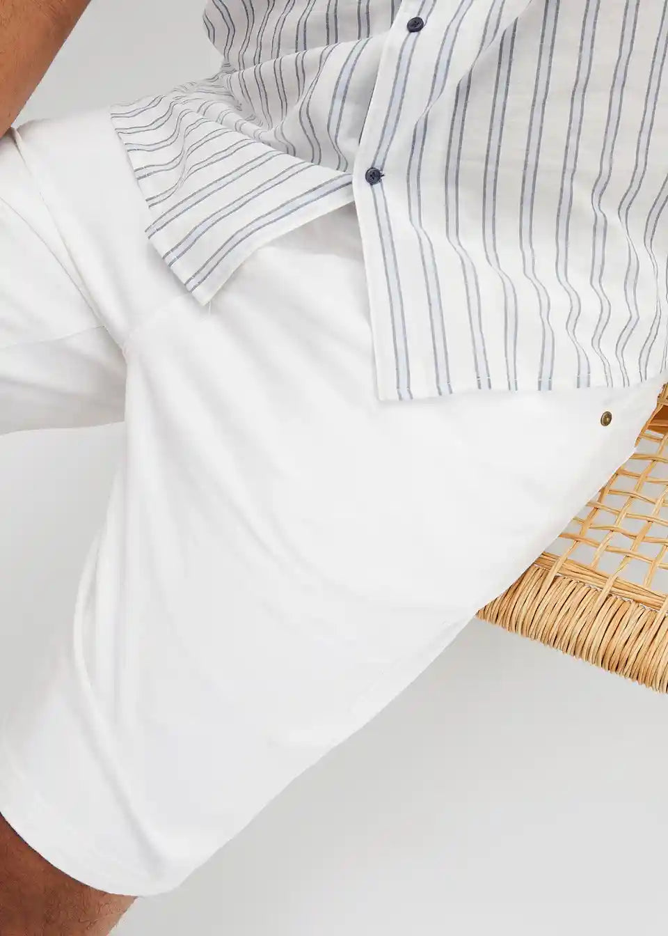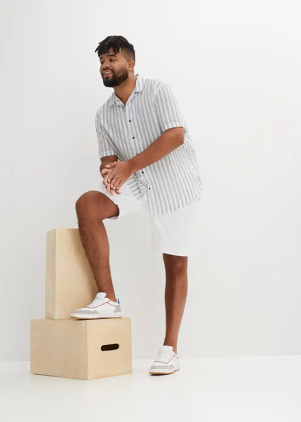 Ova muška Stretch-Bermuda Classic Fit oduševljava čistim linijama. Elastični udio u materijalu pruža veliku udobnost i slobodu kretanja. Pet džepova i povišeni struk s otvorom na patentni zatvarač zaokružuju ovaj atraktivan model od bpc-a. T-shirt i tenisice daju Stretch-Bermudi ležeran izgled. Košulja kratkih rukava i laneni sako daju joj moderan izgled.