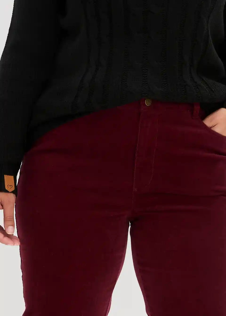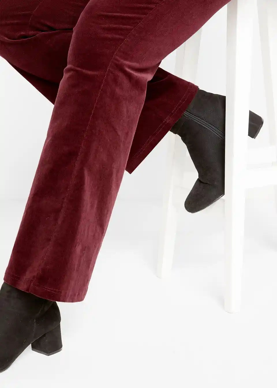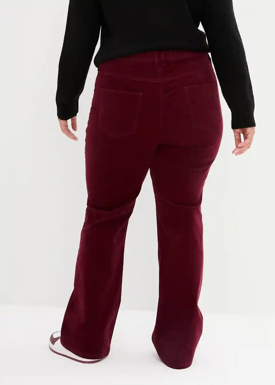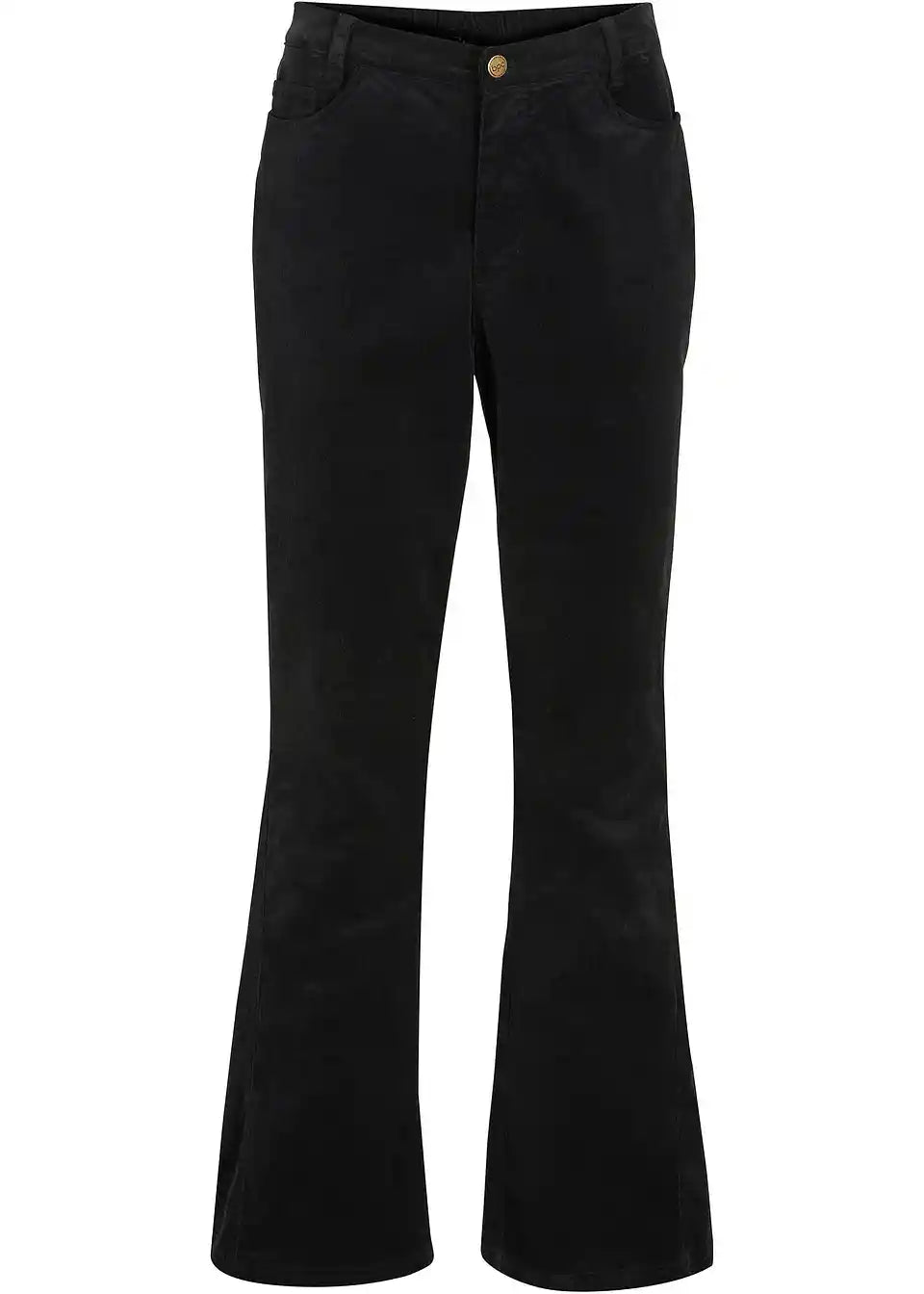 Stretch samtene hlače zvonolikog kroja s visokim komotnim strukom