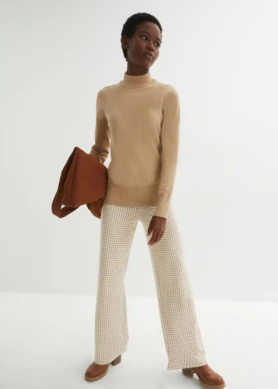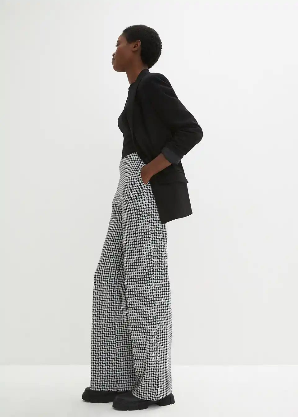 Stretch hlače s pepita uzorkom širokog kroja
