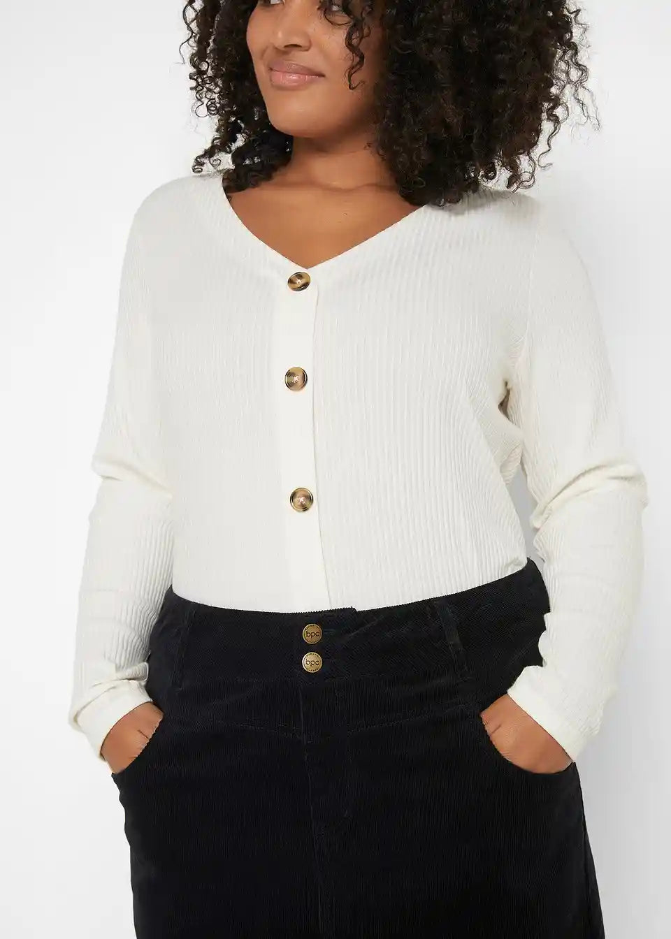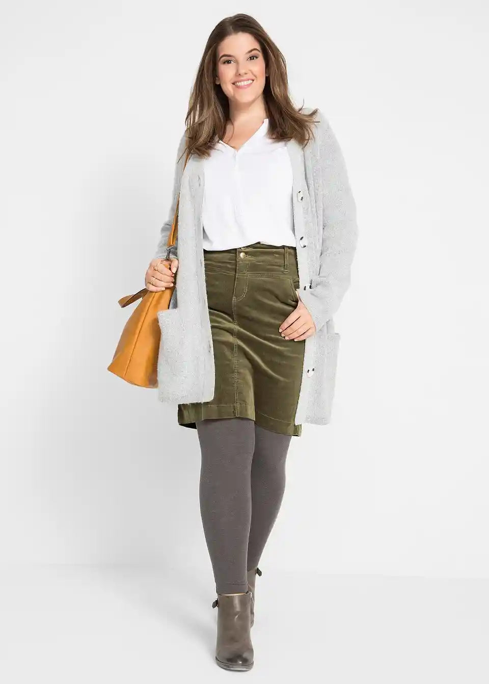 Usko krojena kord suknja iz kolekcije bpc prati dame u modnom stilu kroz zimu. Suknja od korda izrađena je od ugodnog stretchmaterijala i može se sprijeda zakopčati s dva gumba. Dizajn s 4 džepa i otmjeni šlic na stražnjoj strani naglašavaju moderan, a istovremeno ležeran izgled. Udobna suknja najbolje se kombinira s kratkim gornjim dijelovima, hulahopkama i čizmama.