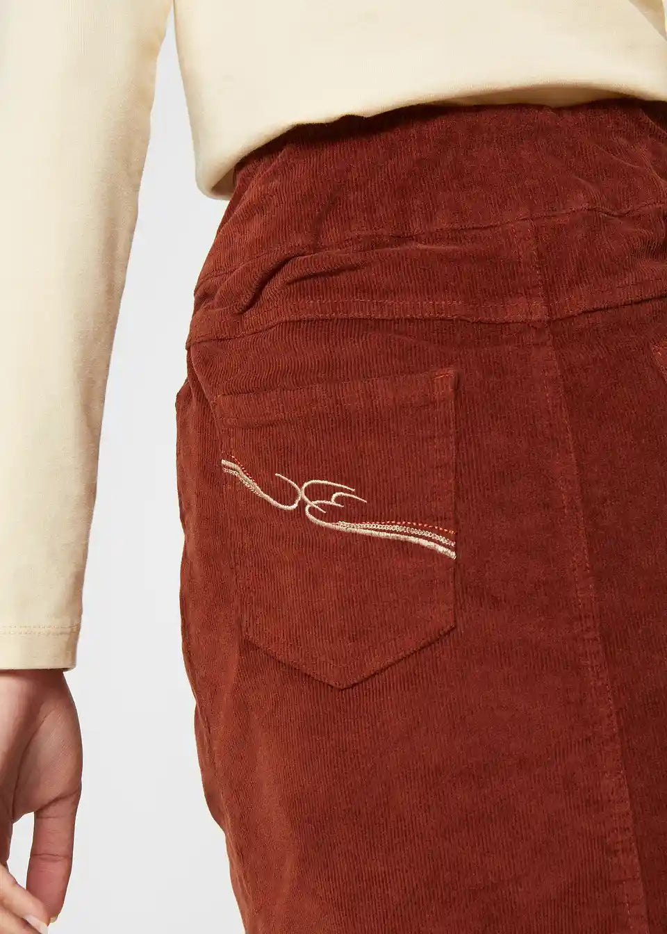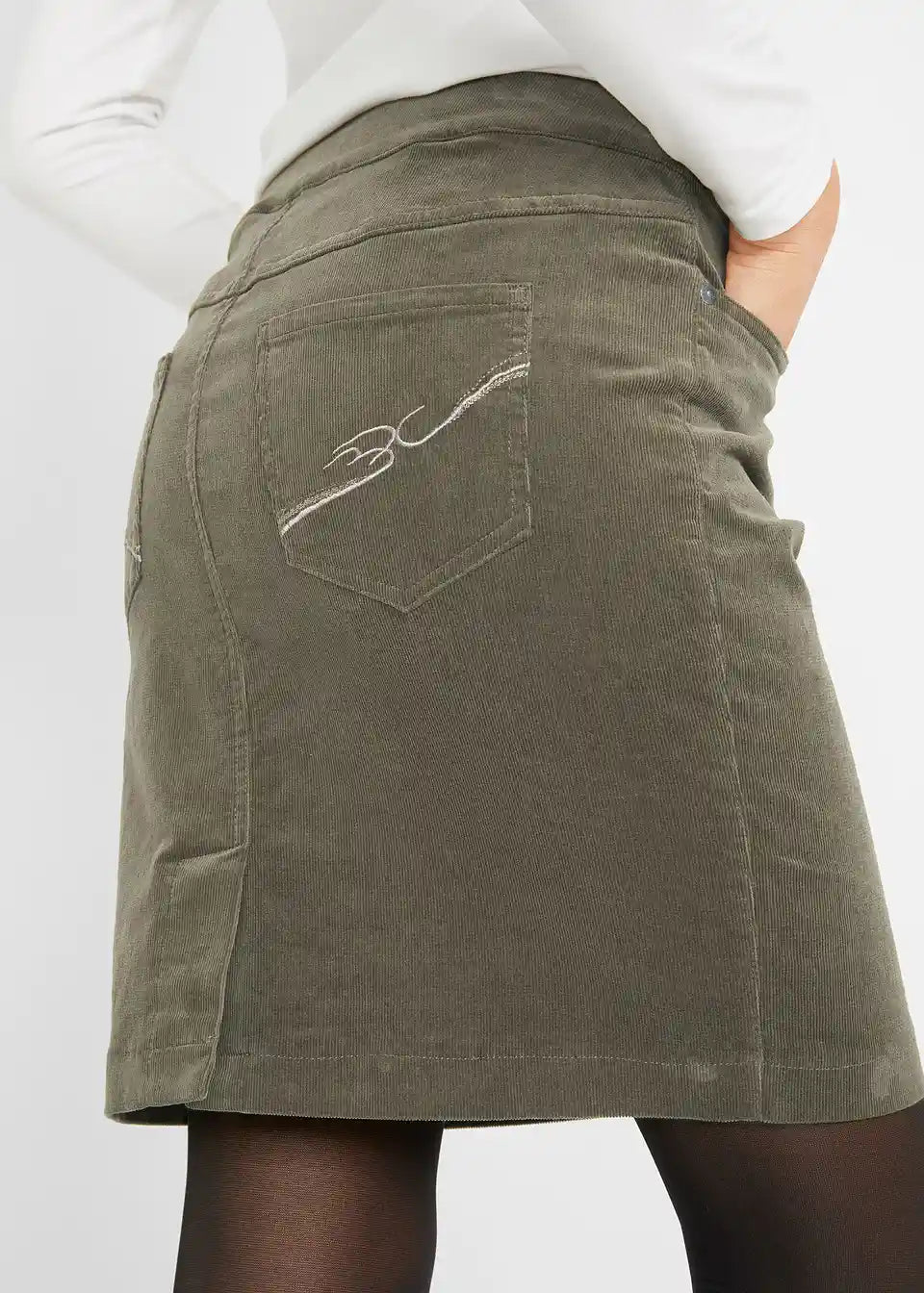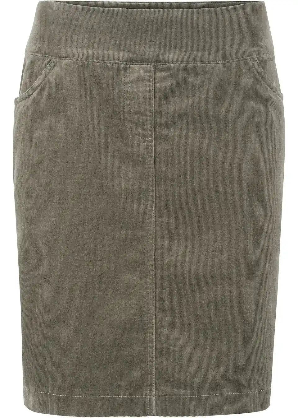 Stretch kordska suknja s elastičnim pojasom u dužini do koljena