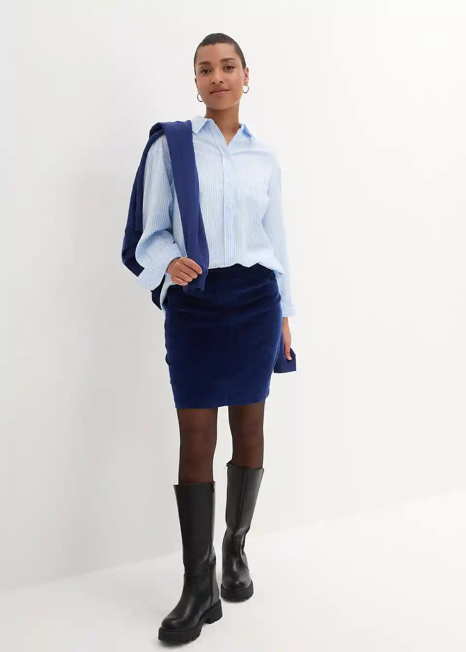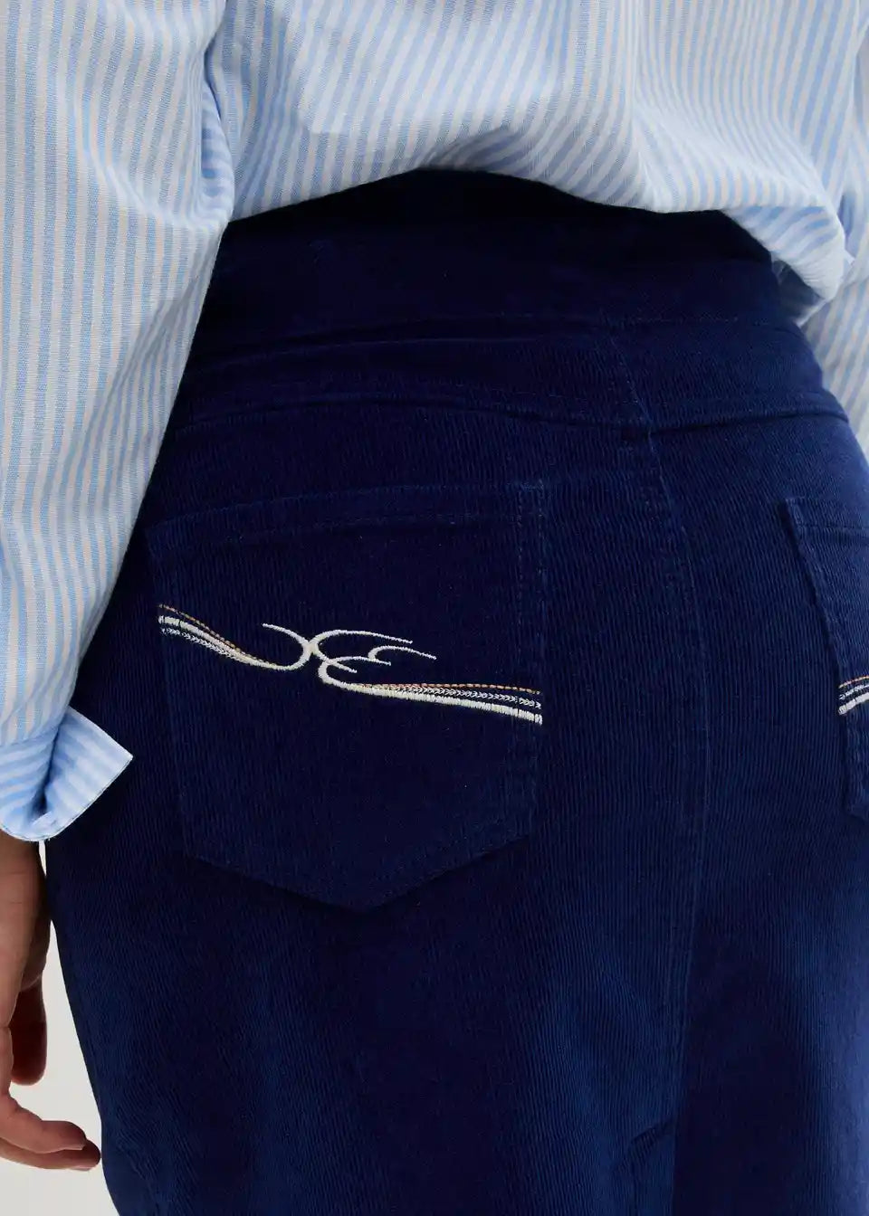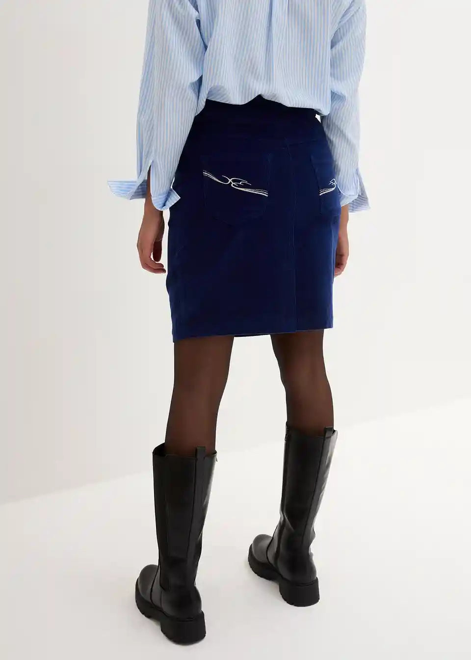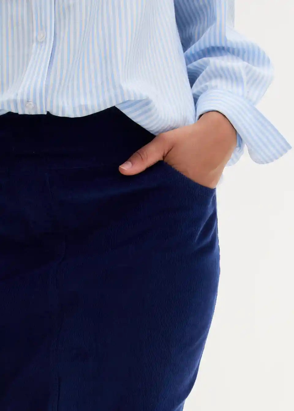Stretch kordska suknja s elastičnim pojasom u dužini do koljena