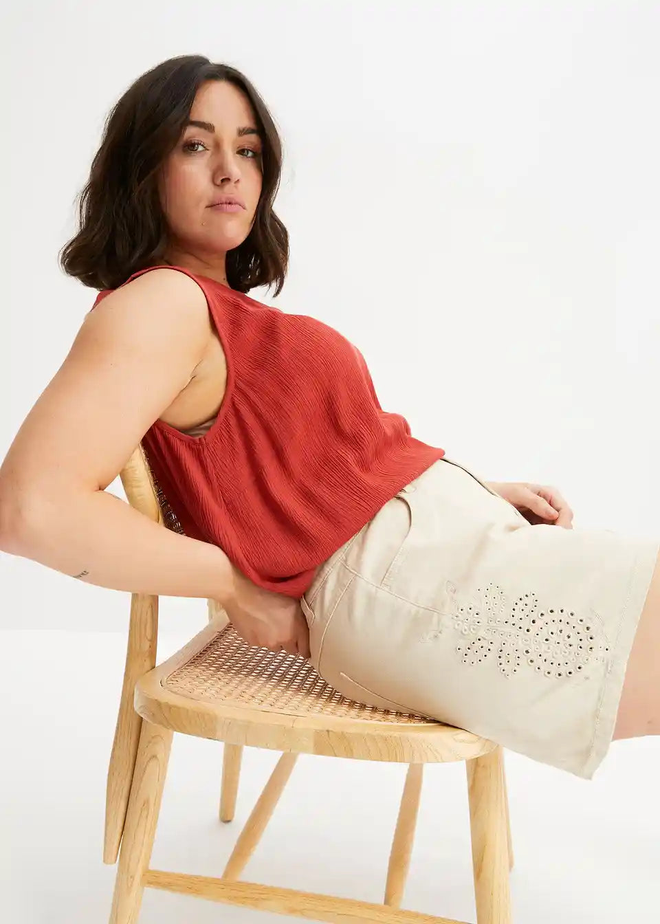 Moderni šorc s visokokvalitetnim rupičastim vezom
