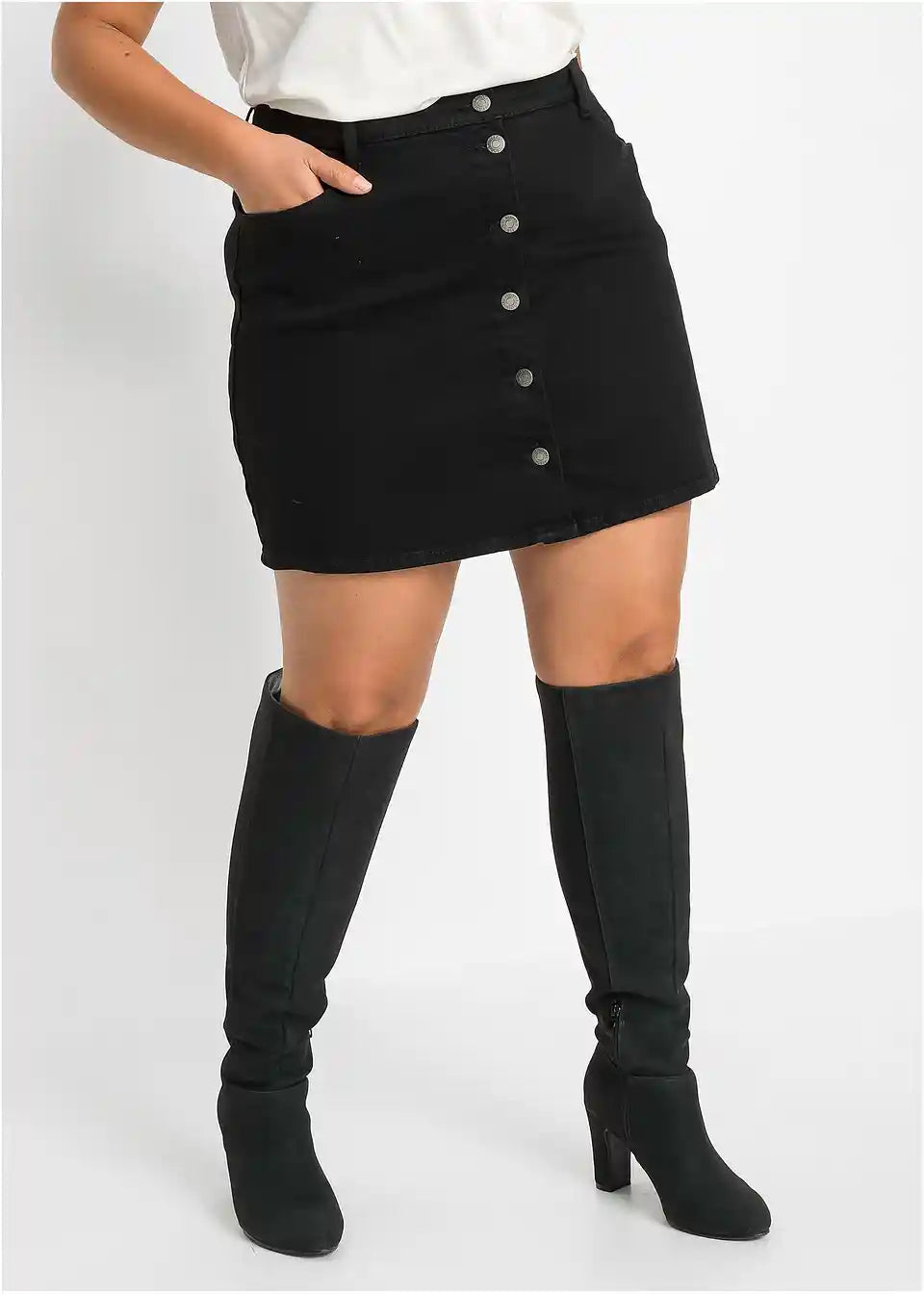 Šarmantna Stretch-traper suknja u laganom A-kroju s prolaznom nizom gumbiju.