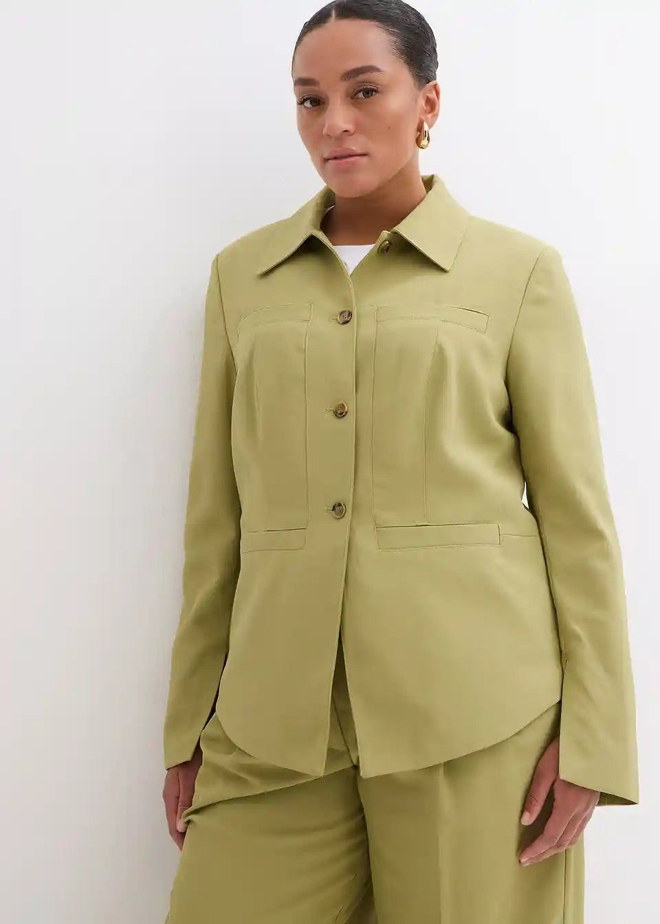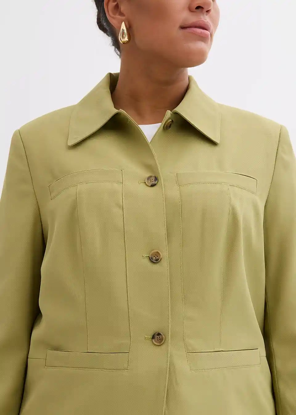 Košulja jakna sa šiljastim ovratnikom i četiri paspulirana džepa sprijeda u utility stilu