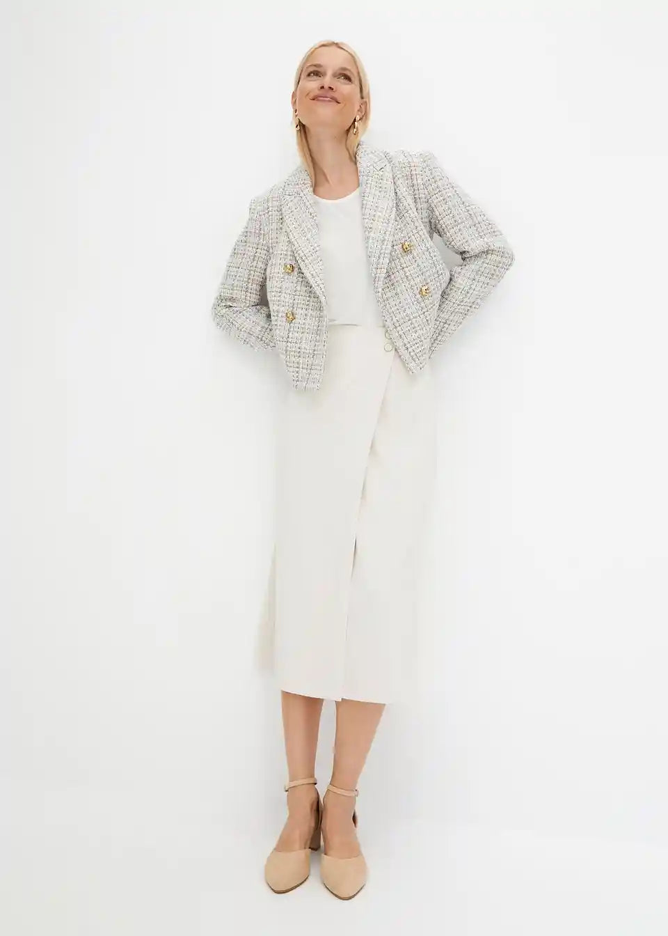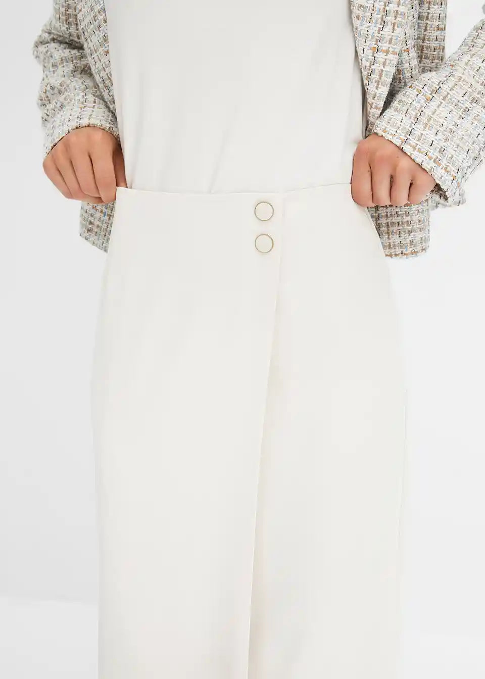 moderna suknja s preklopnim dizajnom i ukrasnim gumbima na gornjem dijelu struka