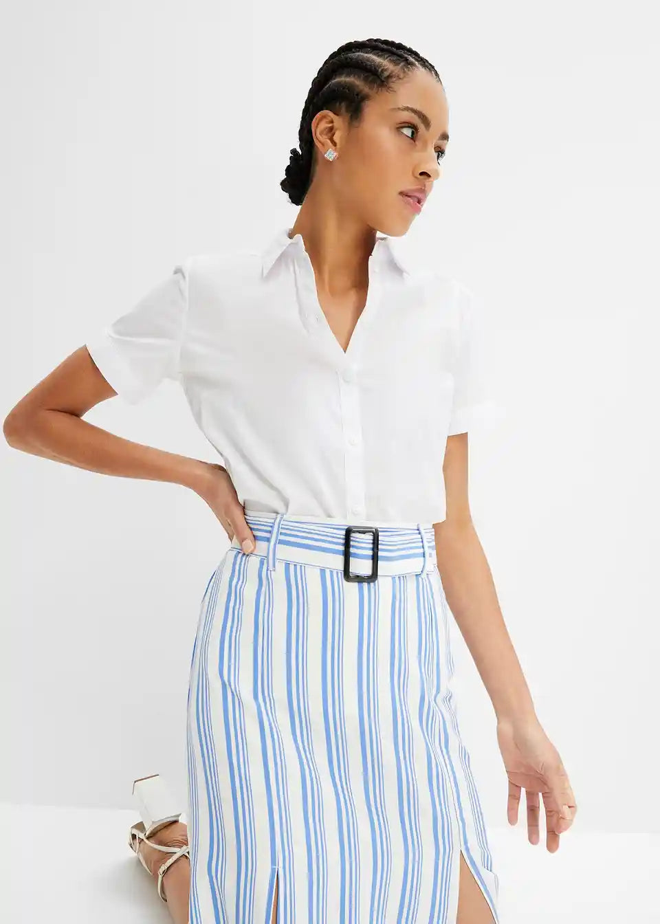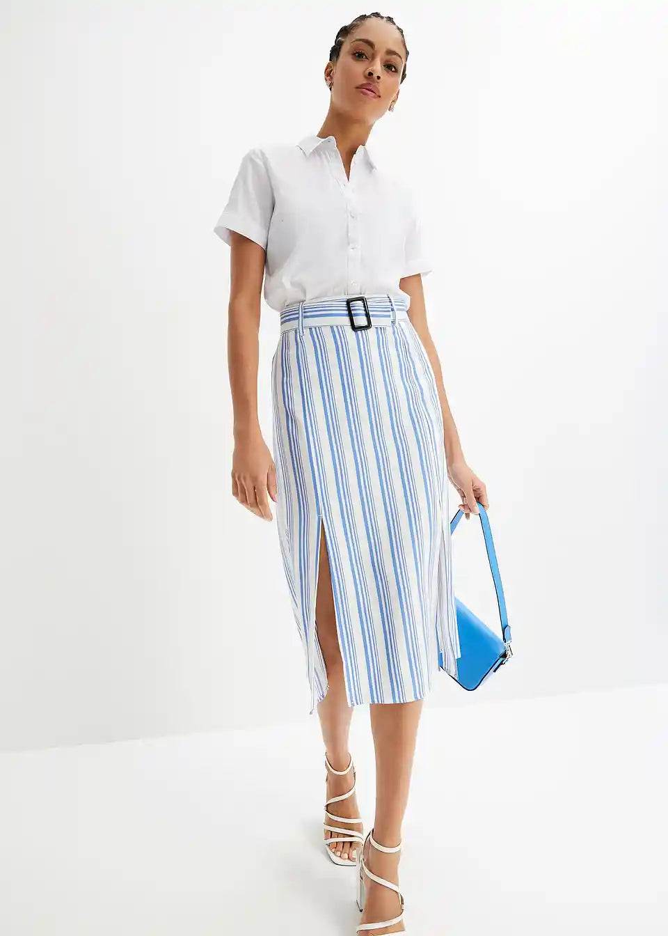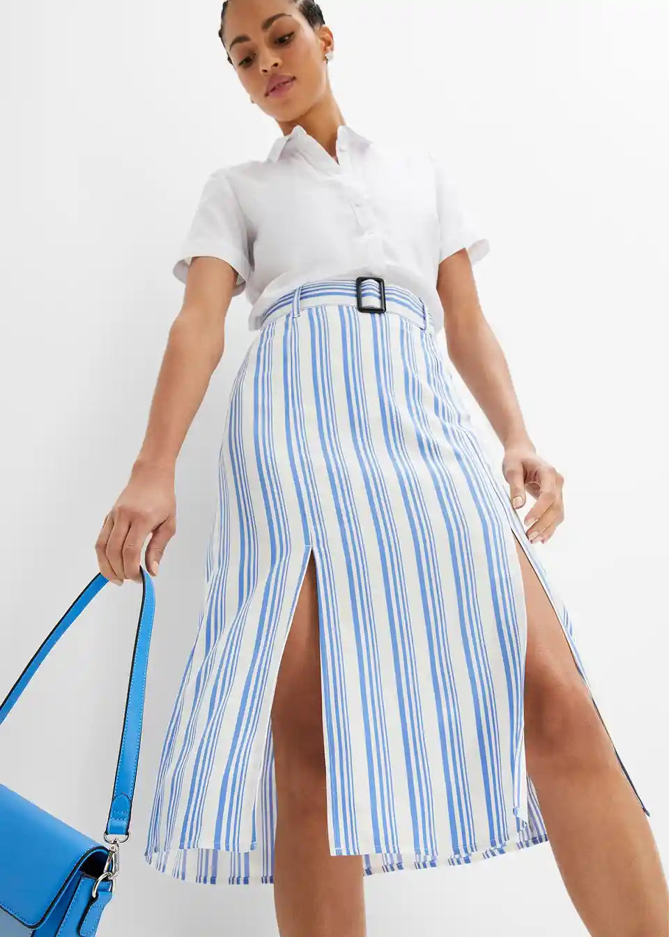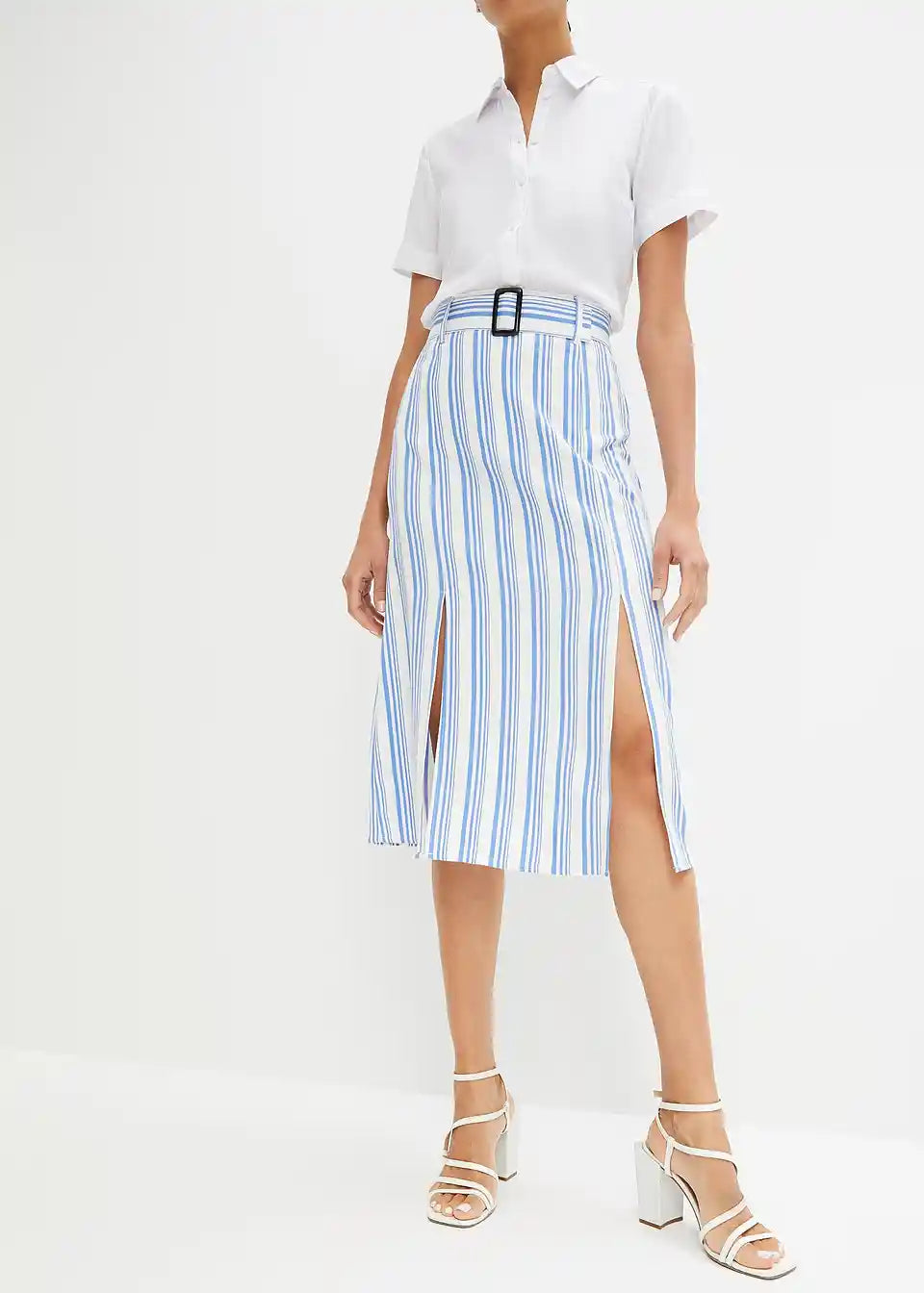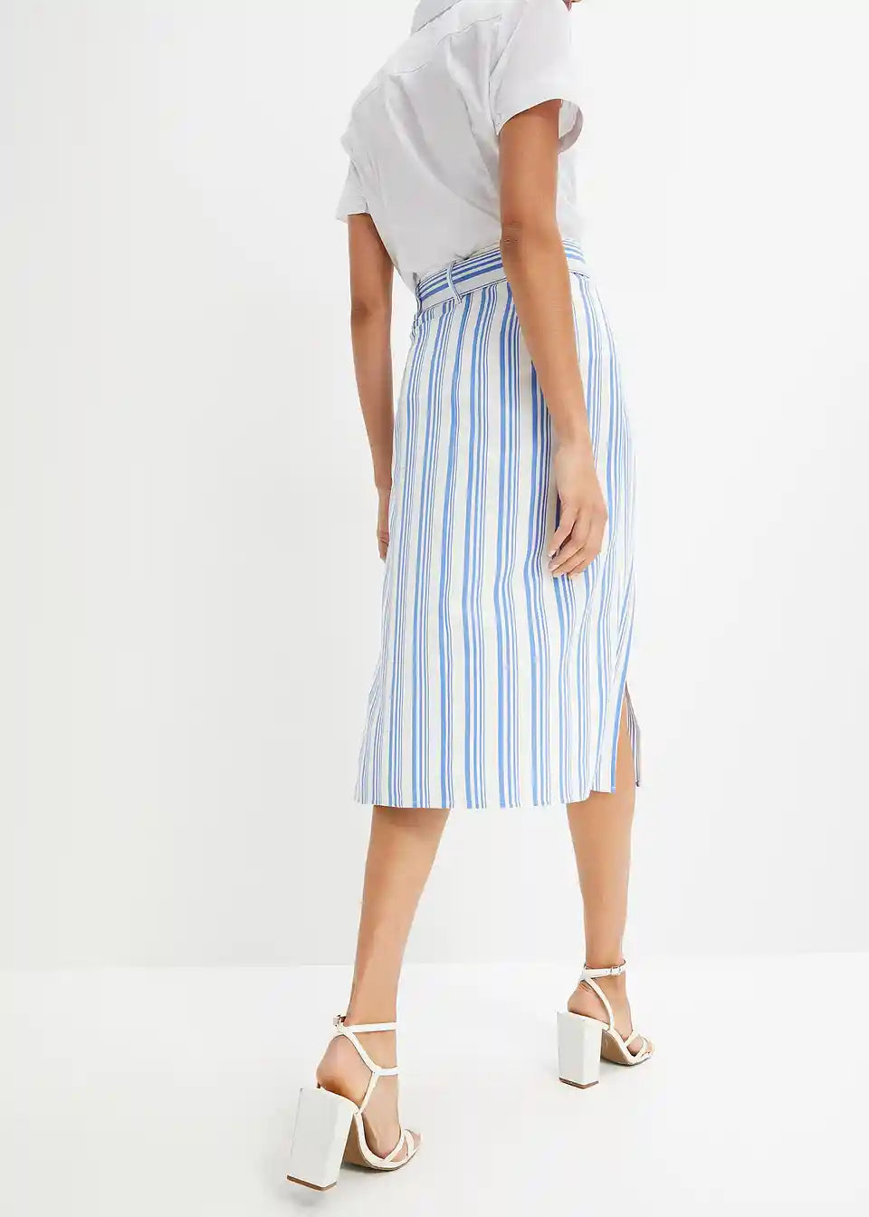 Upadljiva prugasta midi suknja s remenom