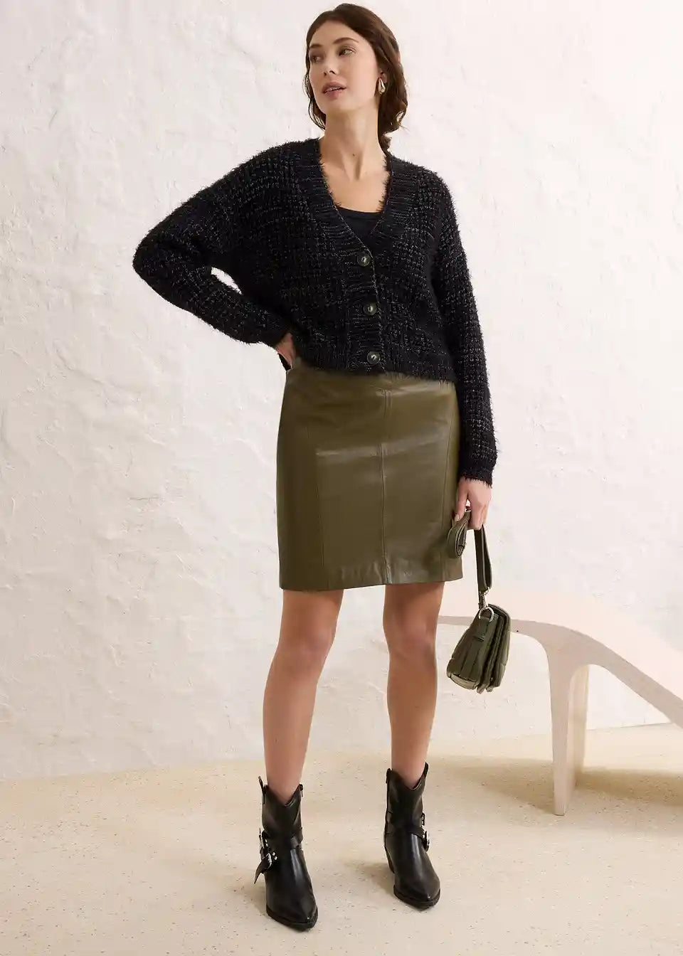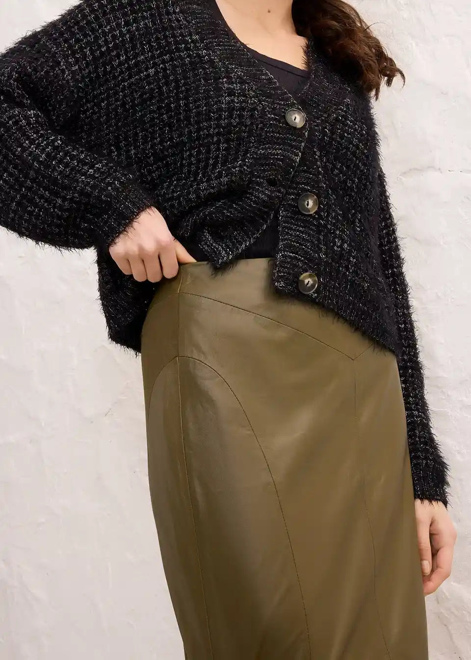 Suknja od janjeće napa kože s rastezljivim umetkom