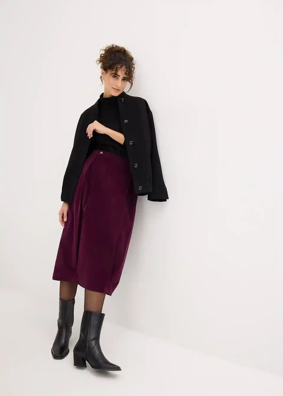 Moderna suknja od kord sa organskim pamukom s skrivenim patentnim zatvaračem