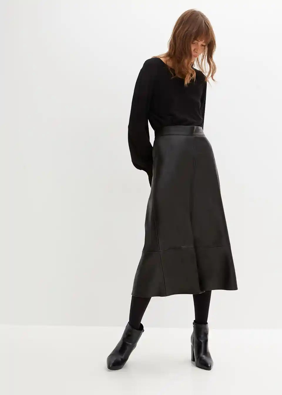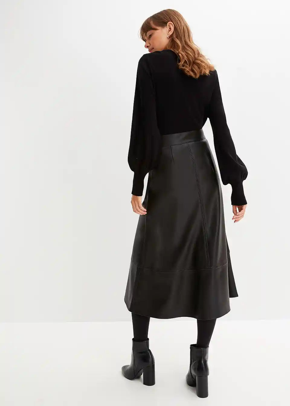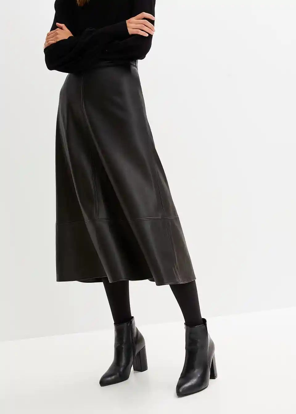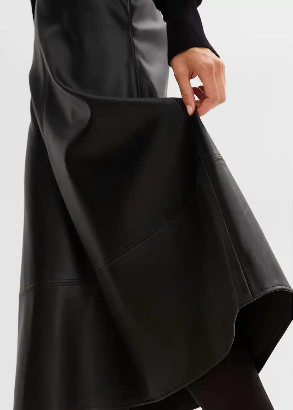 Moderna suknja od umjetne kože s prikrivenim zatvaračem.