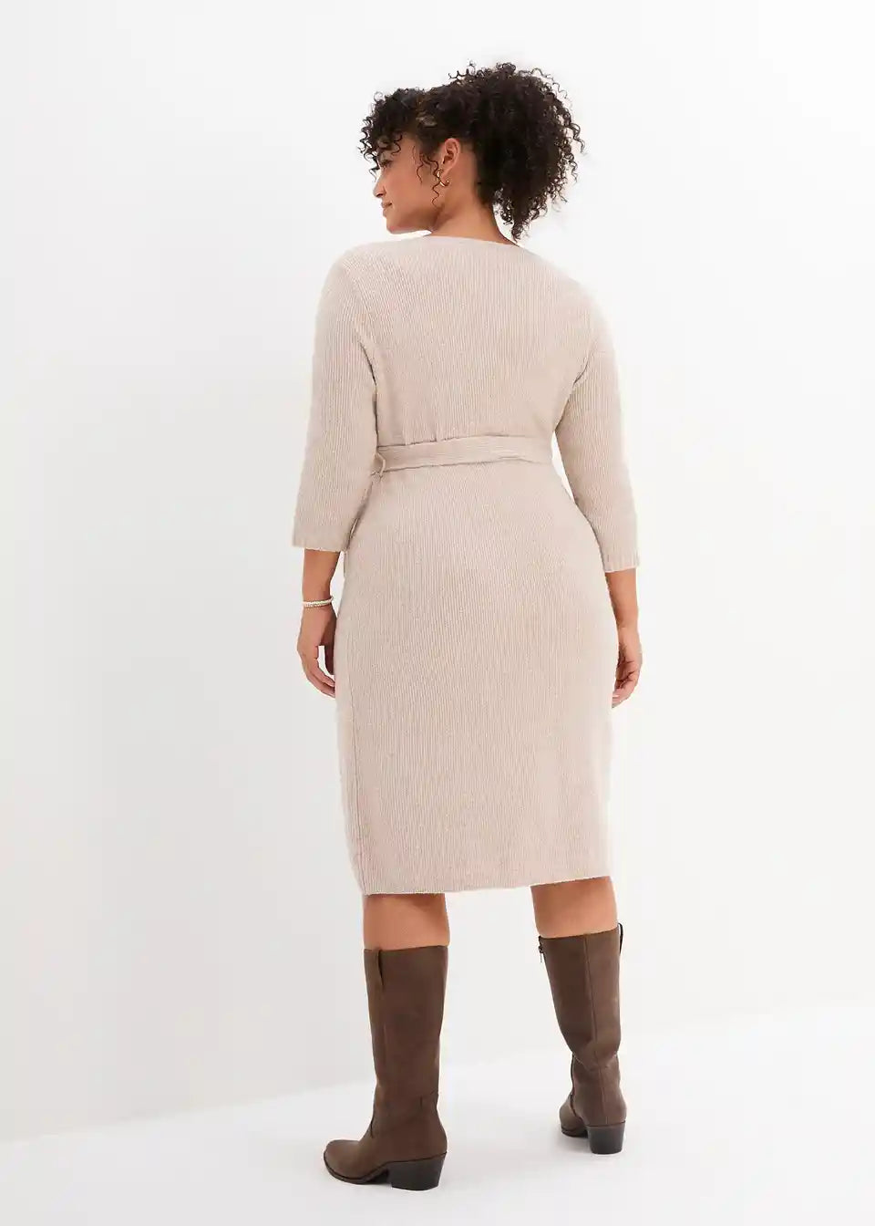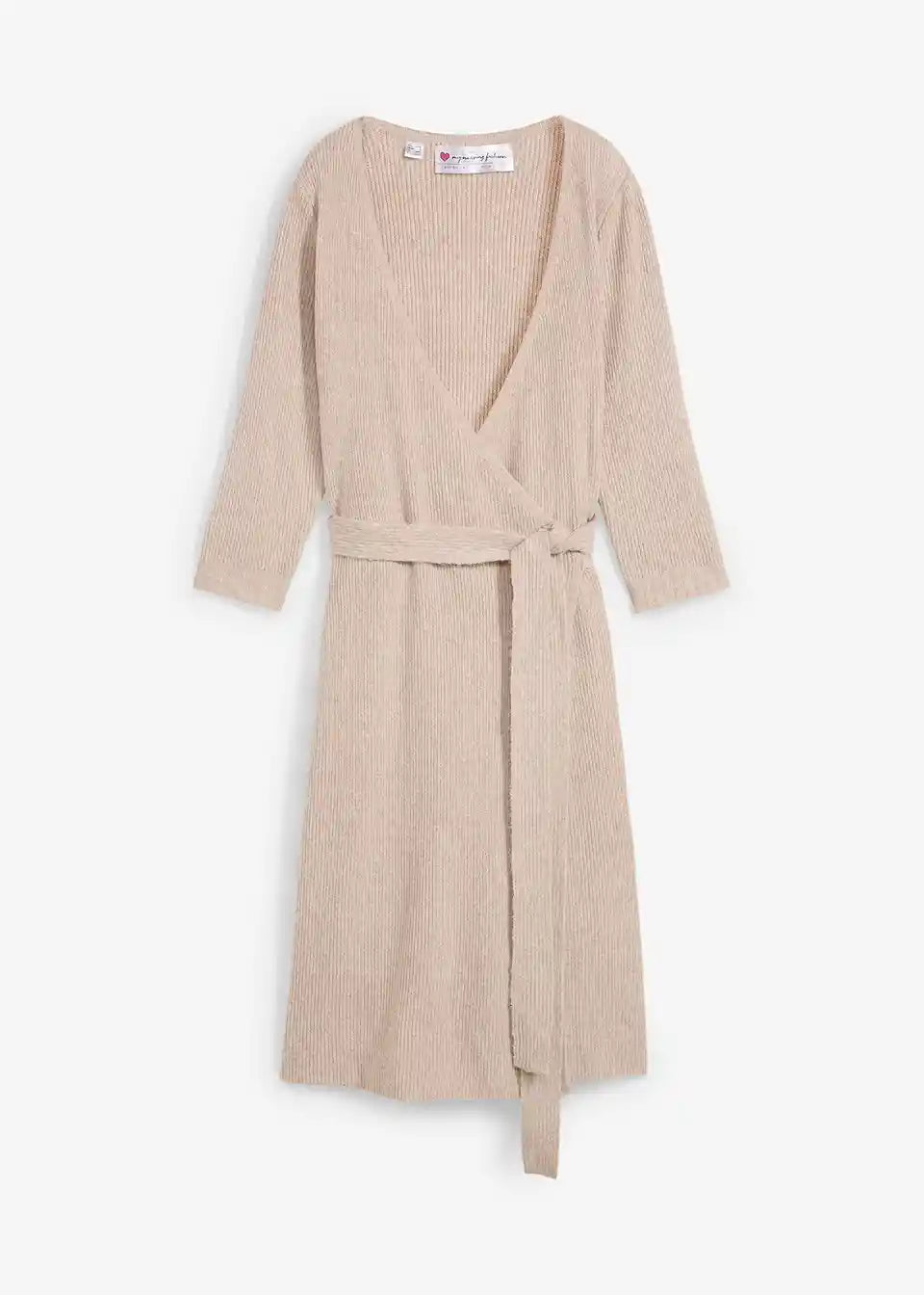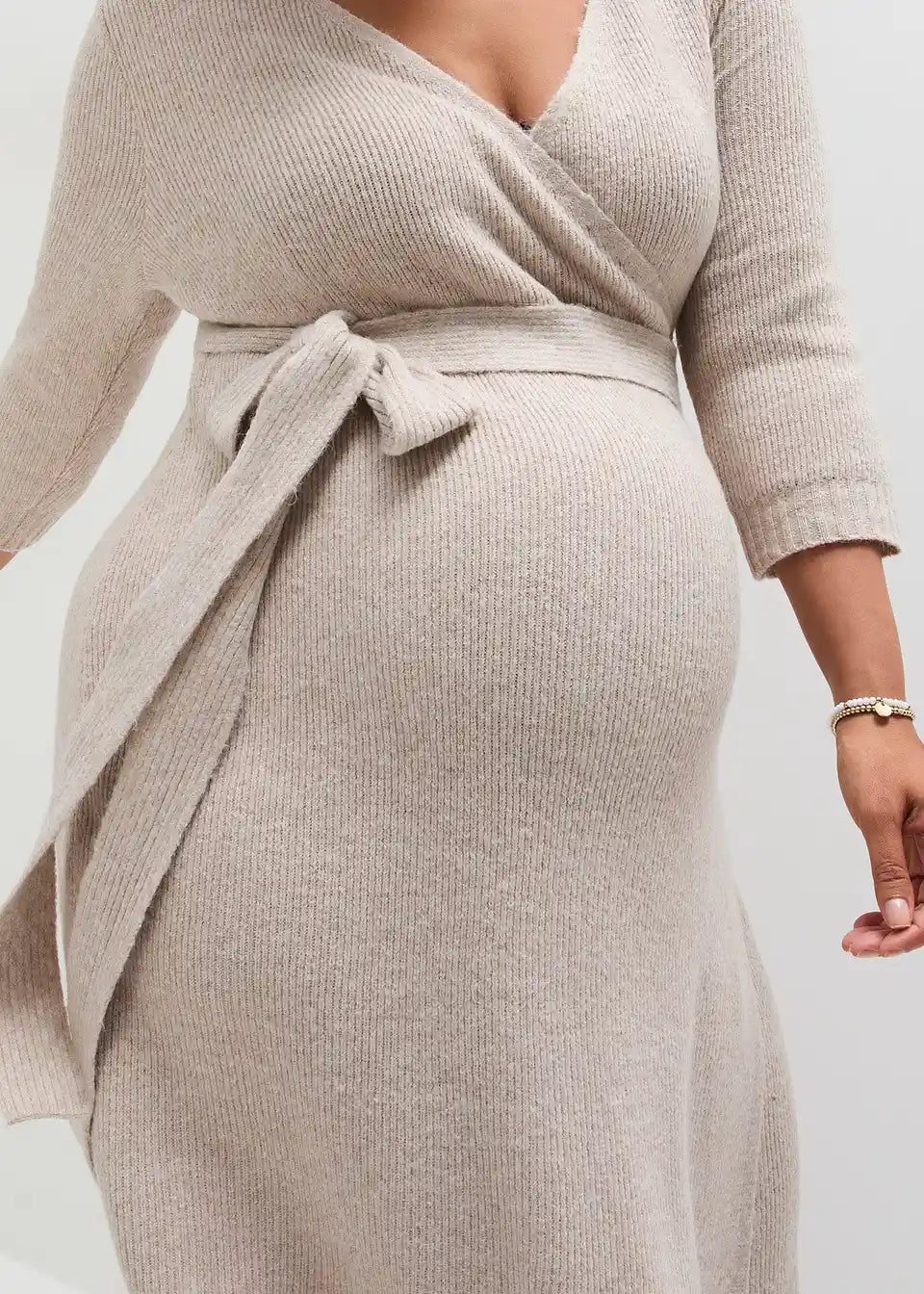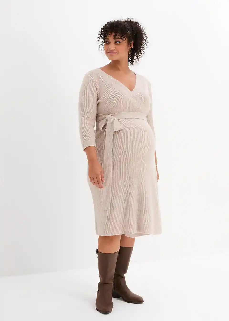 Haljina za dojenje od mekanog pletiva s V-izrezom i 3/4 rukavima. Zahvaljujući širokim trakama, haljina se može individualno prilagoditi figuri. Trake se mogu vezati i sprijeda i straga.