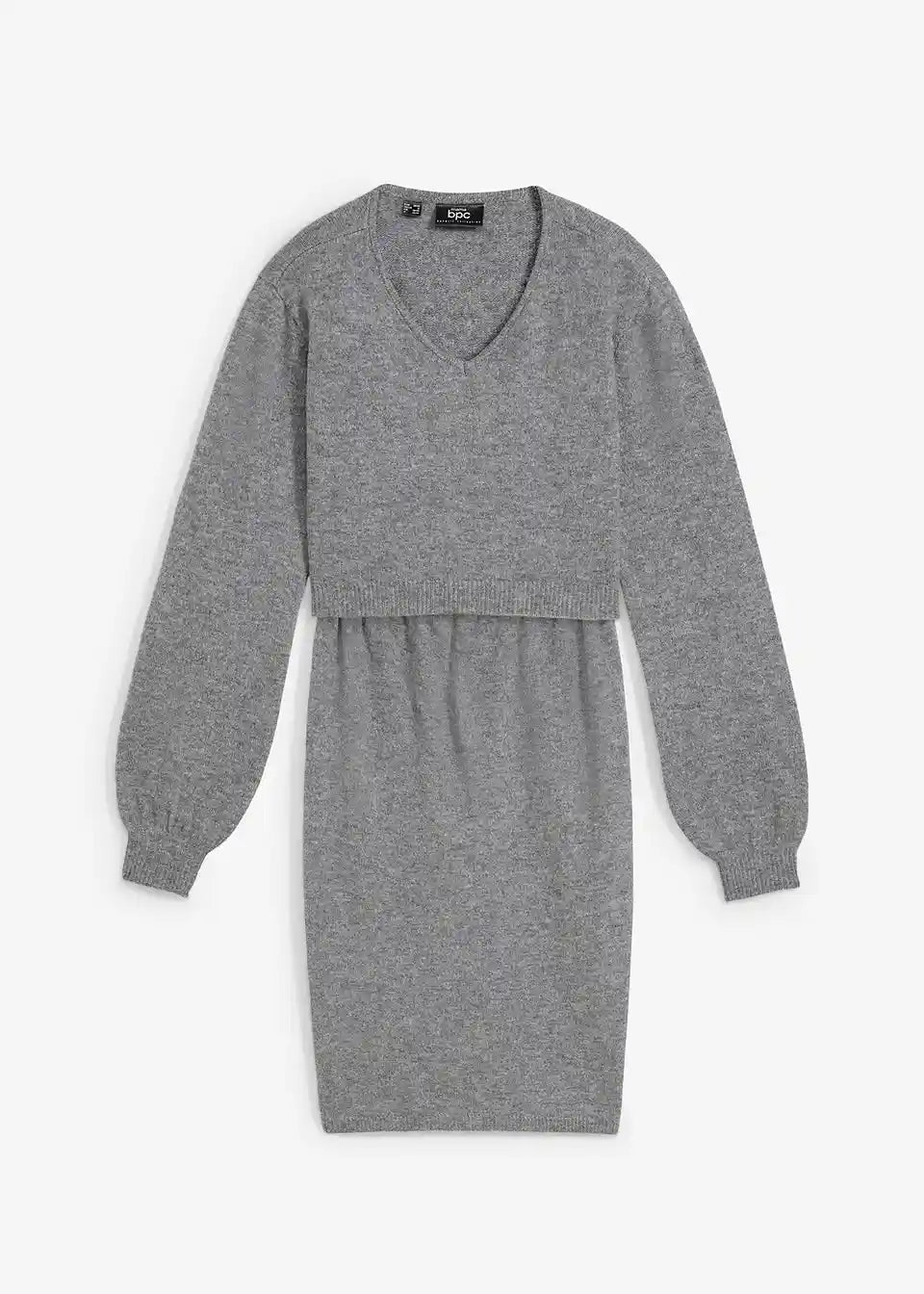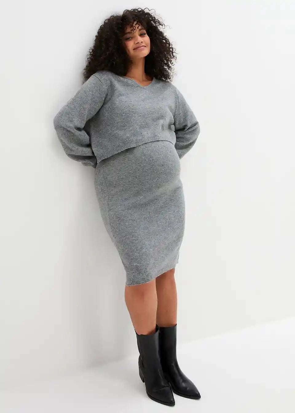 Udoban set od pletenog pulovera i pletene suknje za trudnoću