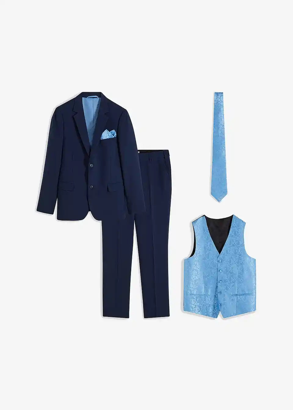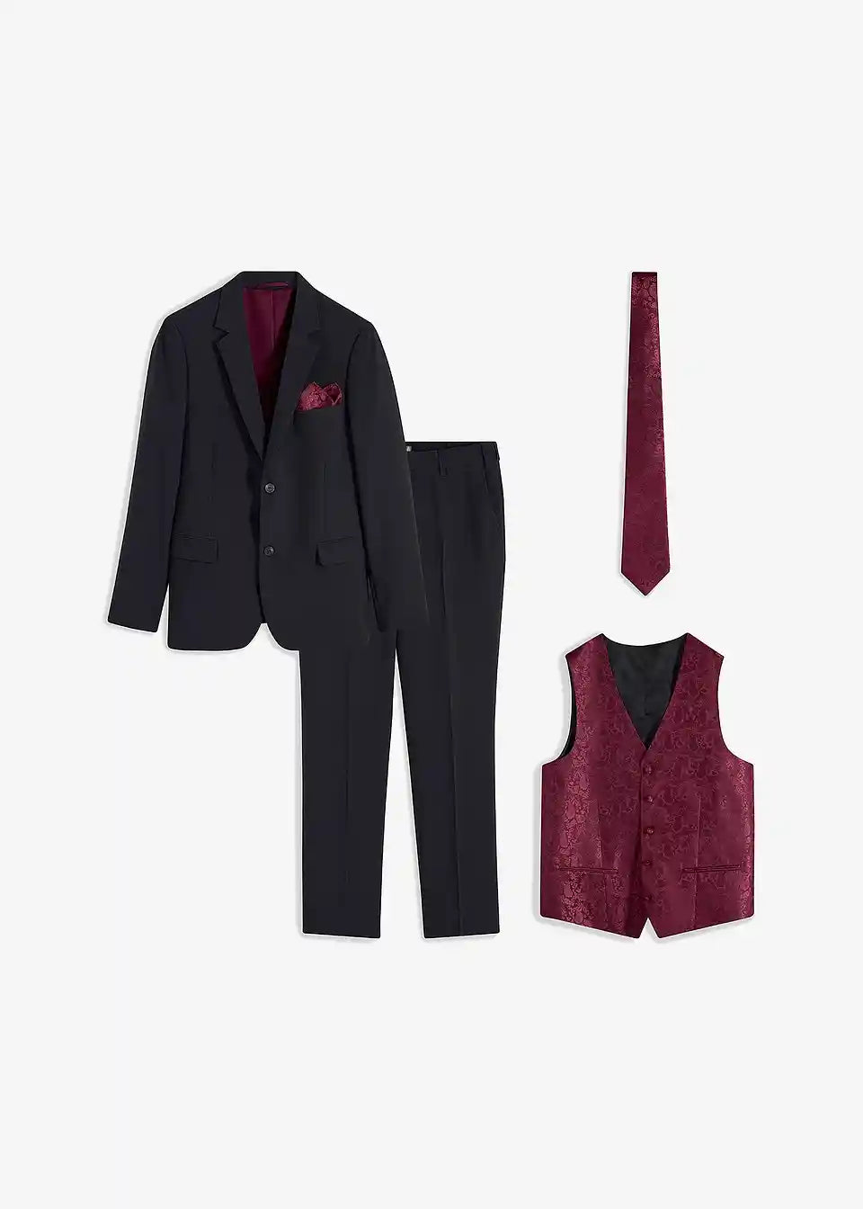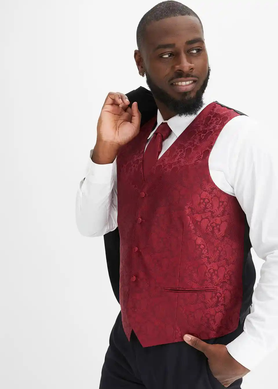 Moderan 5-dijelni svadbeni odijelo sastoji se od Sakoa, Hlača, Prsluka, Kravate i Džepne maramice u Slim Fit kroju