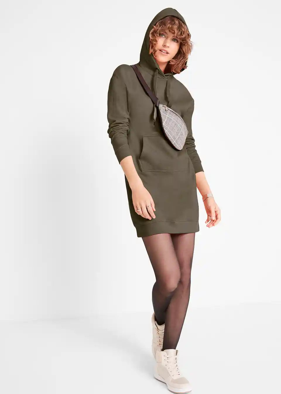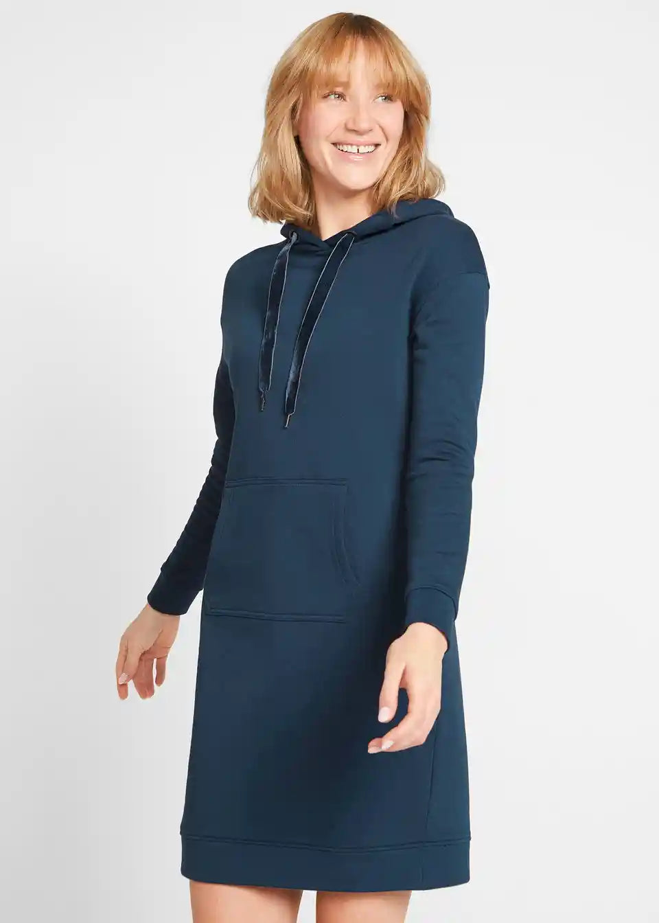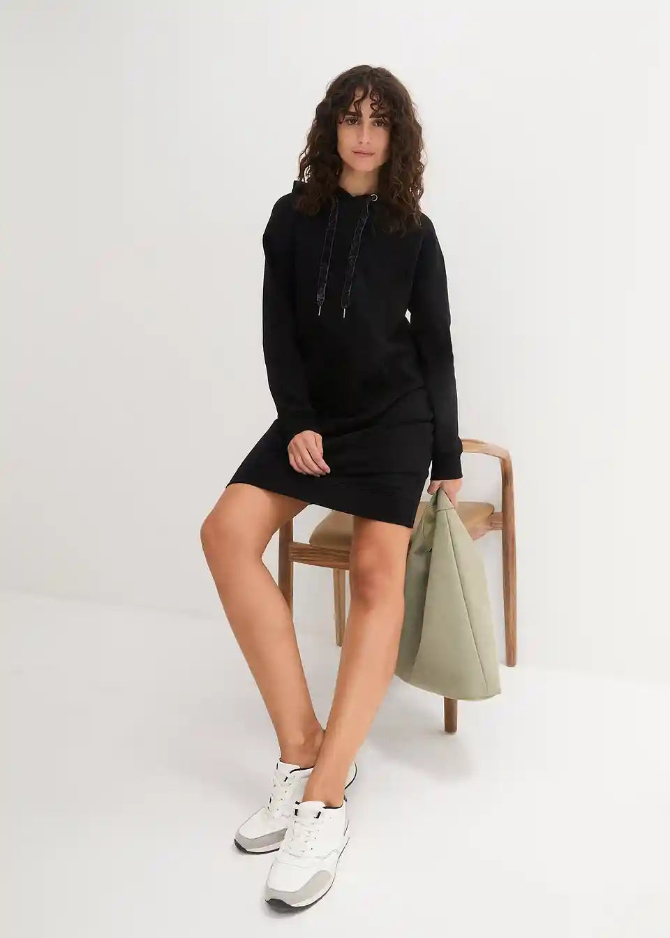 Ležerna Sweat haljina s kapuljačom i baršunastim trakama