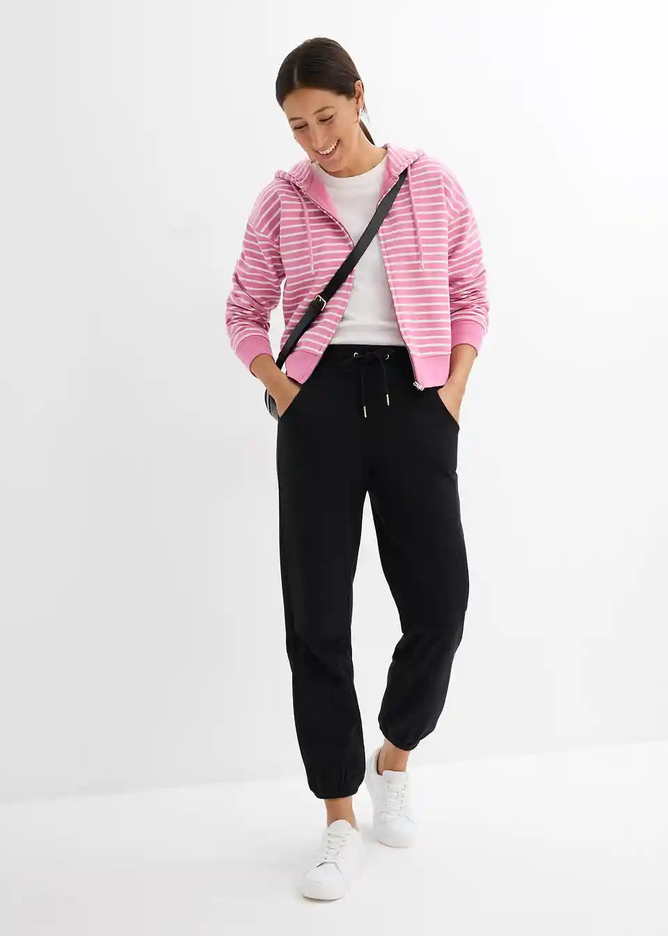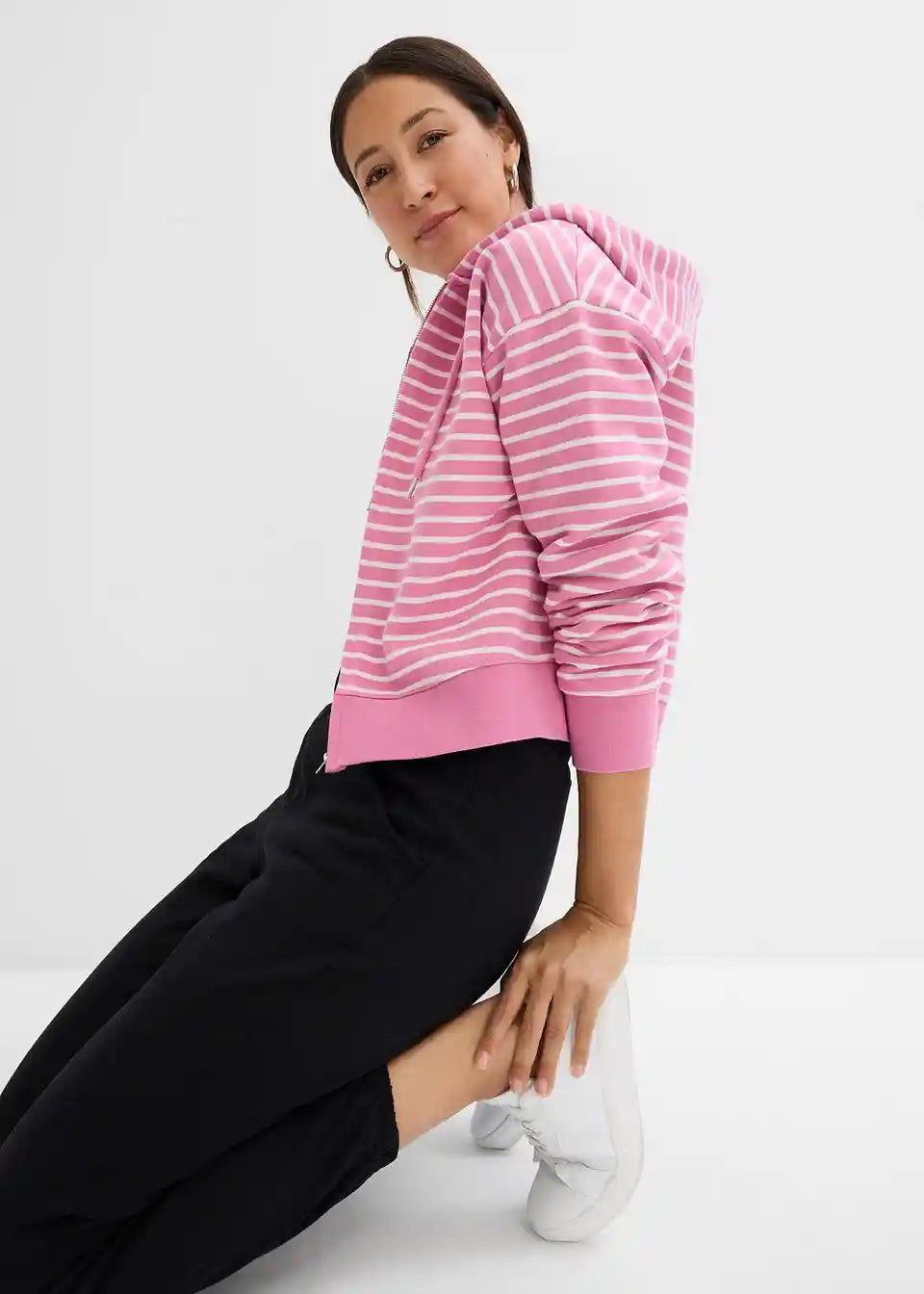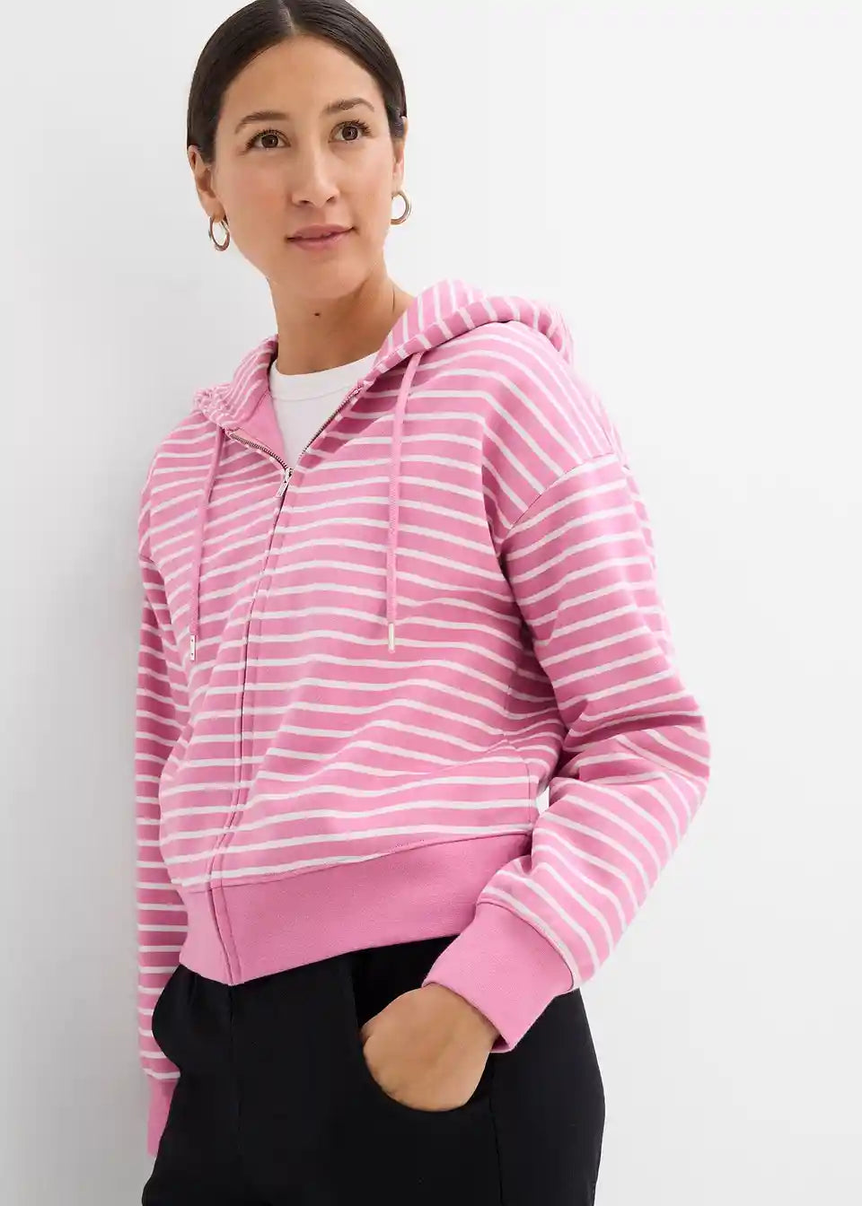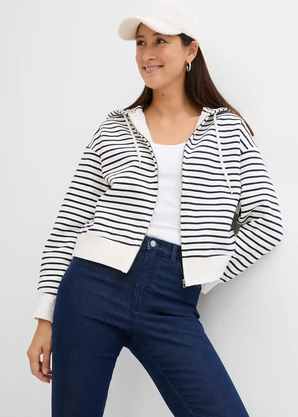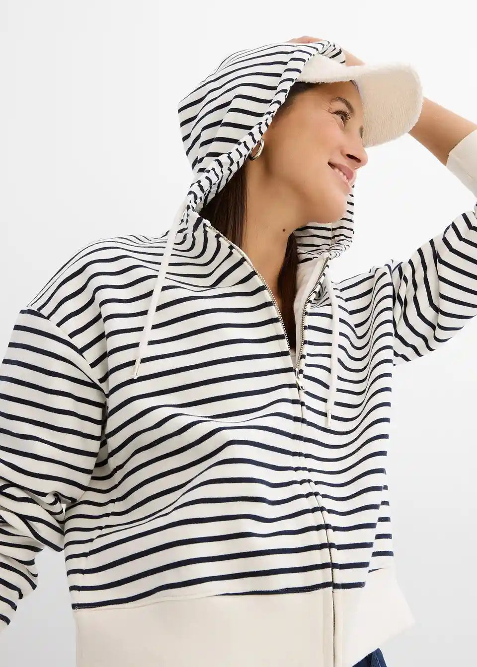 Široko krojena, kratka sweat jakna s modernim prugastim uzorkom