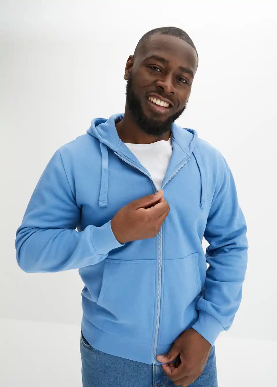 Udobna muška majica s kapuljačom. Patentni zatvarač i kengur džepovi sprijeda omogućuju jednostavno oblačenje. Unutrašnjost je mekano brušena, čime pruža visok stupanj udobnosti. Duljina prilagođena veličini, duljina u veličini 48/50 cca. 73 cm. Regular Fit