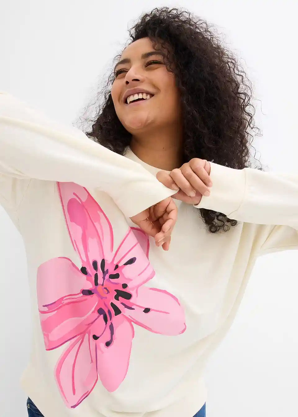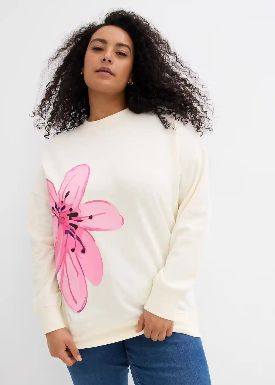 Majica s dugim rukavima s cvjetnim printom i ležernim krojem