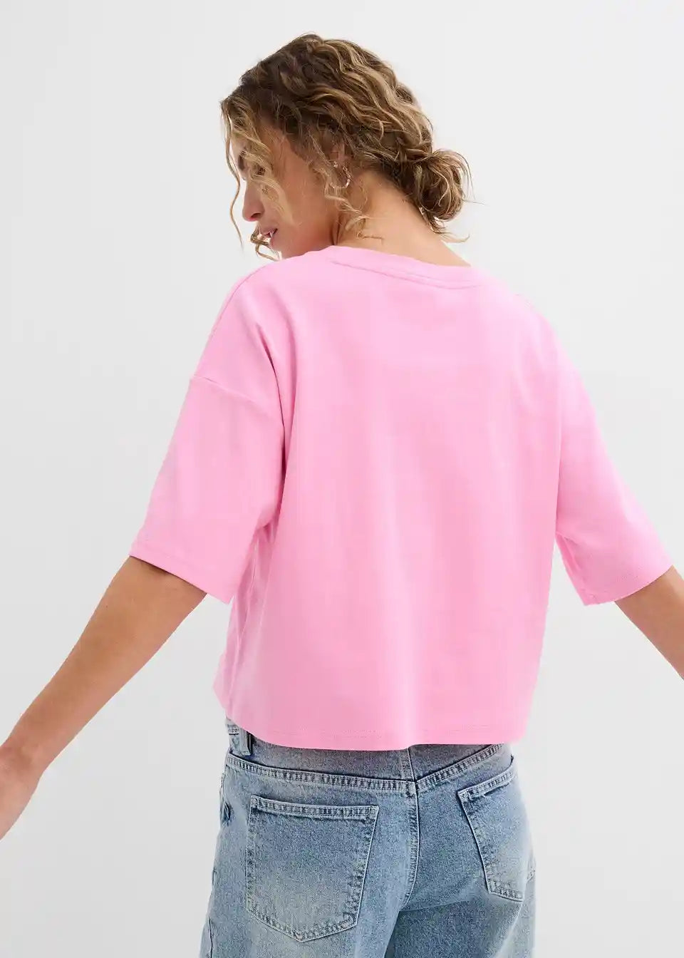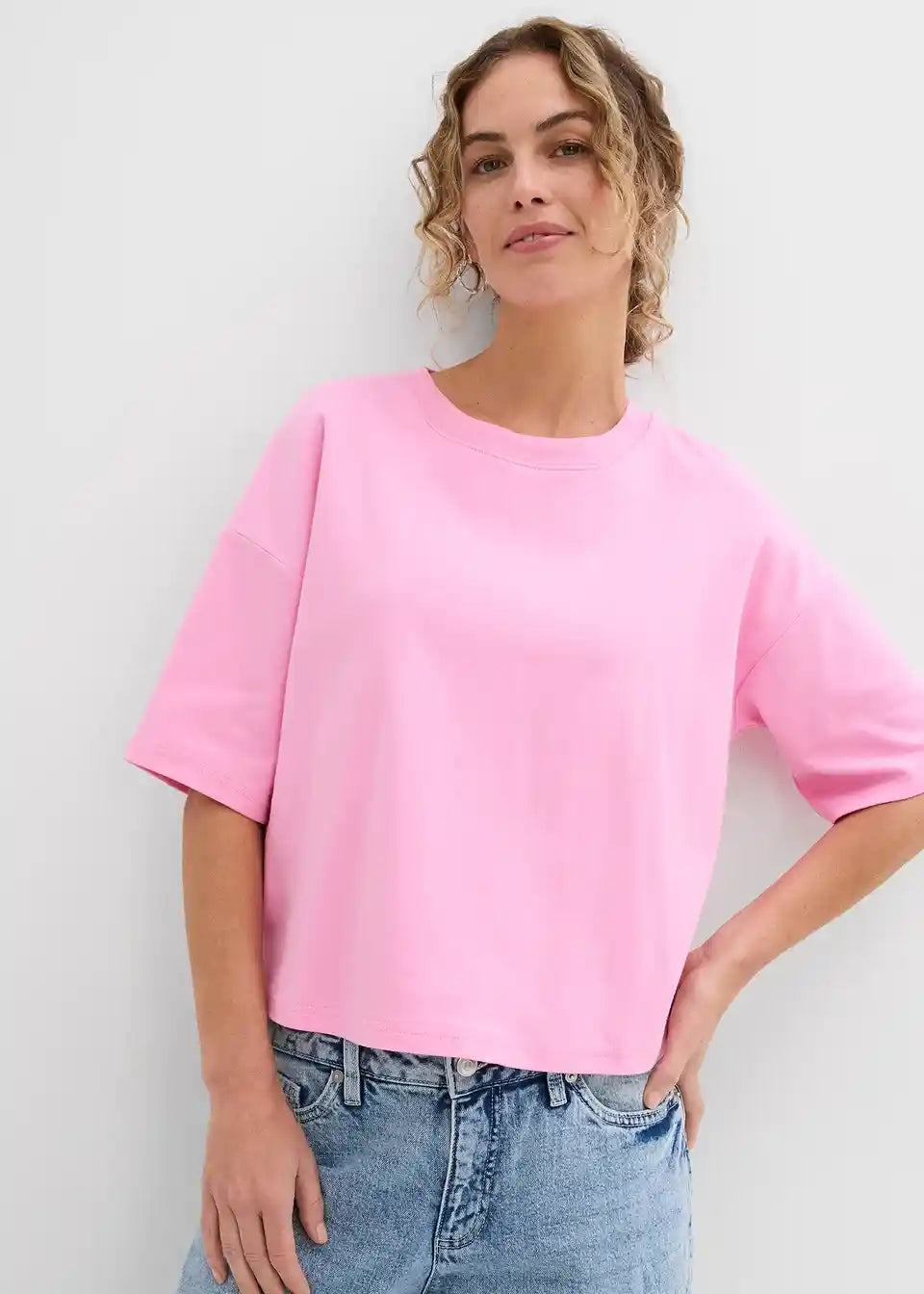 Ležerno krojeni T-Shirt s okruglim izrezom i tročetvrt rukavima od organskog pamuka