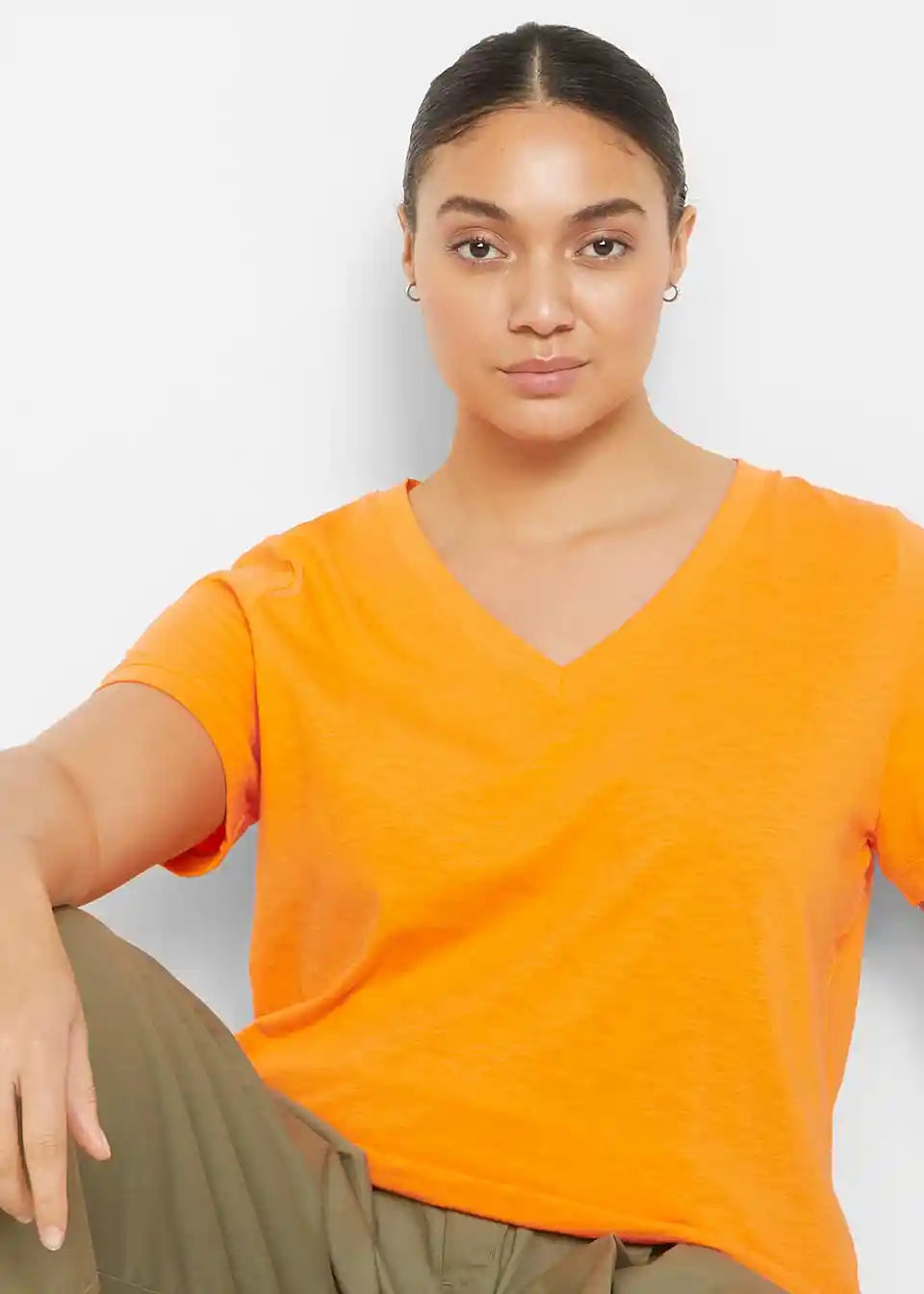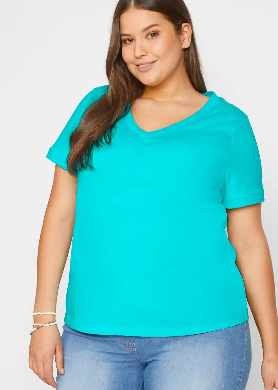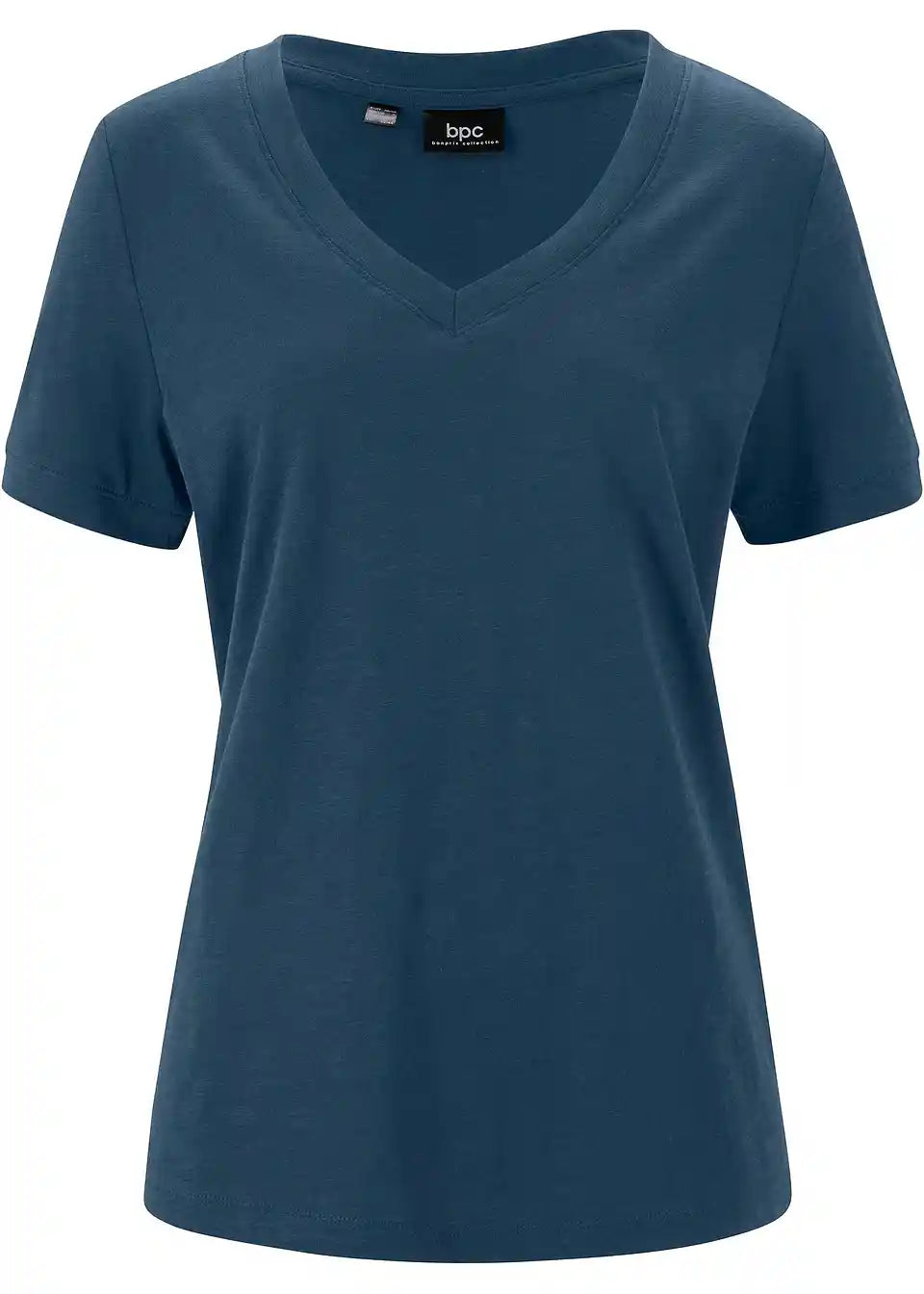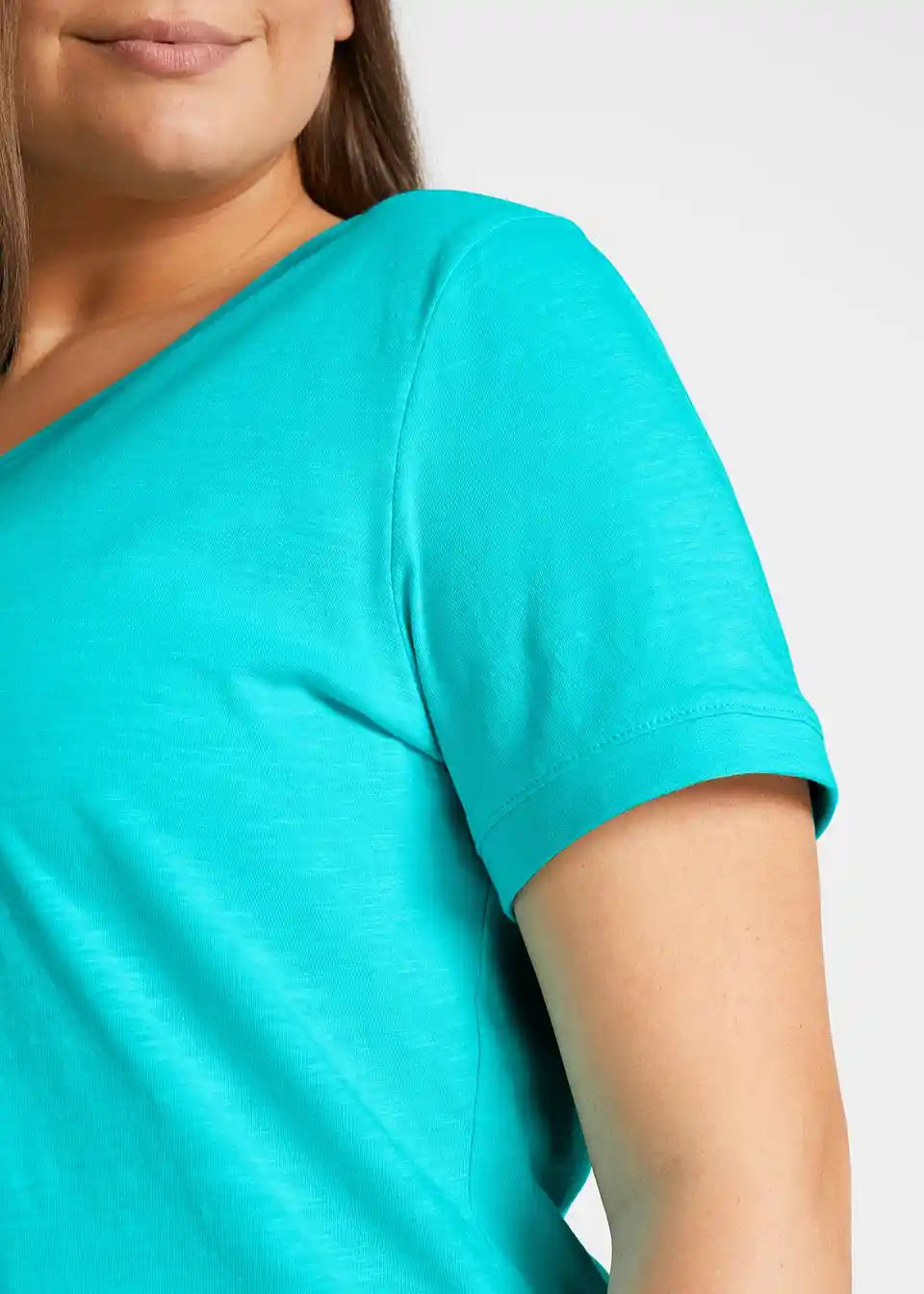 Osnovna pamučna majica s V-izrezom, kratki rukav