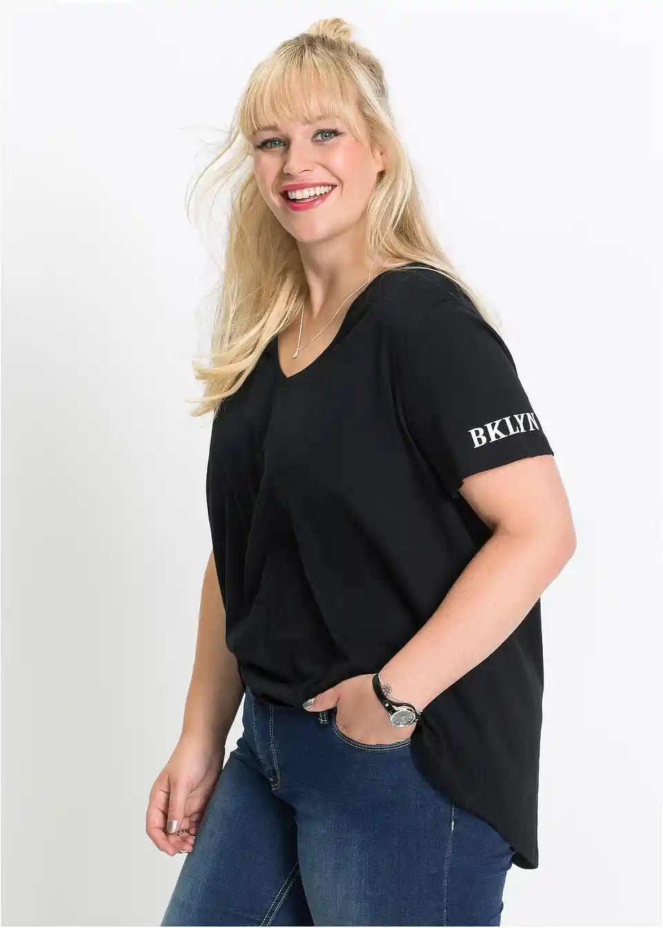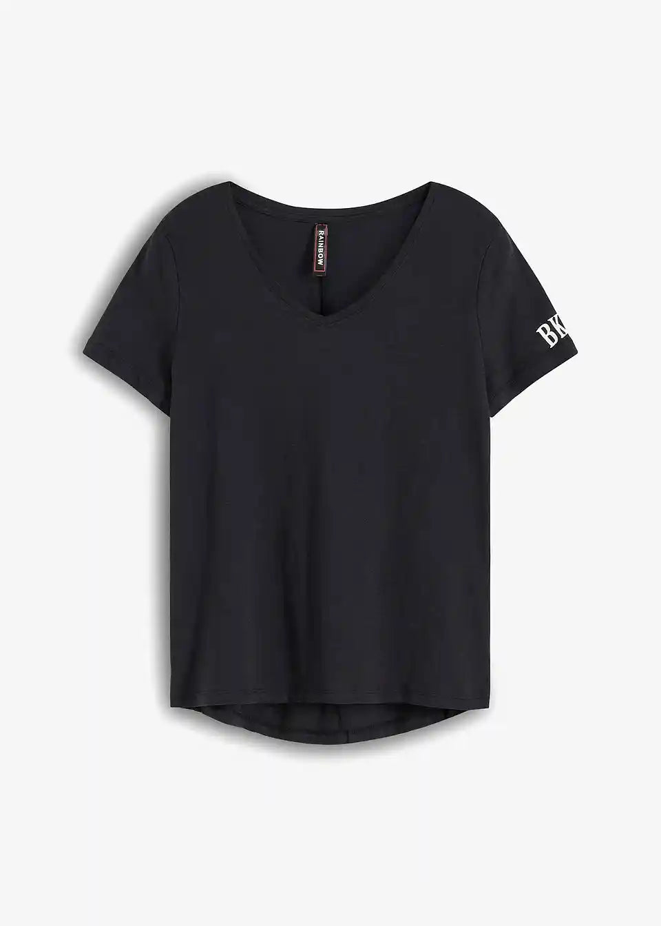 Cool printovi na stražnjoj sredini, uzduž bočnog šava i na desnom rukavu daju ovom T-Shirtu moderan stil. Zaobljeni rub i duža stražnja strana naglašavaju trendi dizajn. Široki kroj čini majicu posebno ležernom. Pravi privlačitelj pogleda je duboki V-izrez sprijeda.