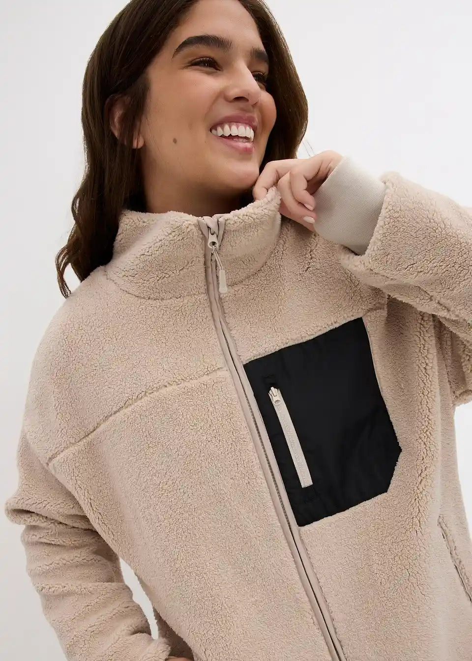 Udobna Teddy-Fleece jakna s džepom na patent zatvarač na prednjoj strani