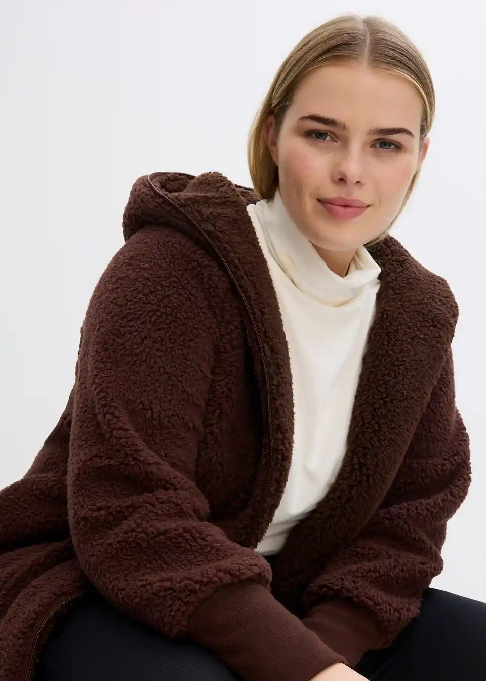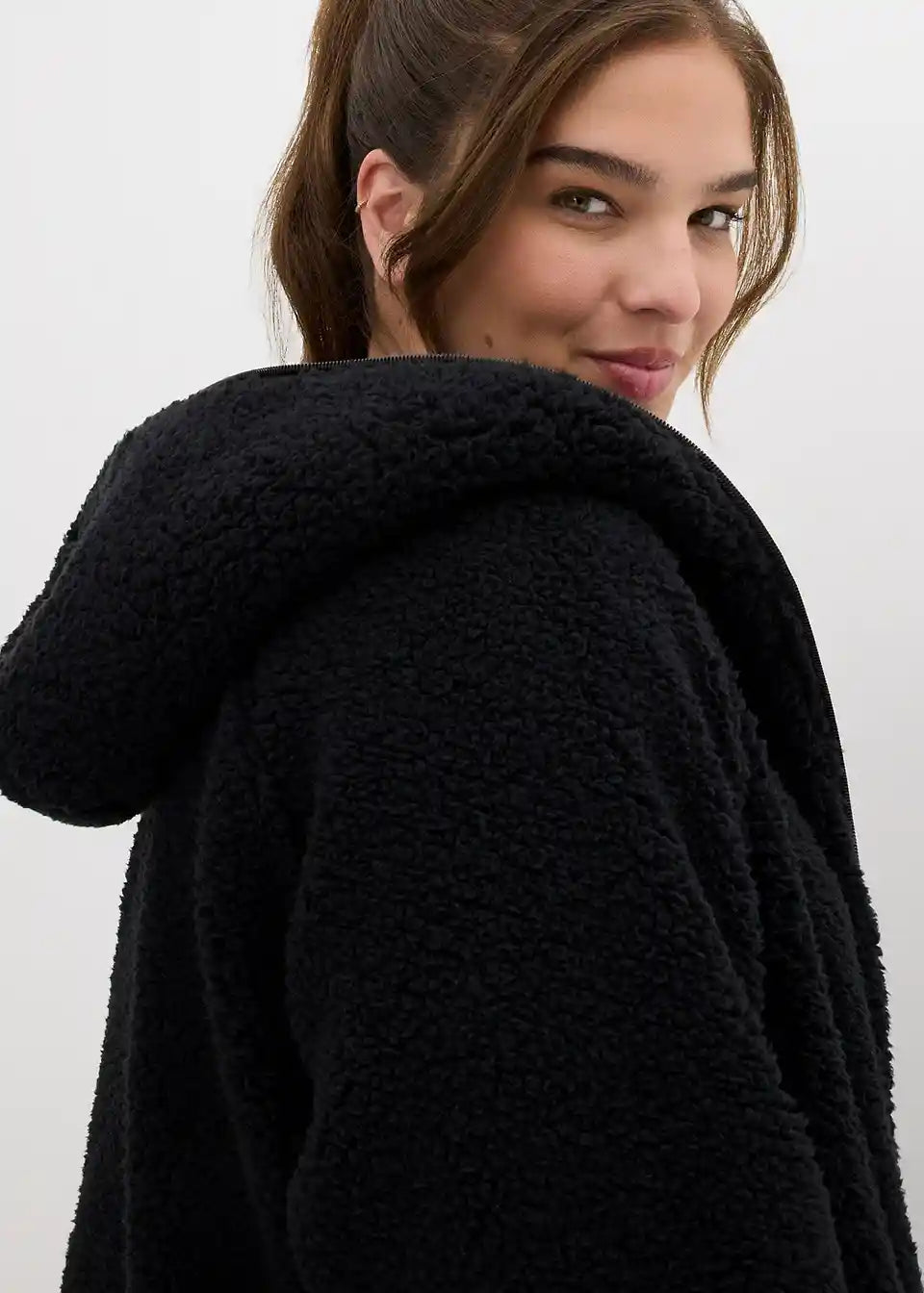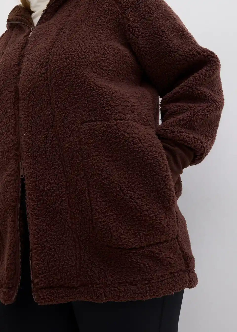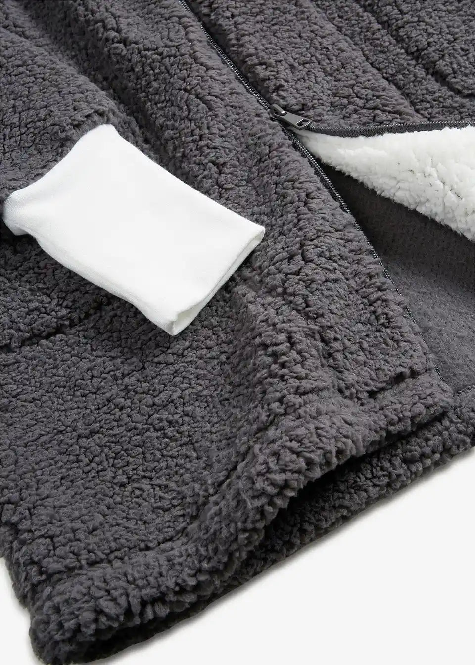 Oversized Teddy-Fleece kaput s džepovima i dvosmjernim patentnim zatvaračem koji se može zatvoriti zajedno s kapuljačom