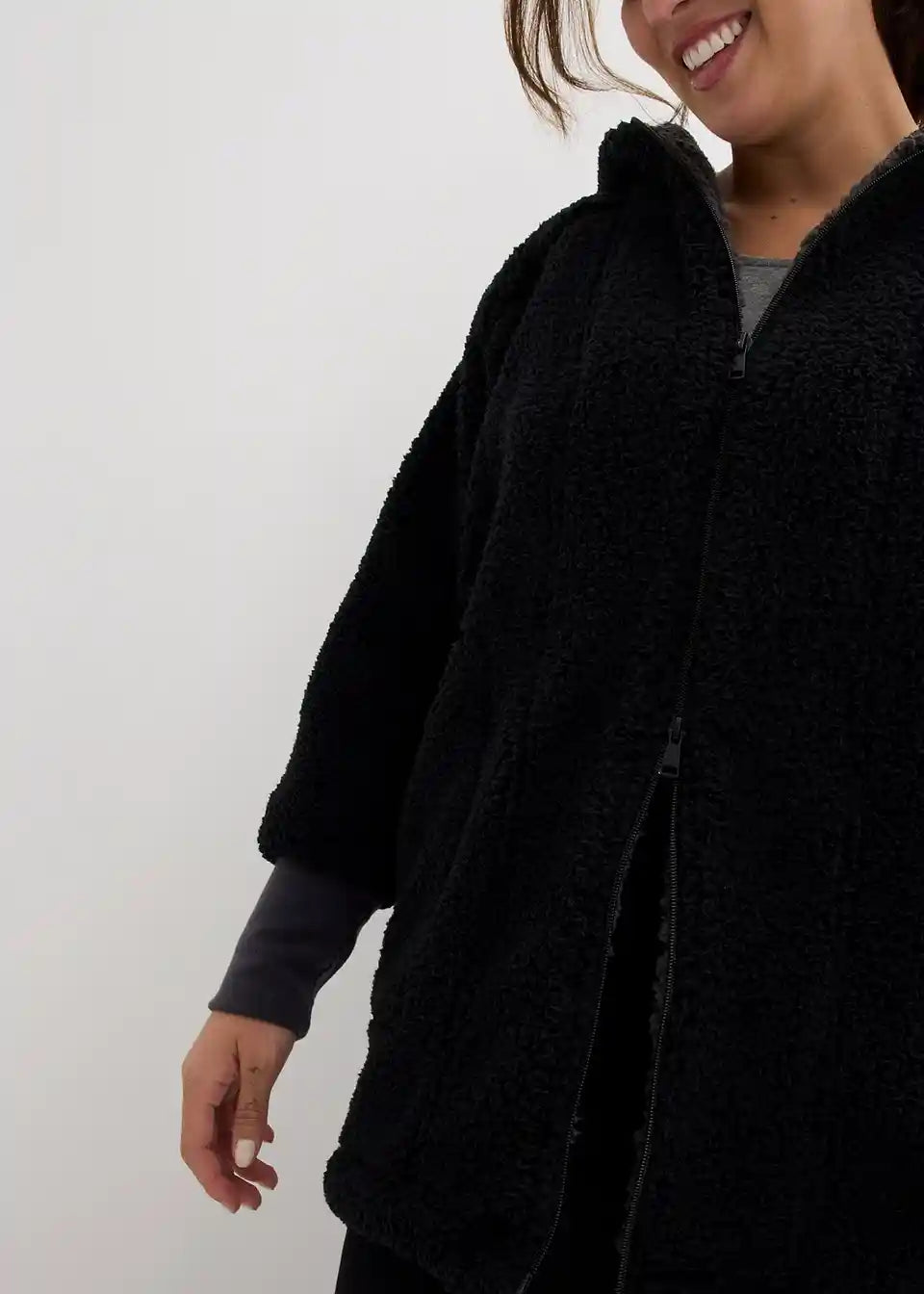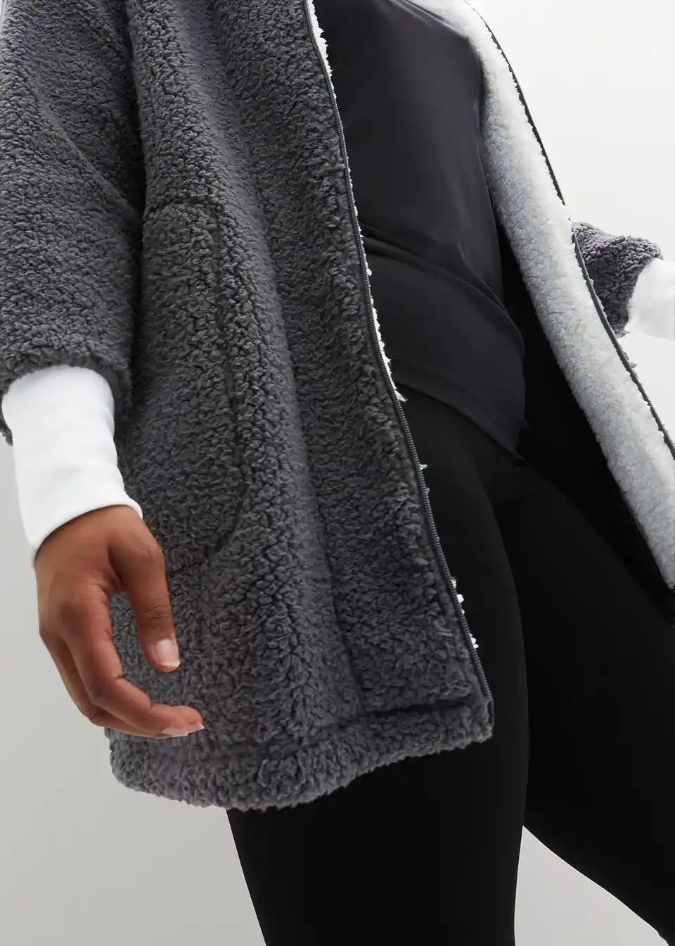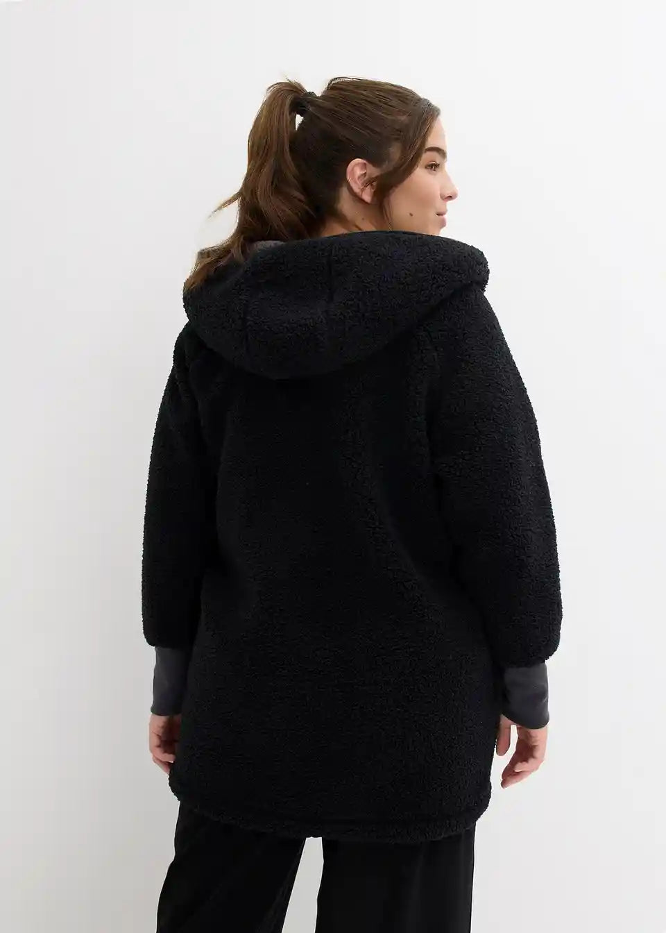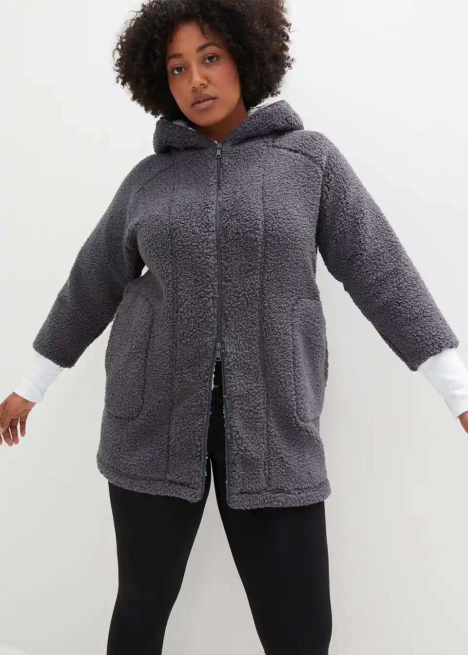 Oversized Teddy-Fleece kaput s džepovima i dvosmjernim patentnim zatvaračem koji se može zatvoriti zajedno s kapuljačom